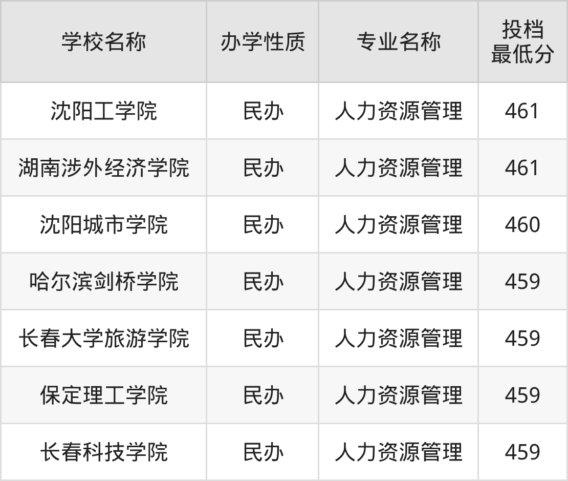 一般来说,人力资源管理都需要460分以上才能被录取,当然分数线因省份、科类而不同。从河北省2025年的招录数据来看,2025年人力资源管理专业最低分是459分,而河北省本科线刚好是459分,意味着考生需要达到本科线才能上。