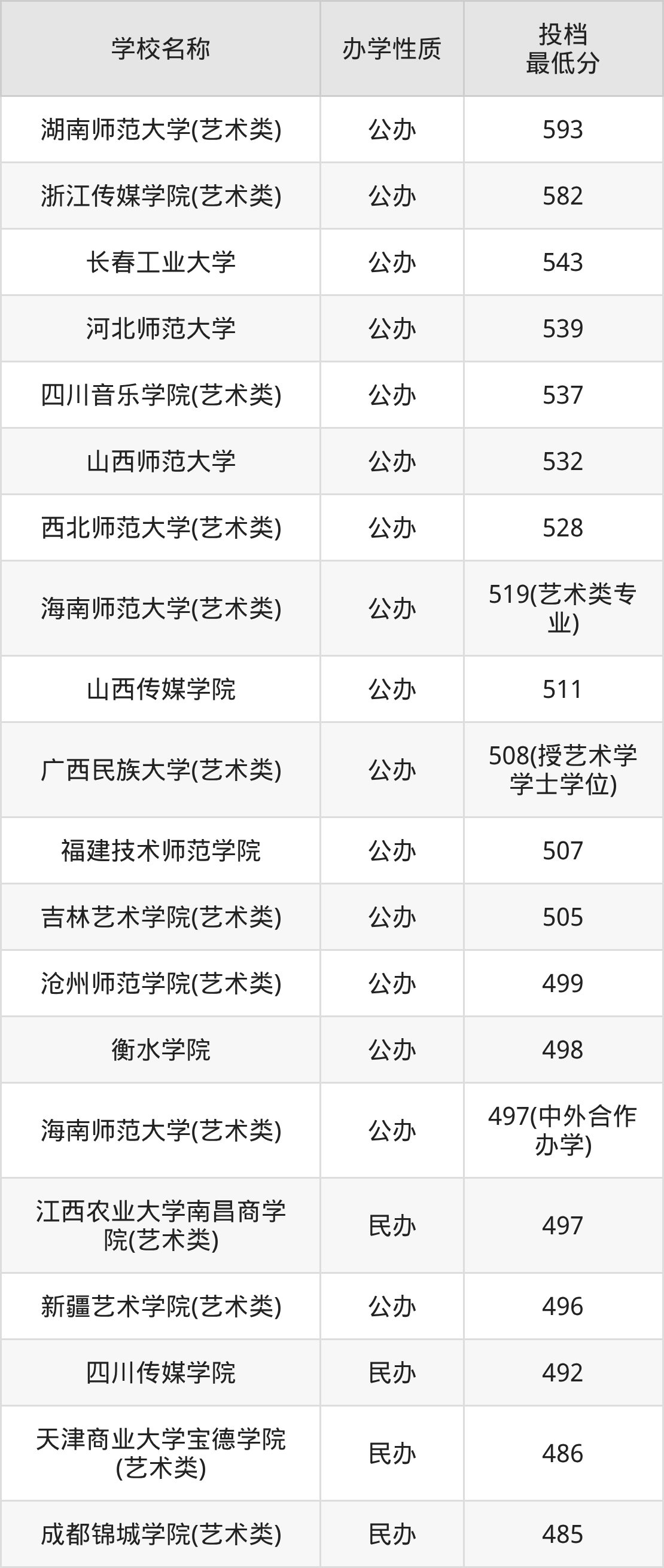 下面是2025年全国所有大学广播电视编导专业录取分数线一览表(按照分数线从高到低排名):