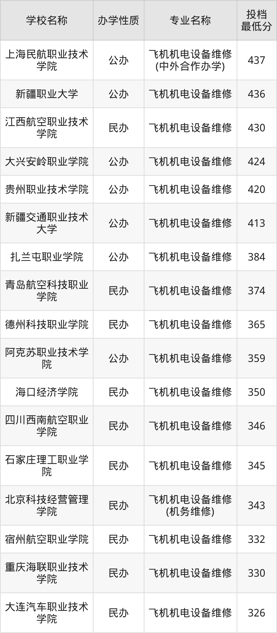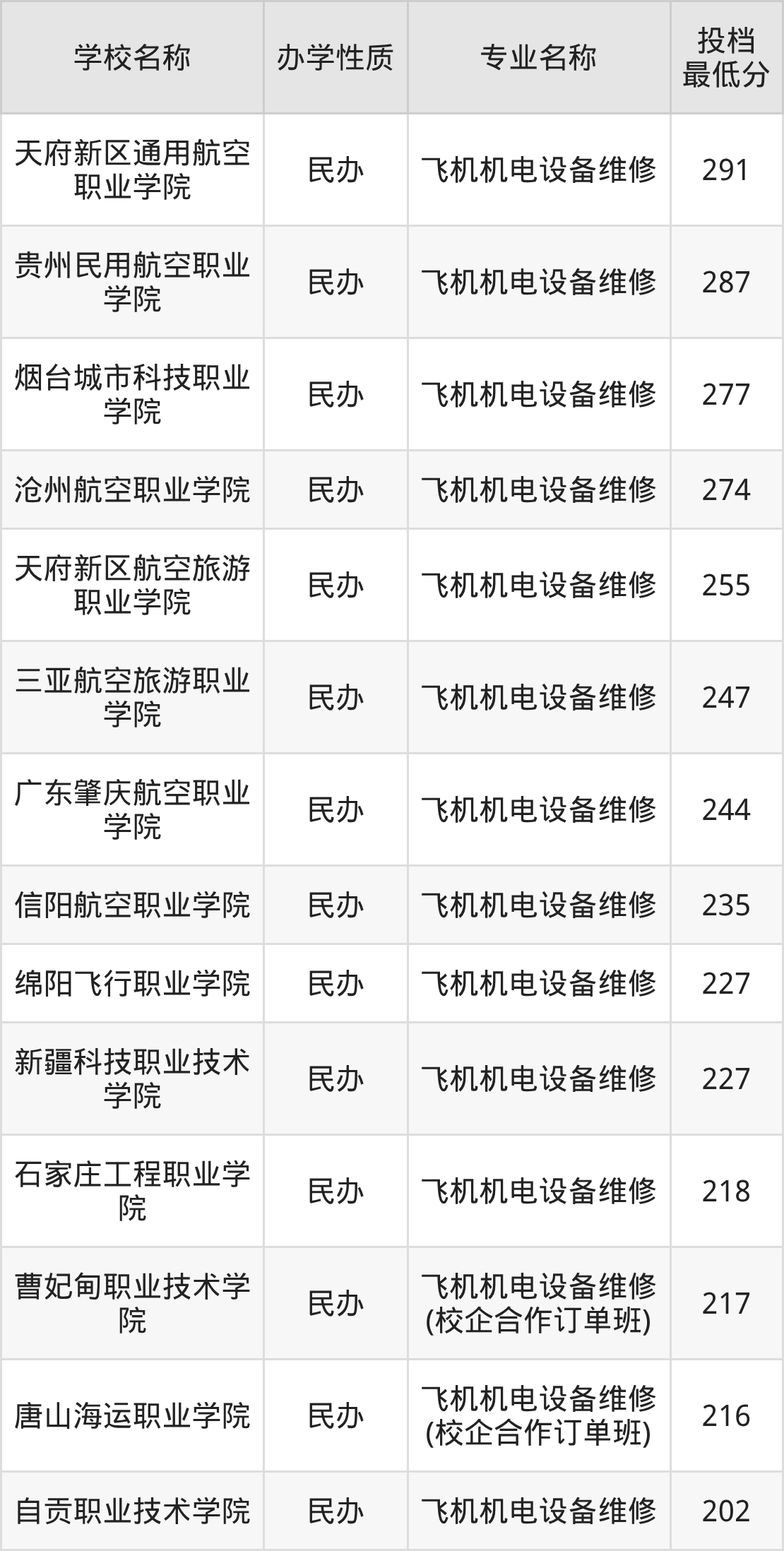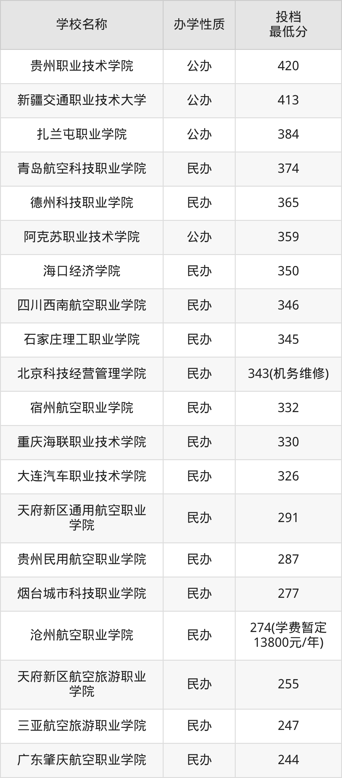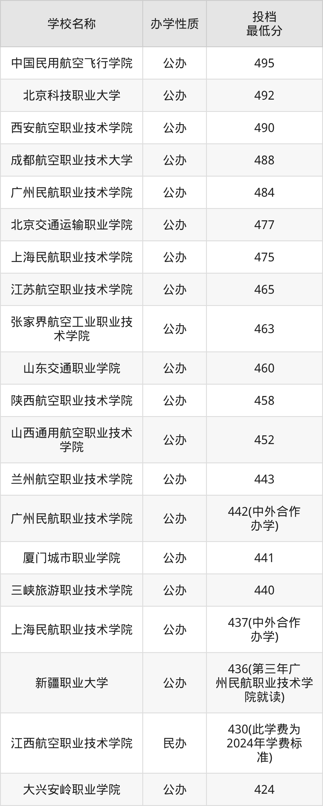 下面是2025年全国所有大学飞机机电设备维修专业录取分数线一览表(按照分数线从高到低排名):