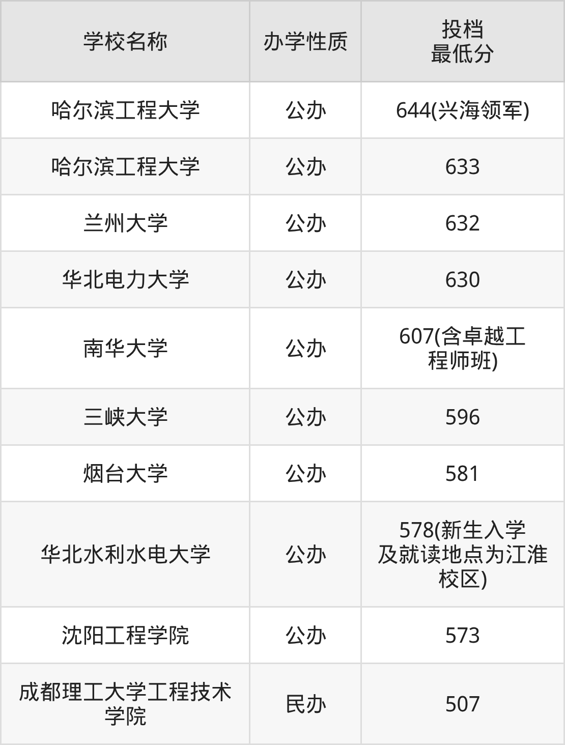 600分左右的核工程与核技术大学:南华大学607分(含卓越工程师班);