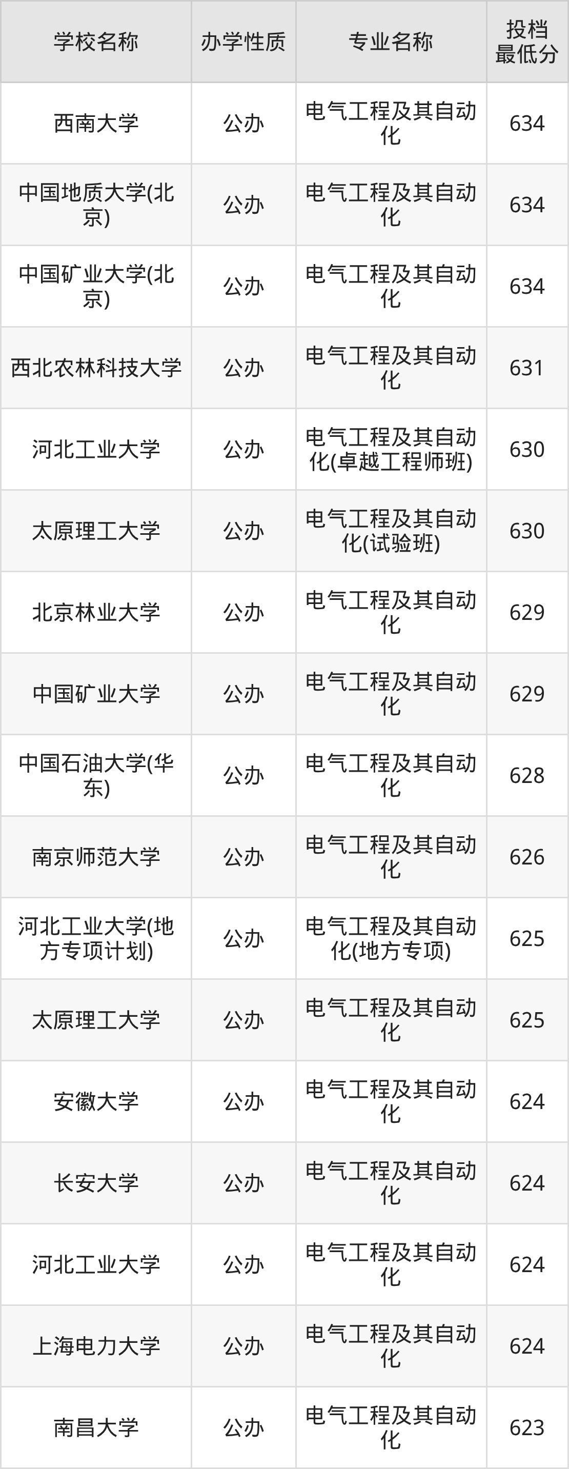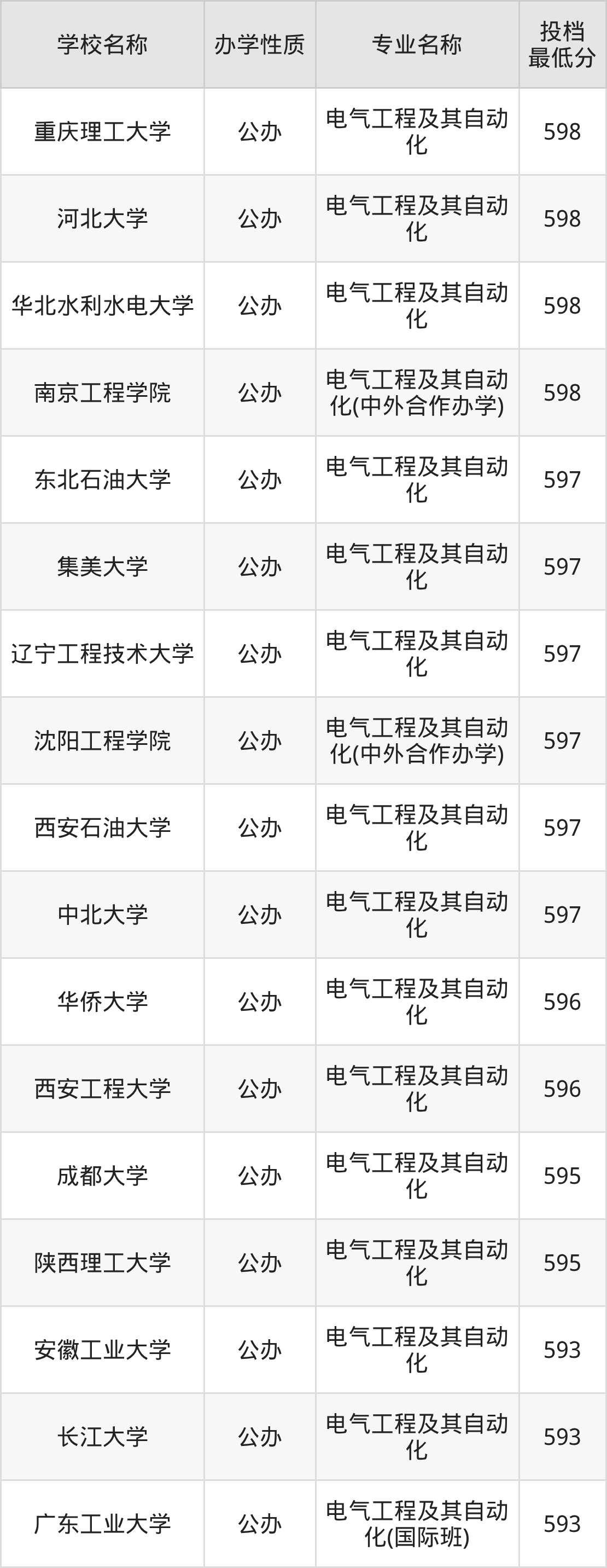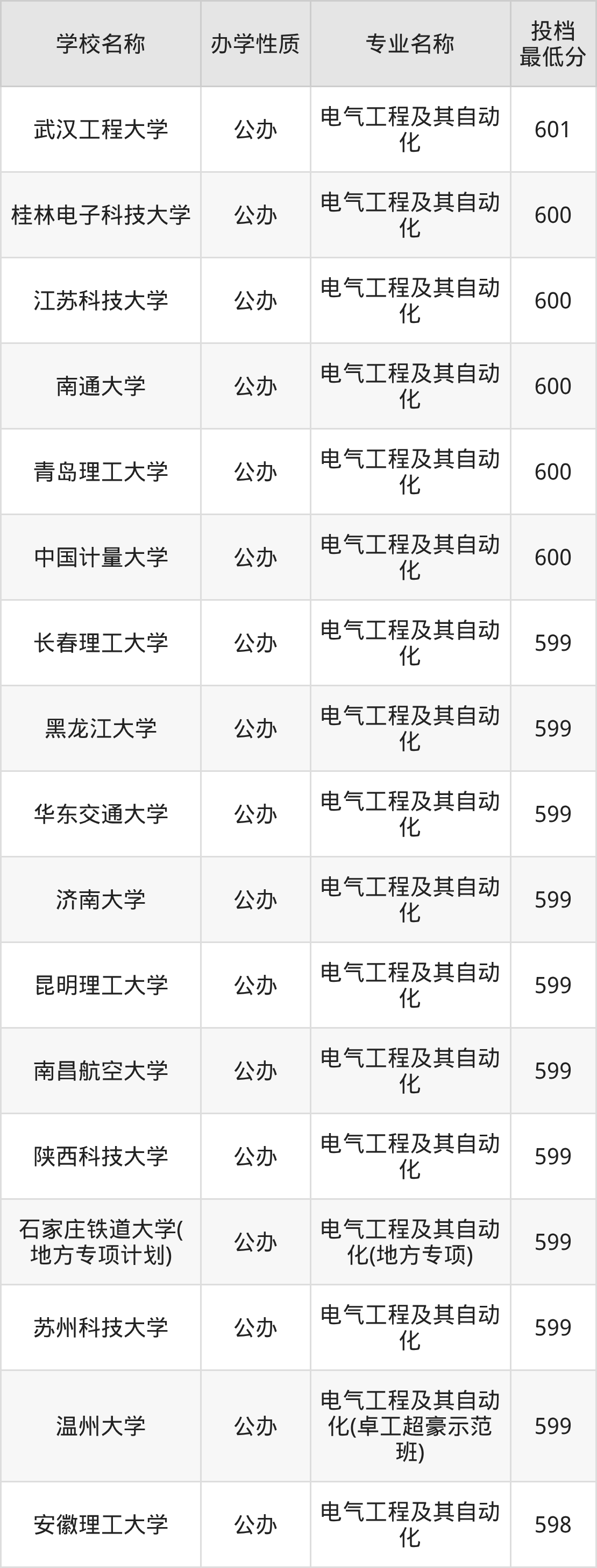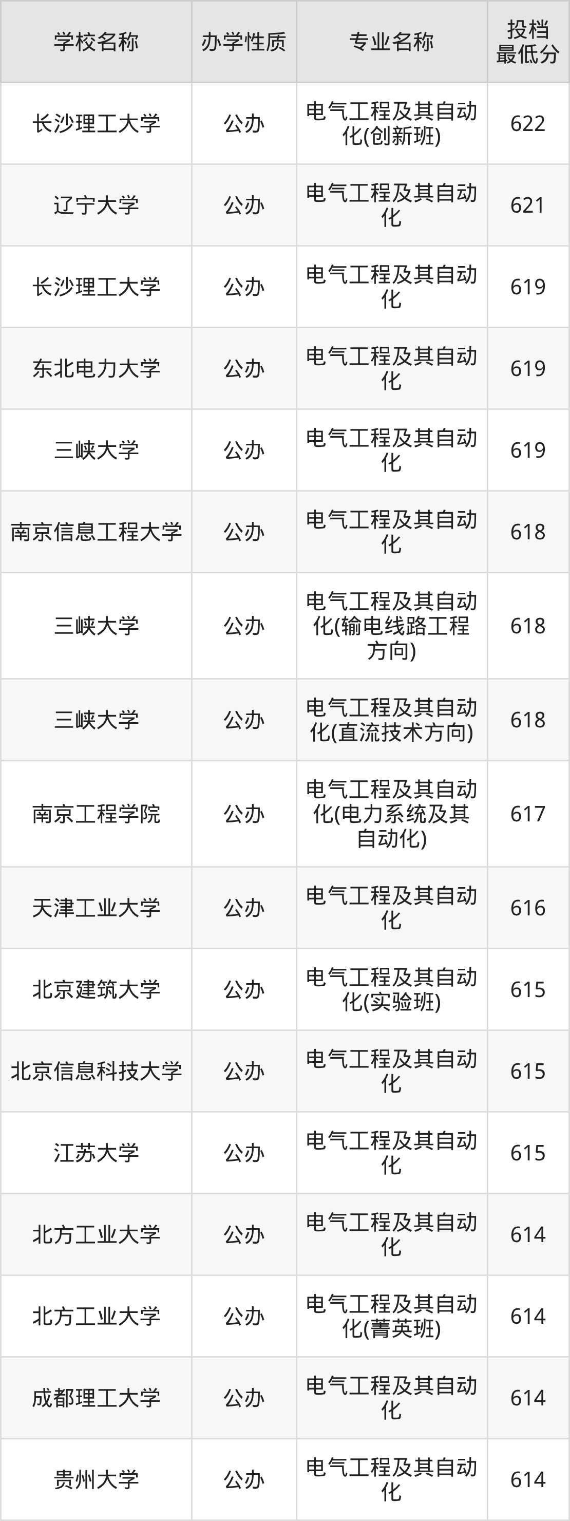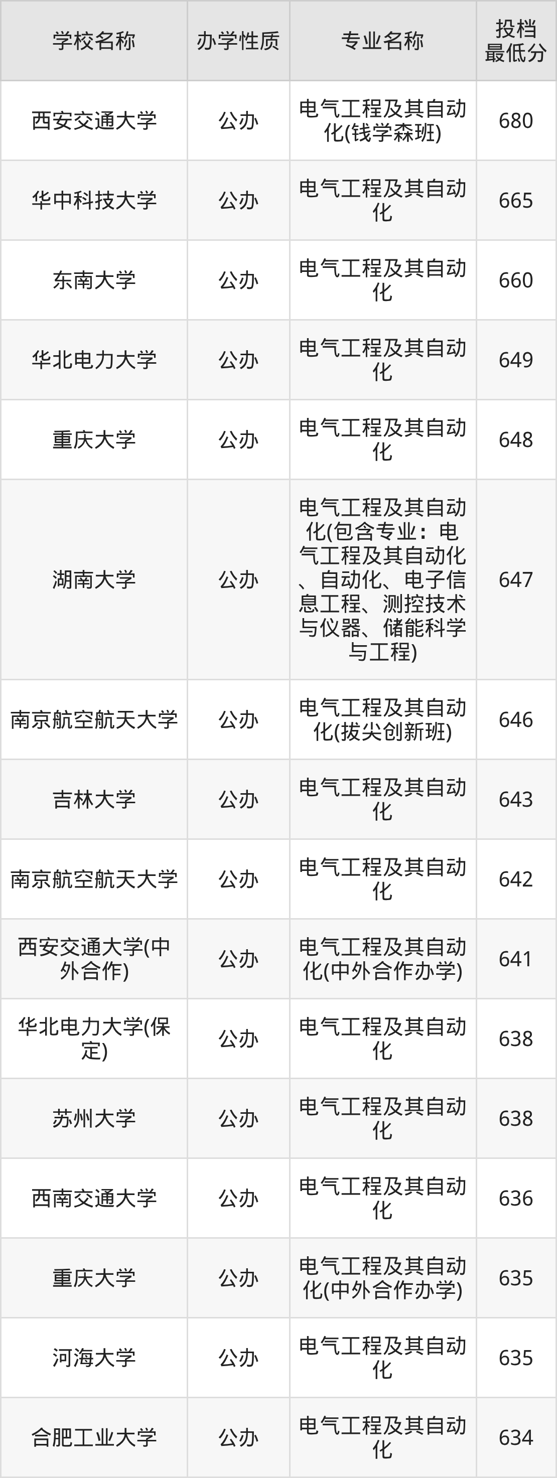下面是2025年全国所有大学电气工程及其自动化专业录取分数线一览表(按照分数线从高到低排名):