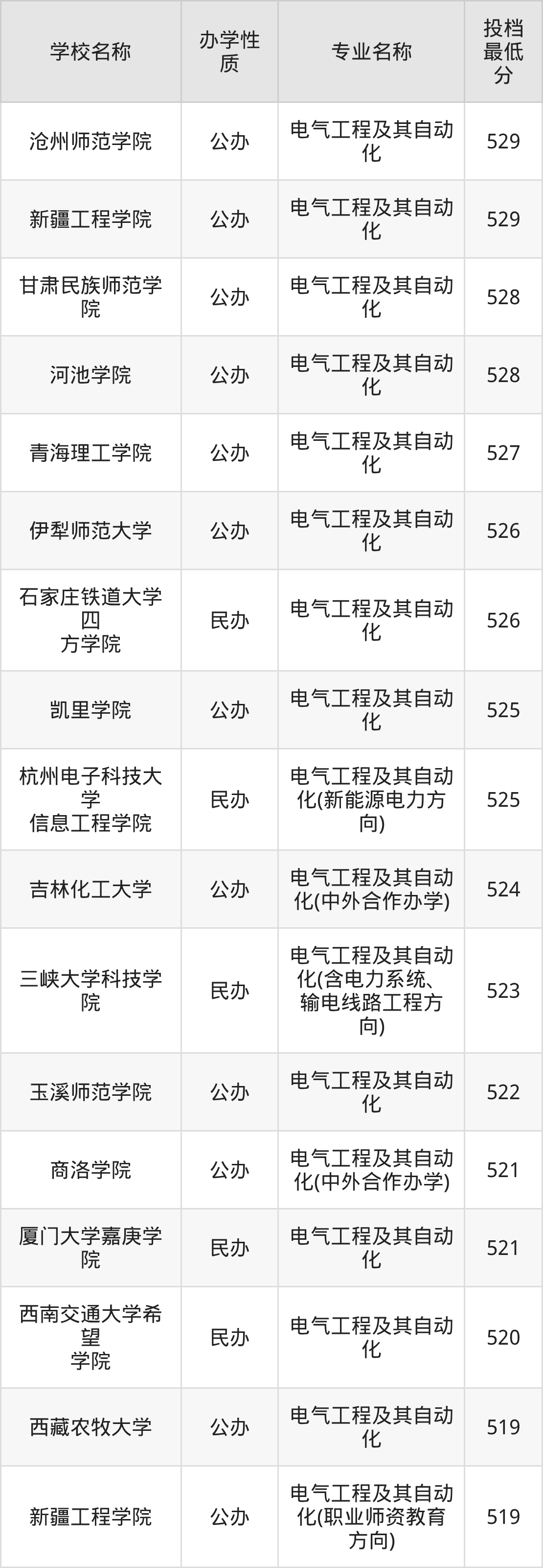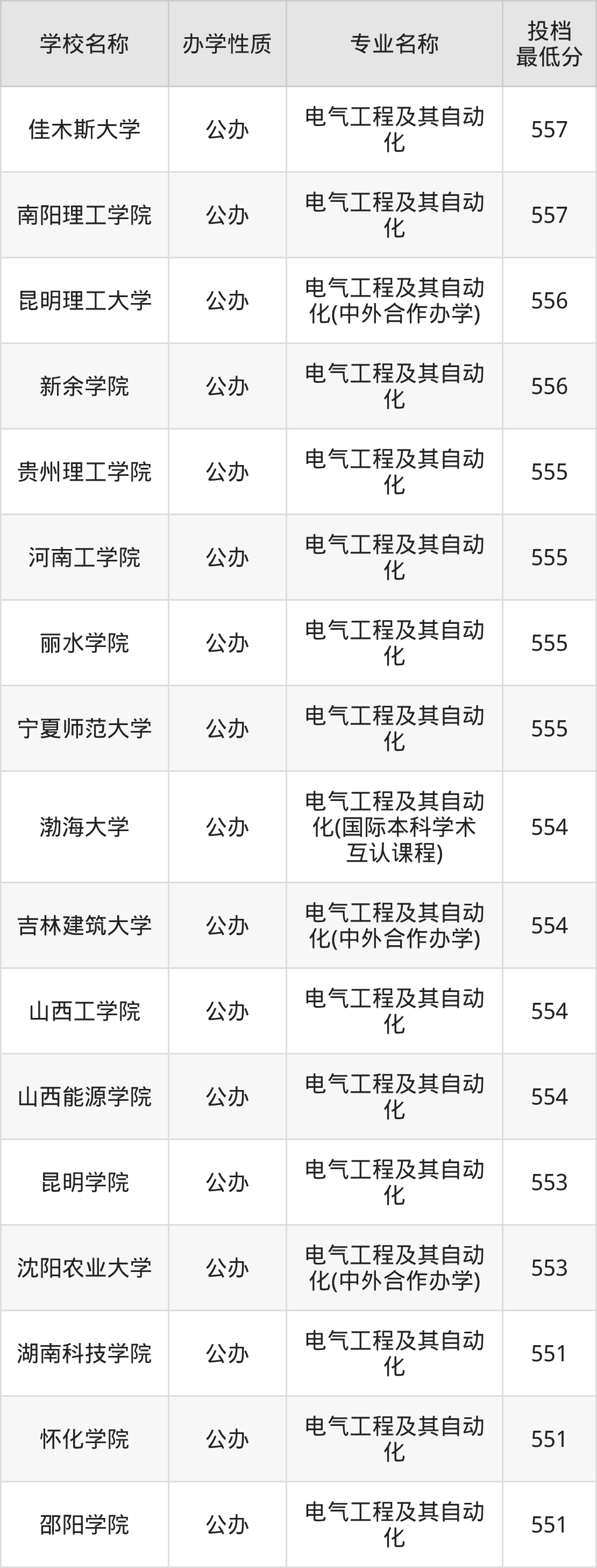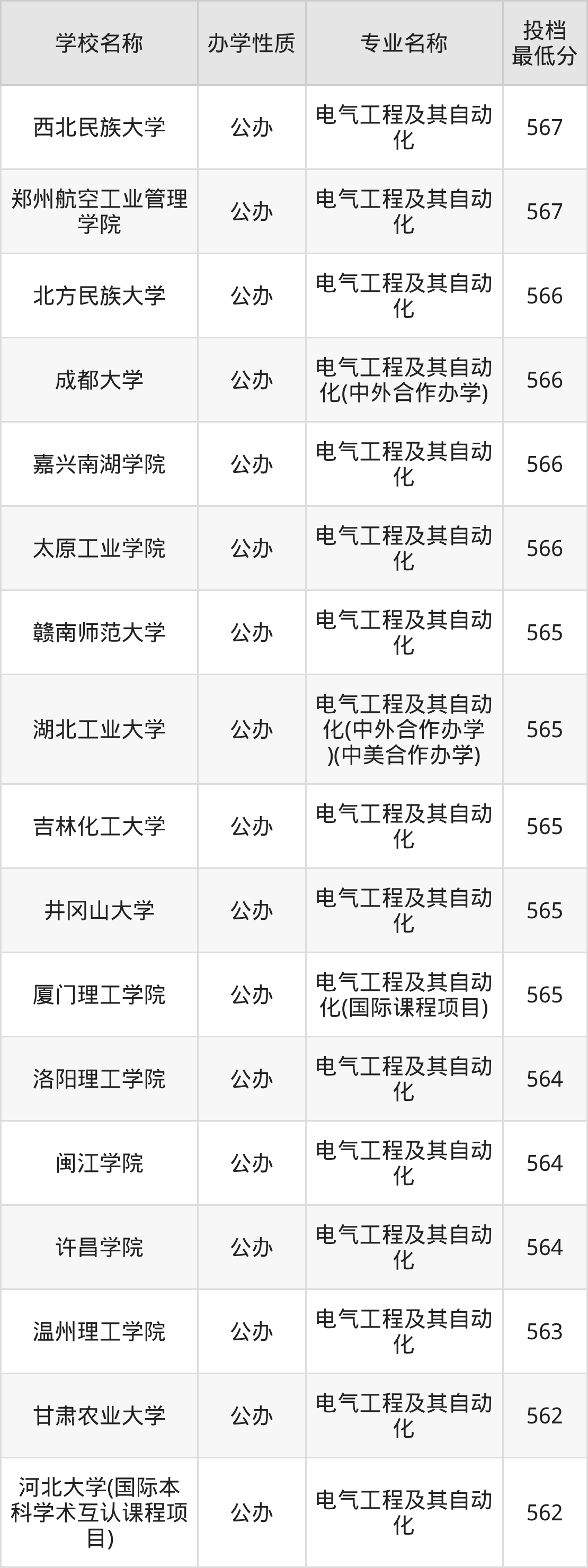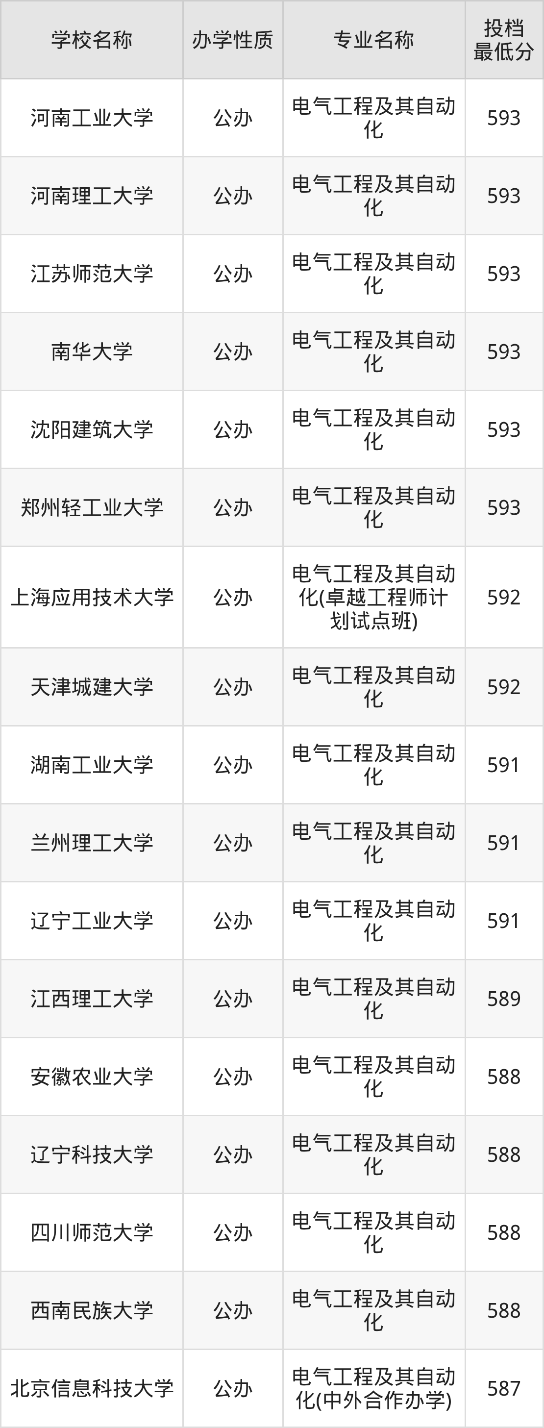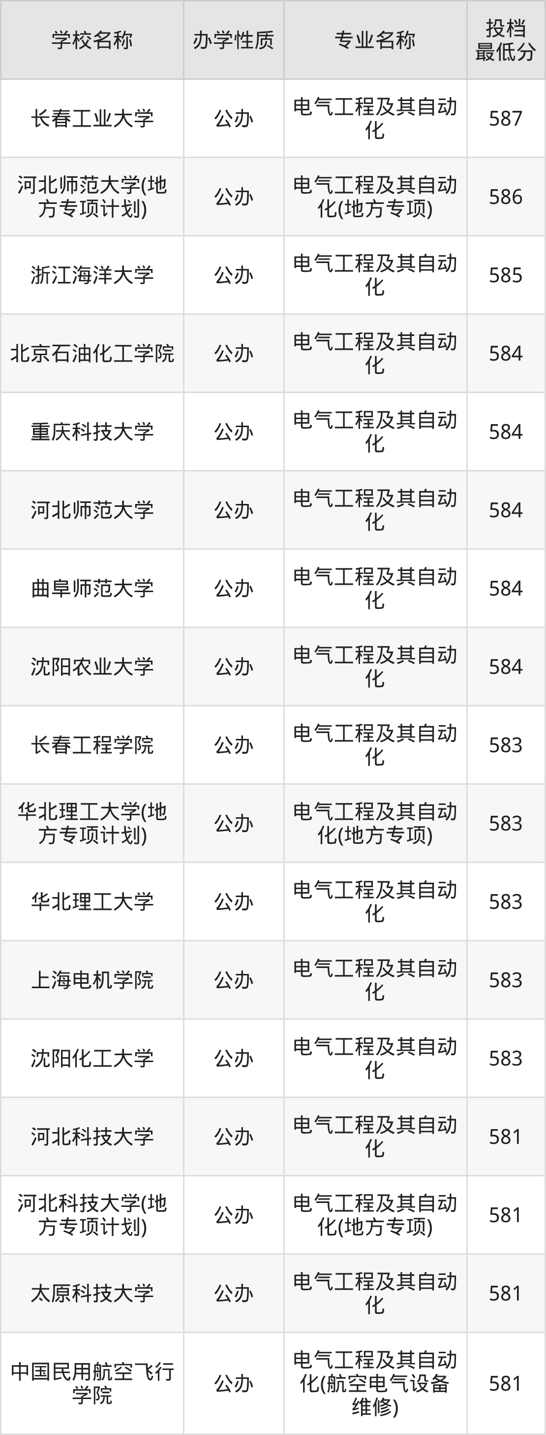 一、2025电气工程及其自动化专业录取分数线多少
