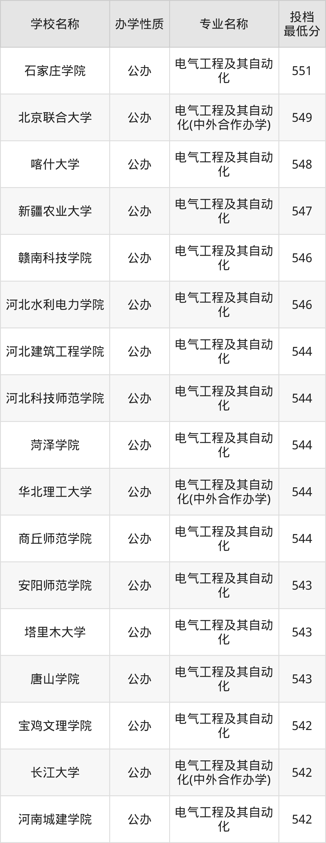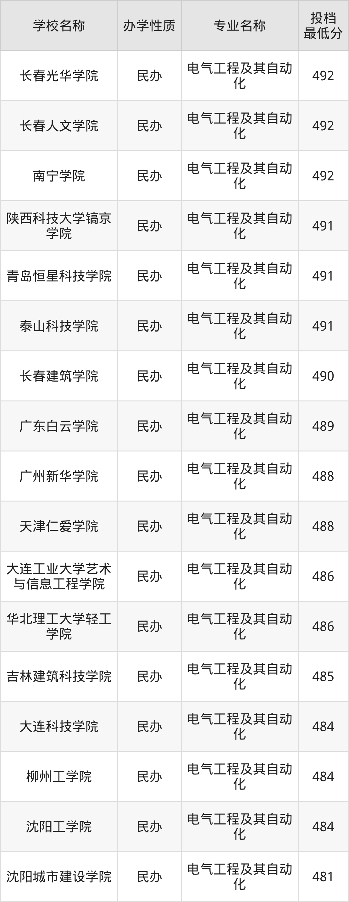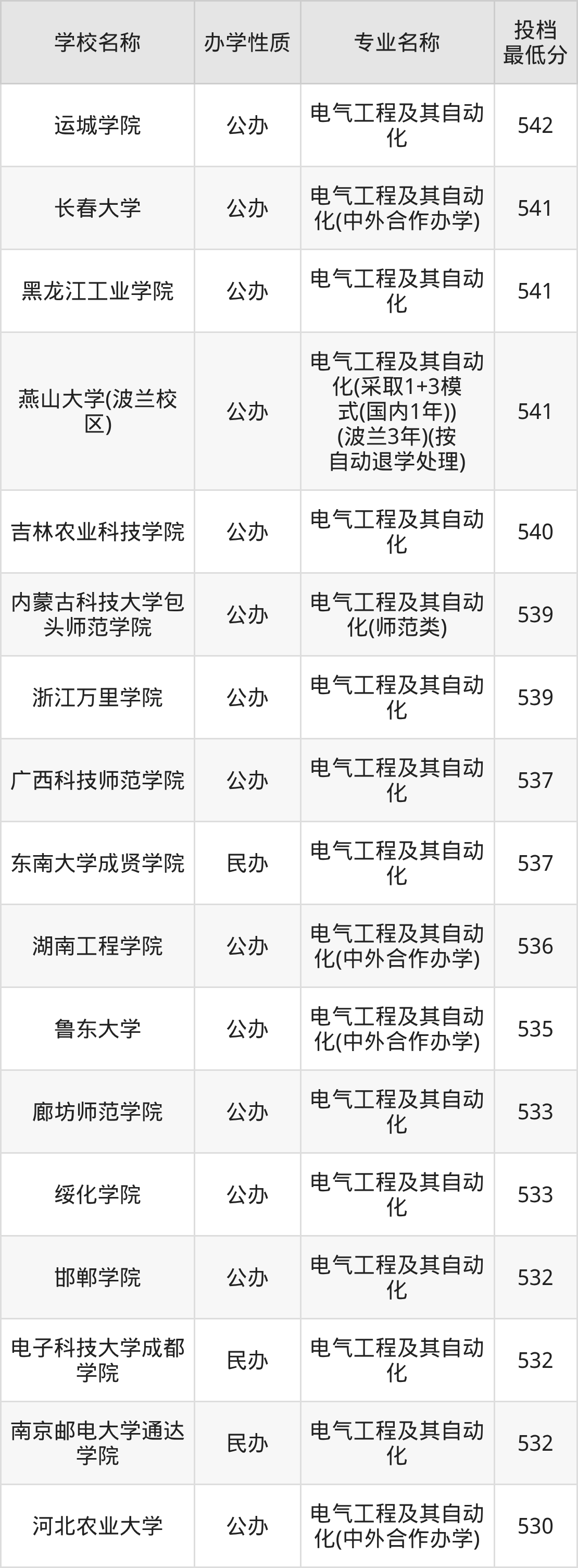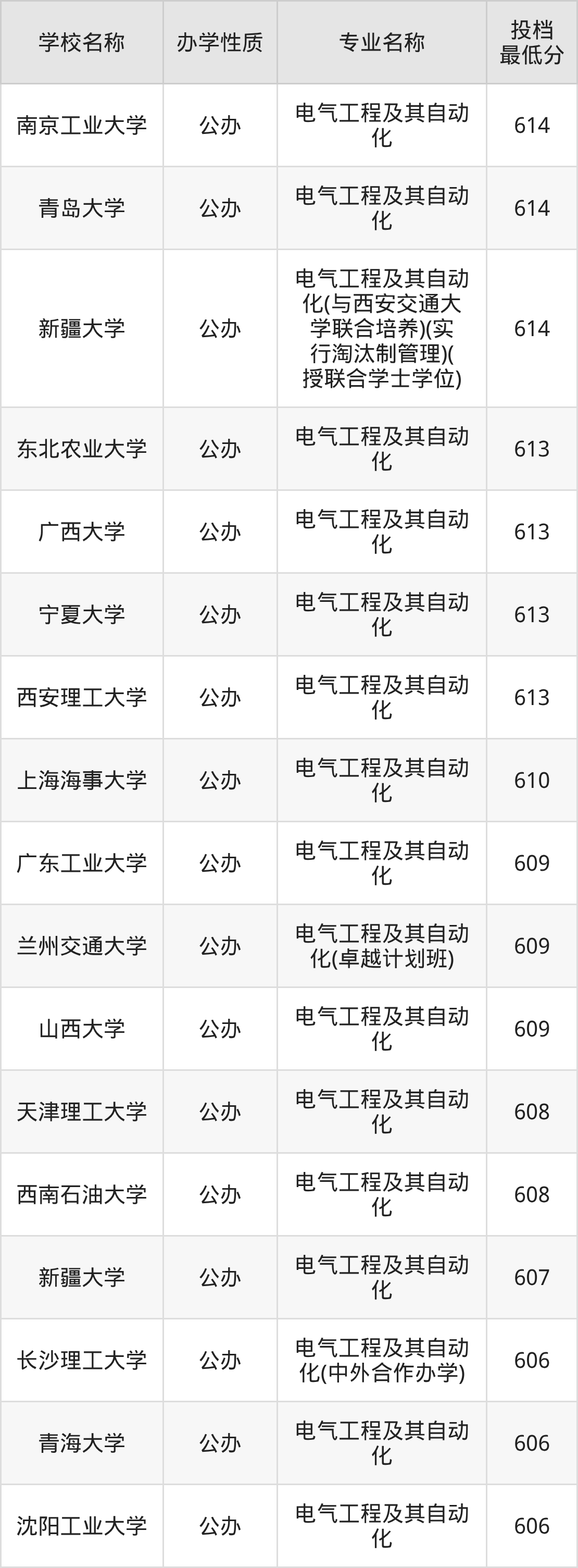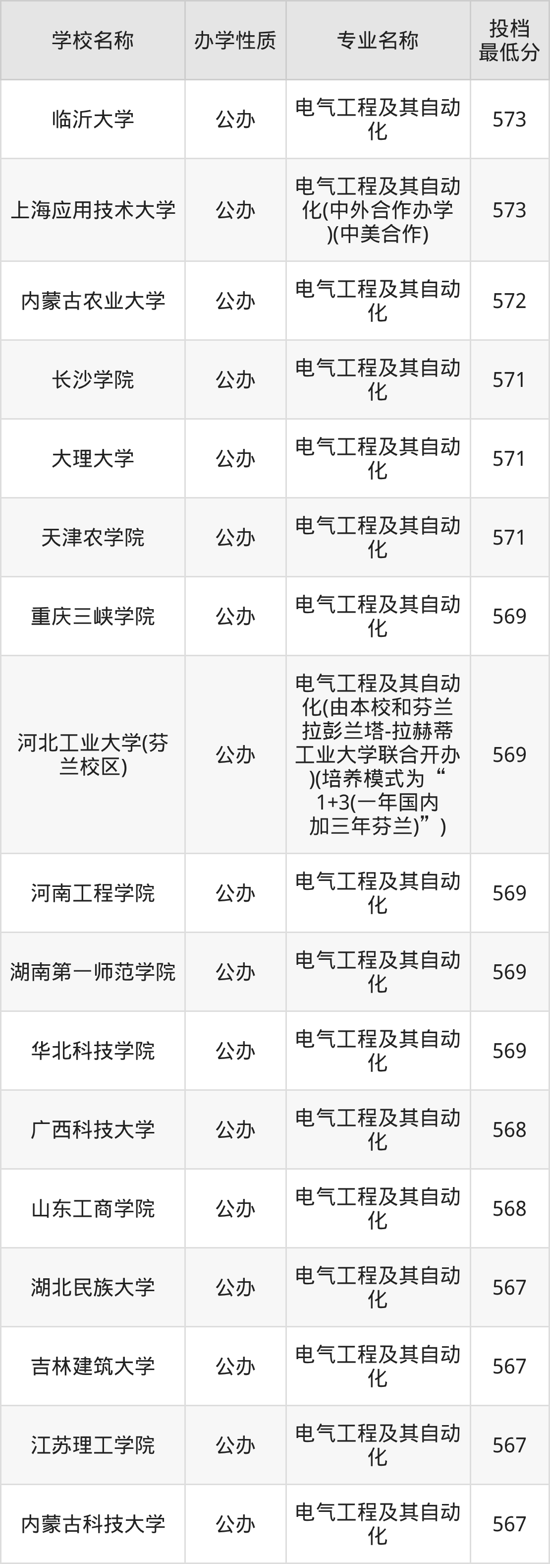 一、2025电气工程及其自动化专业录取分数线多少