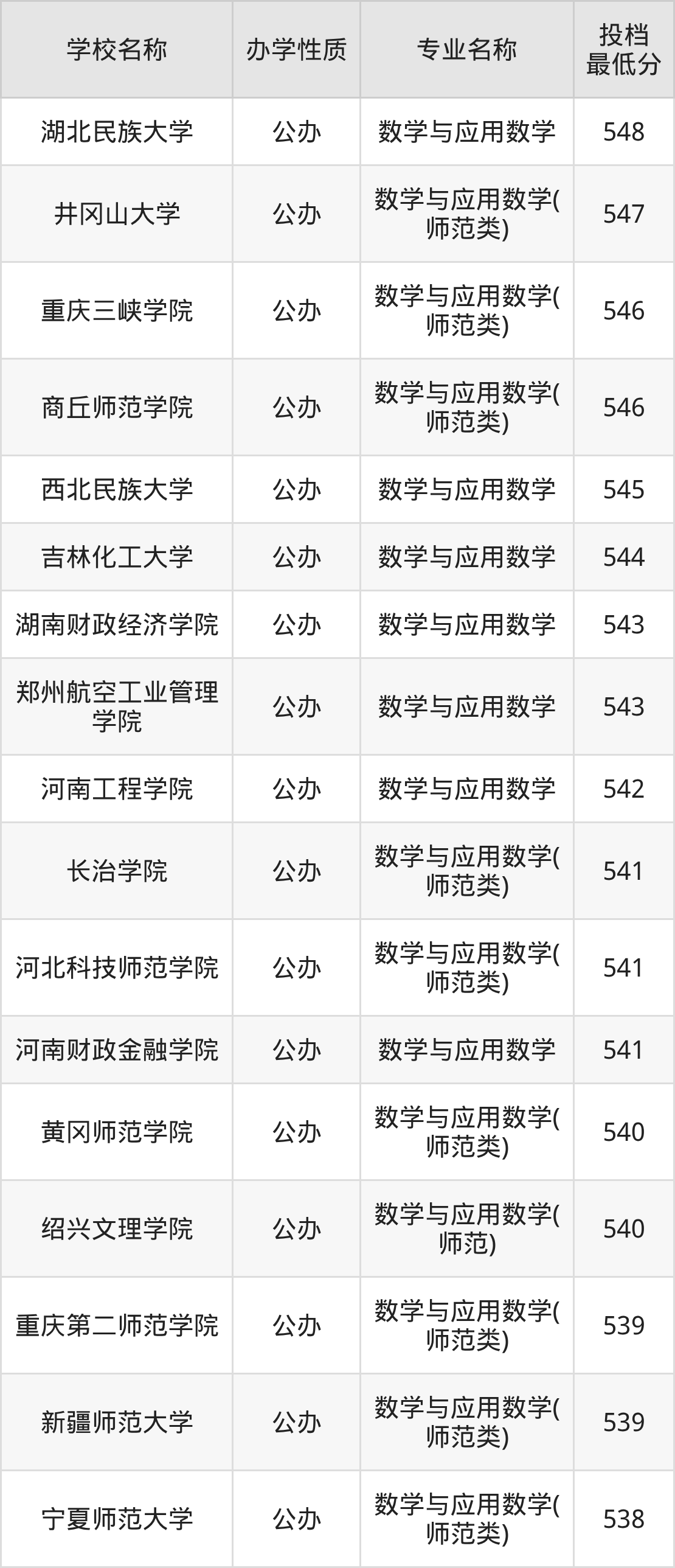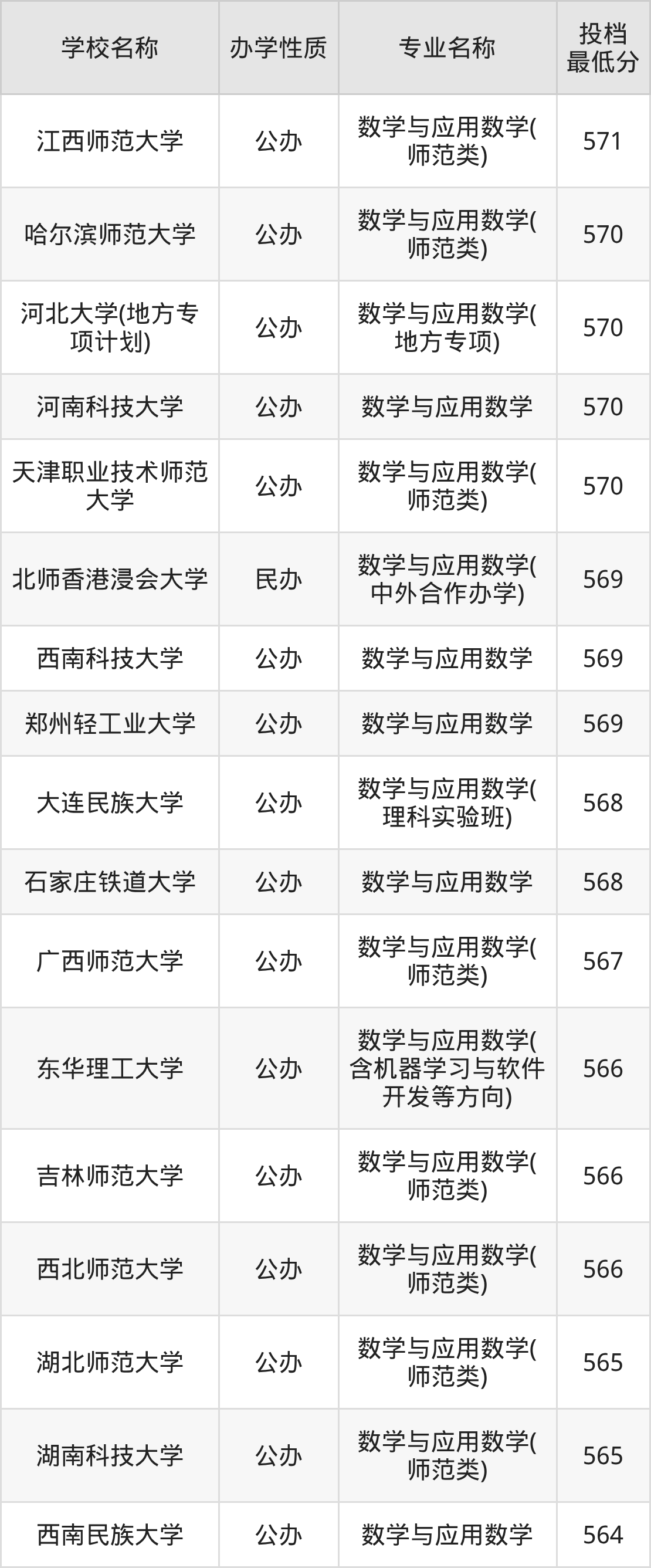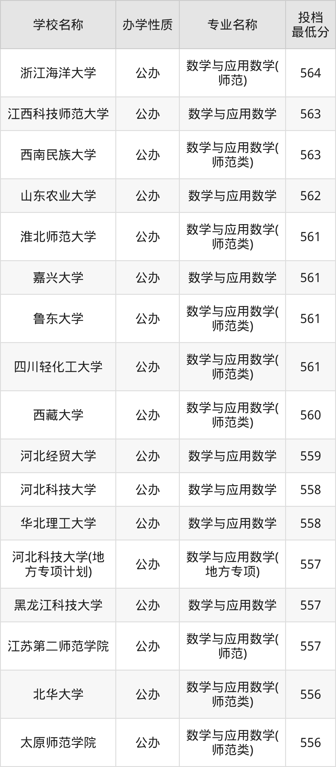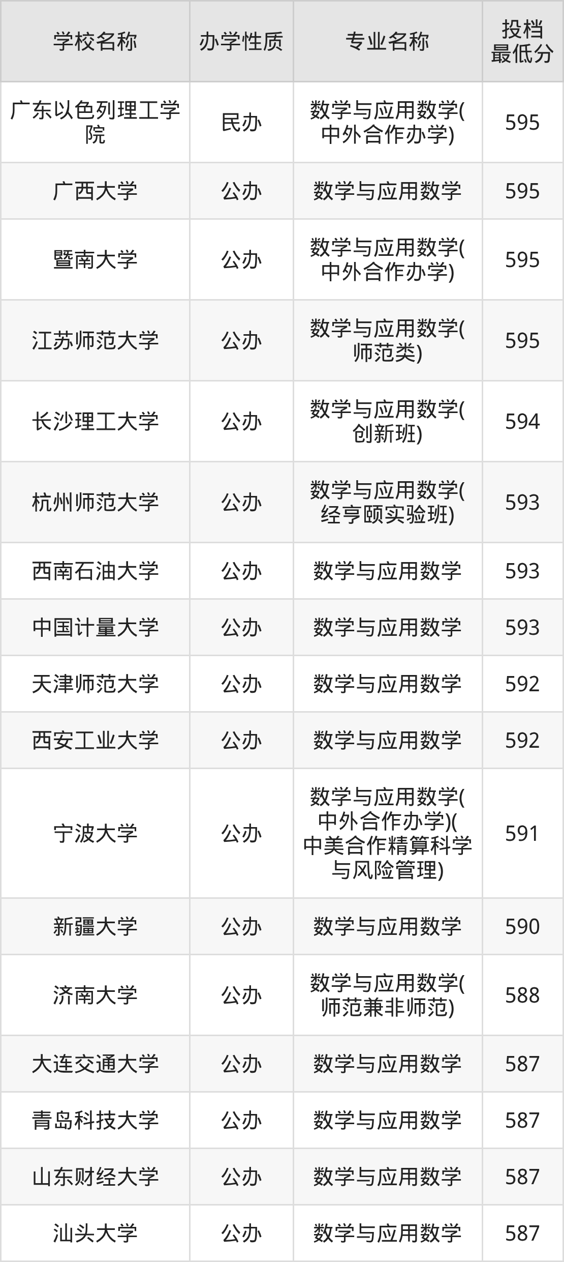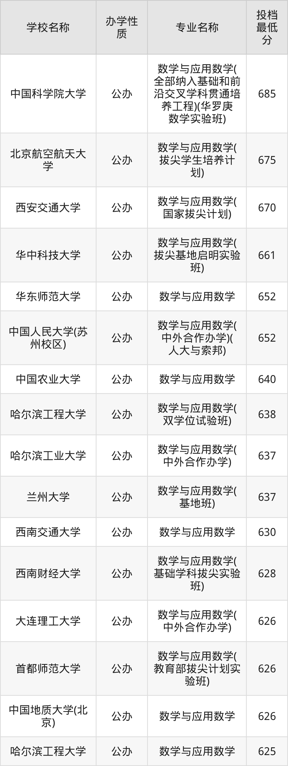 数学与应用数学专业最好的50所大学名单如表中所示,考生可以结合上文整理的分数线,然后根据自己的成绩选择合适的学校报考。