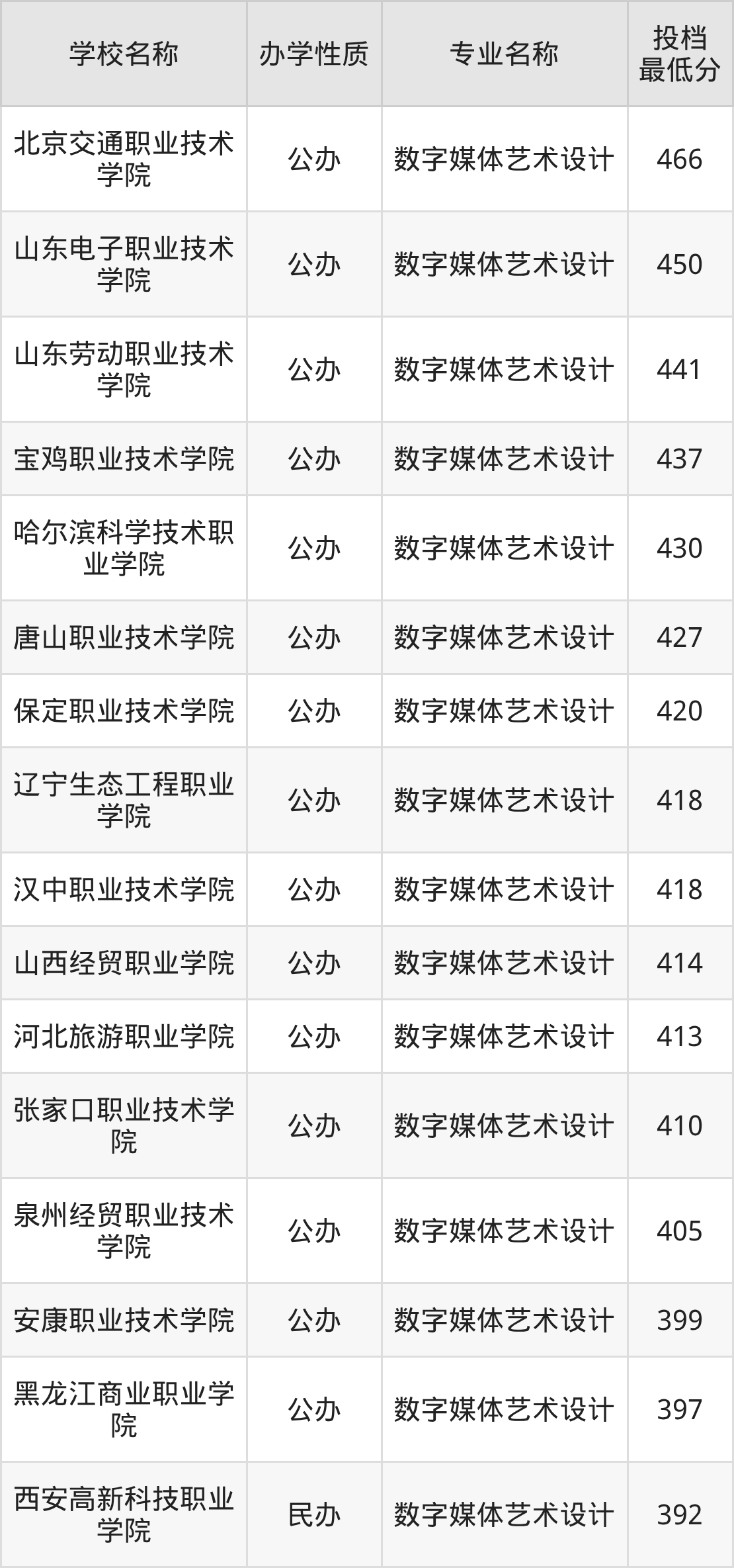 下面是2025年全国所有大学数字媒体艺术设计专业录取分数线一览表(按照分数线从高到低排名):