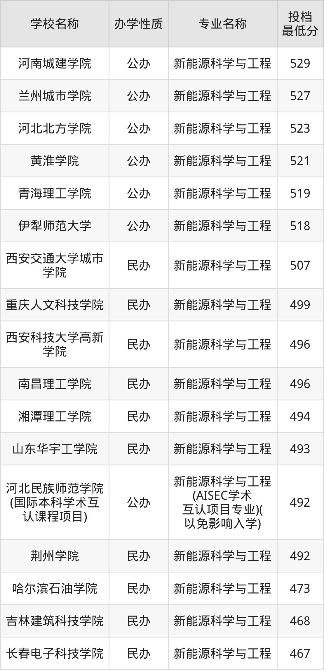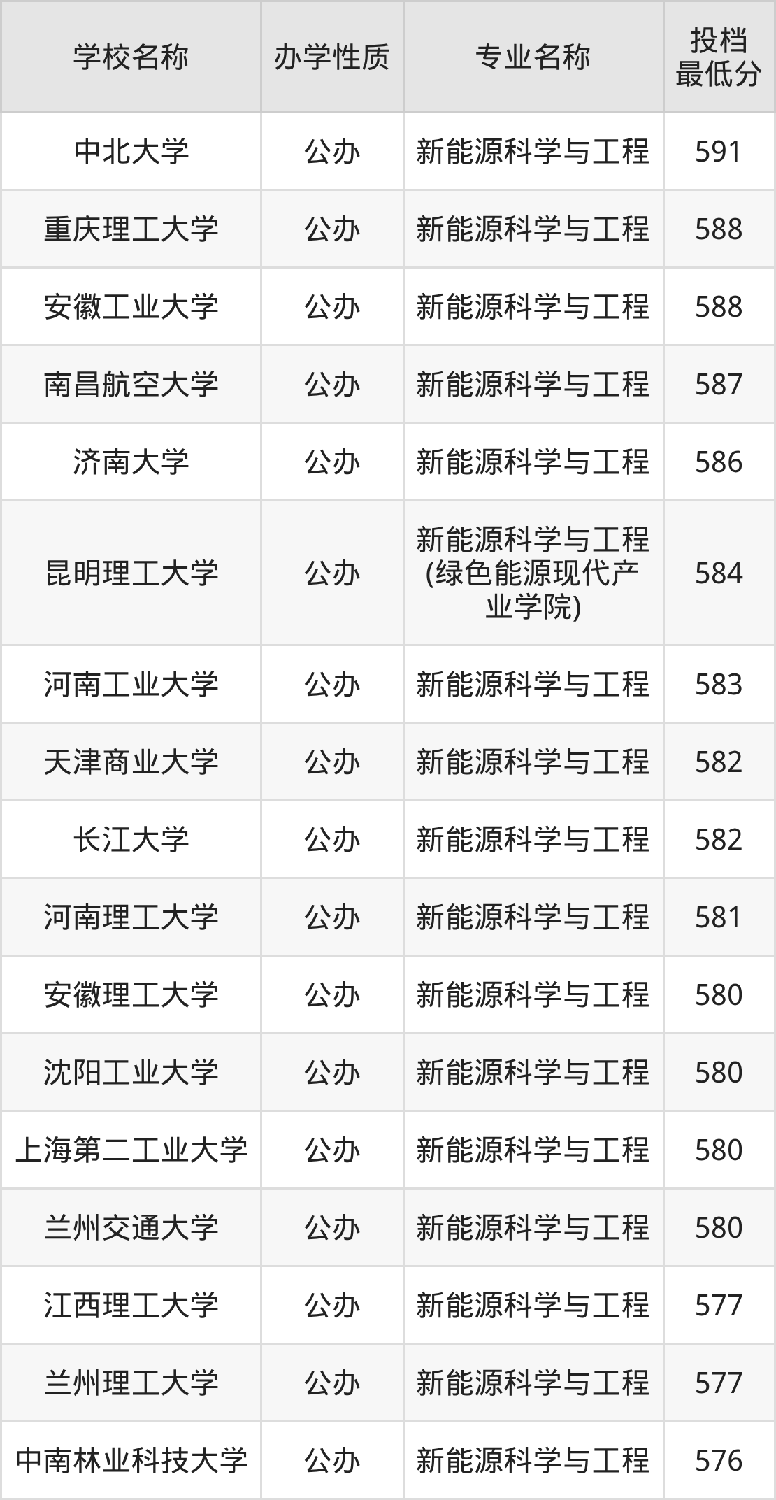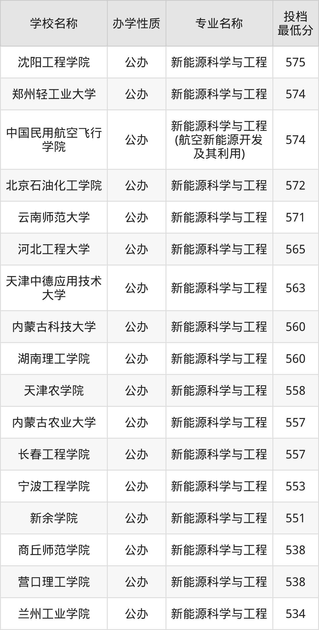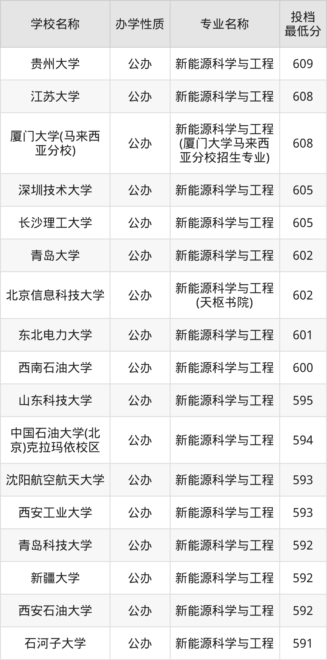 下面是2025年全国所有大学新能源科学与工程专业录取分数线一览表(按照分数线从高到低排名):