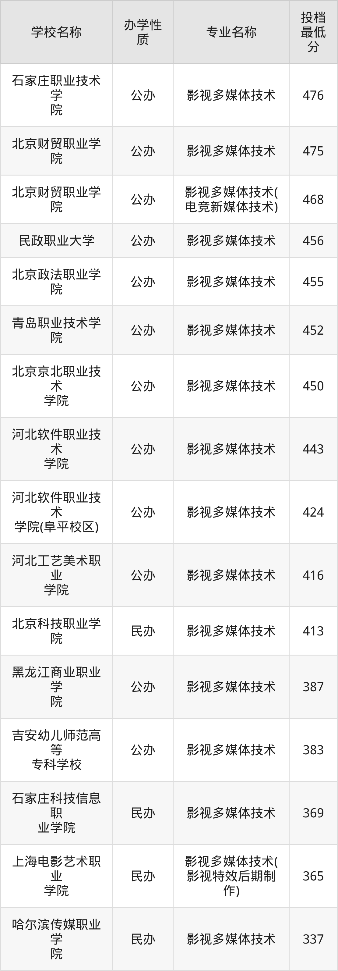 2025年全国影视多媒体技术专业录取分数线从207分到476分不等,各校最低分数线存在较大差异。