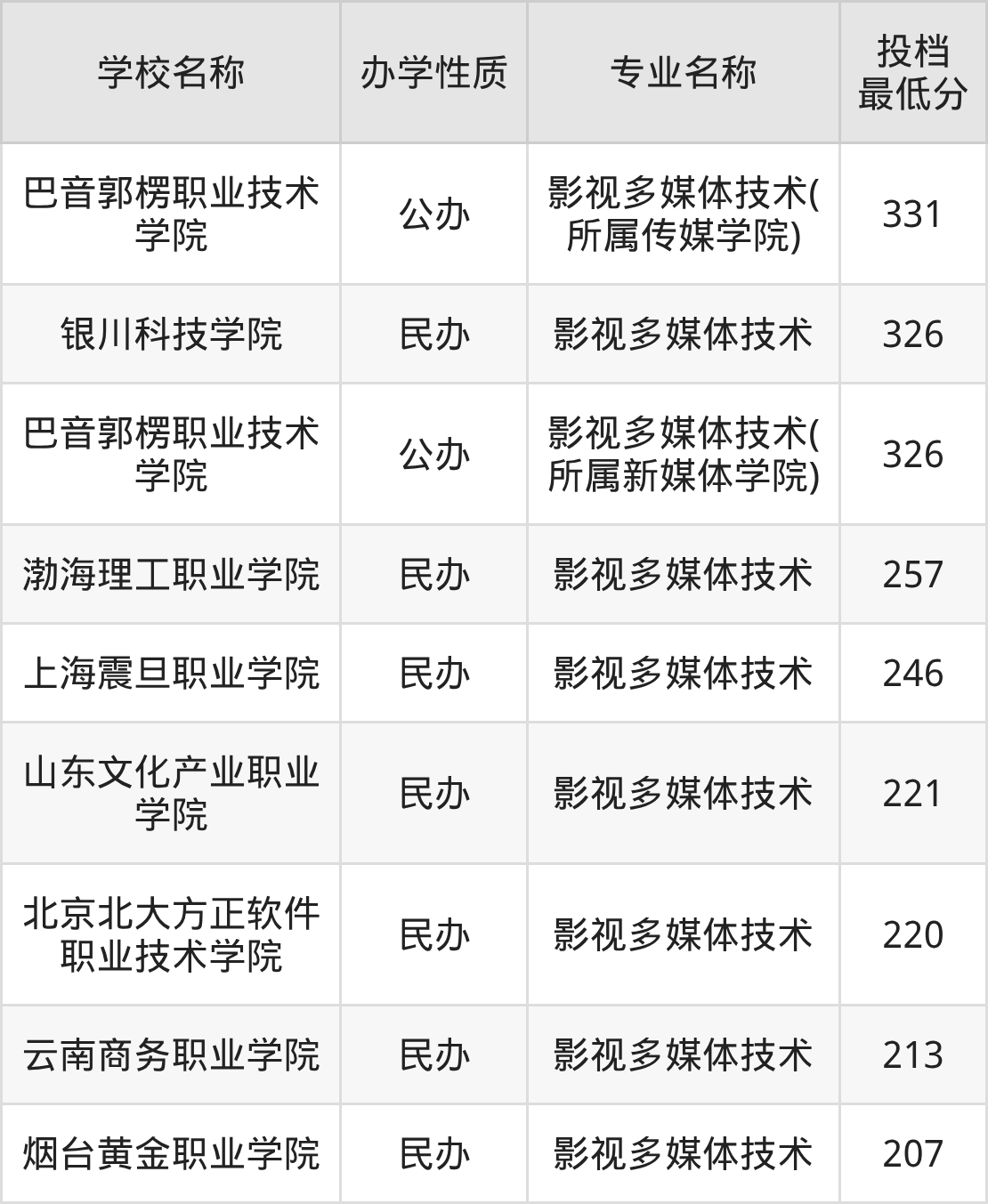 下面是全国各个大学影视多媒体技术专业最低录取分数线排名一览表,考生可根据自己的分数情况选择合适的学校报考。