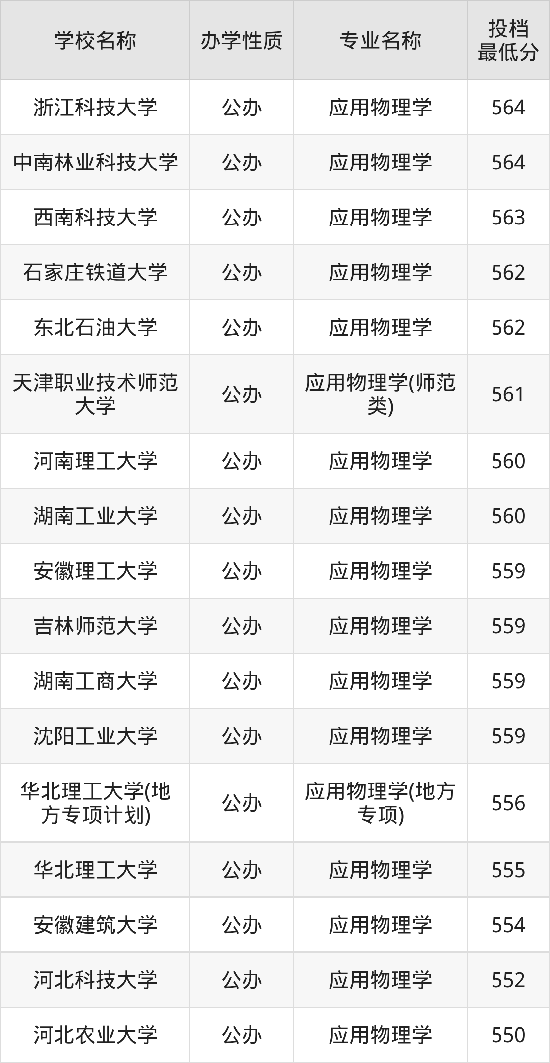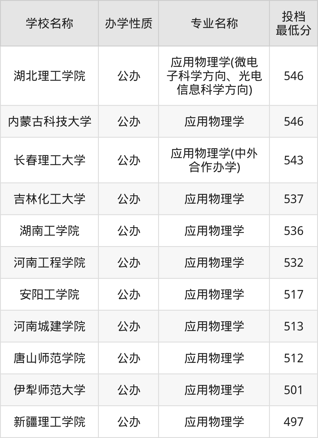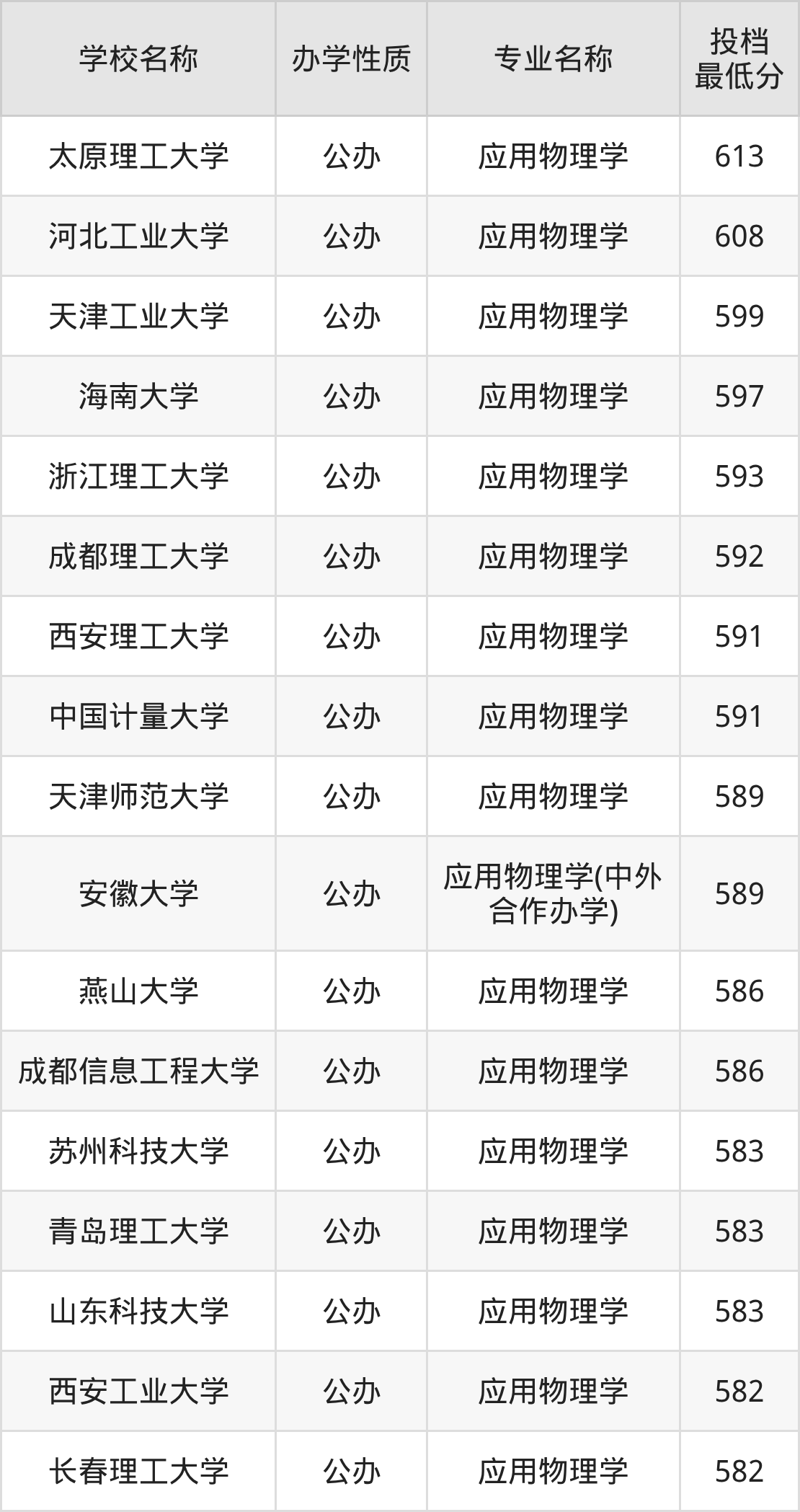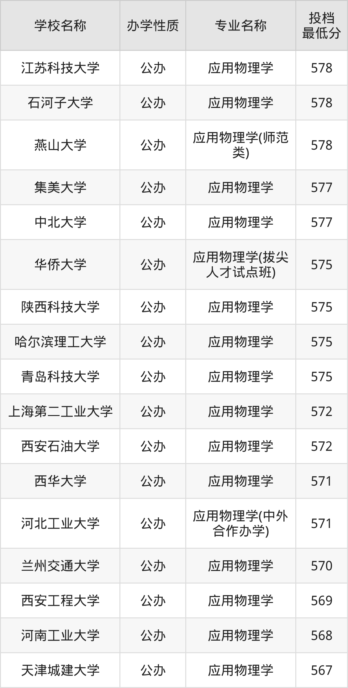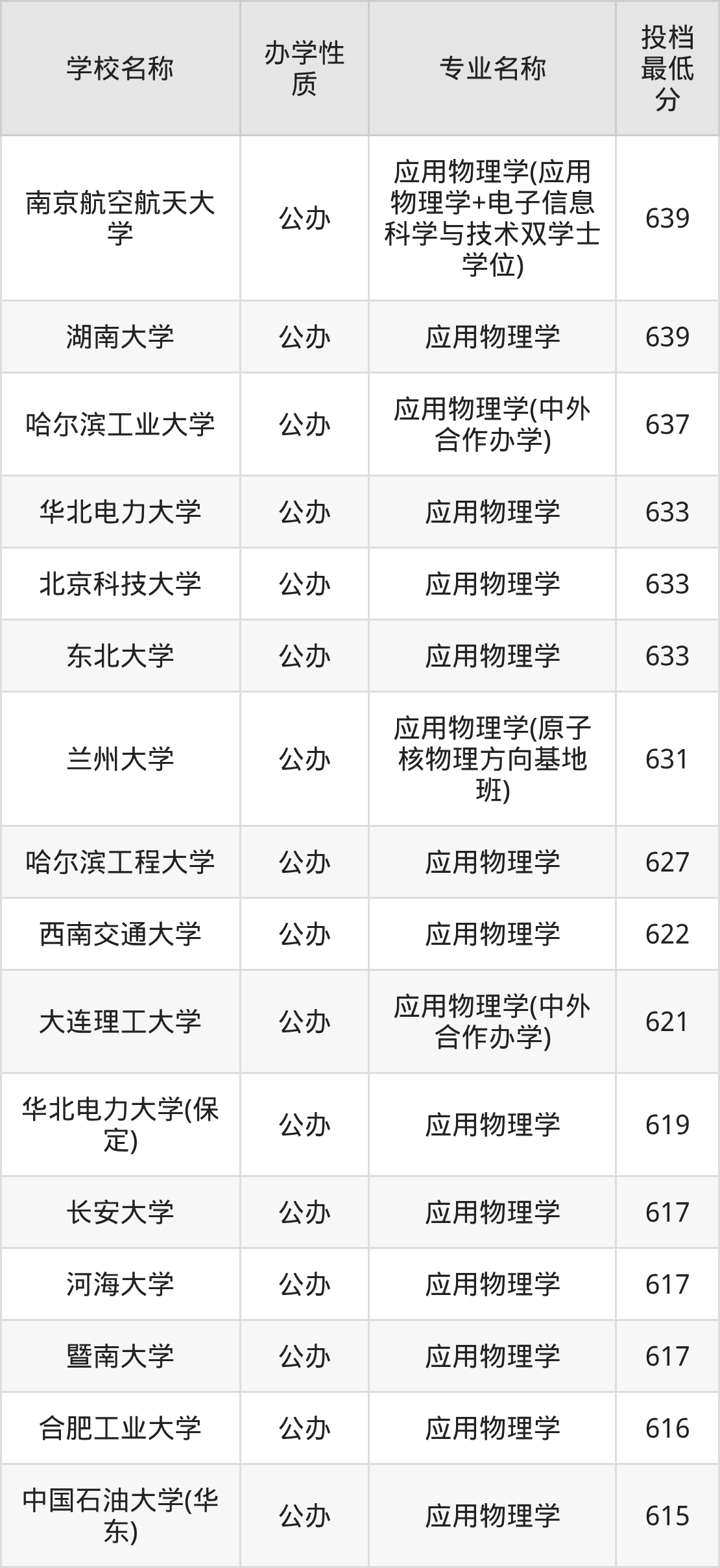 下面是2025年全国所有大学应用物理学专业录取分数线一览表(按照分数线从高到低排名):