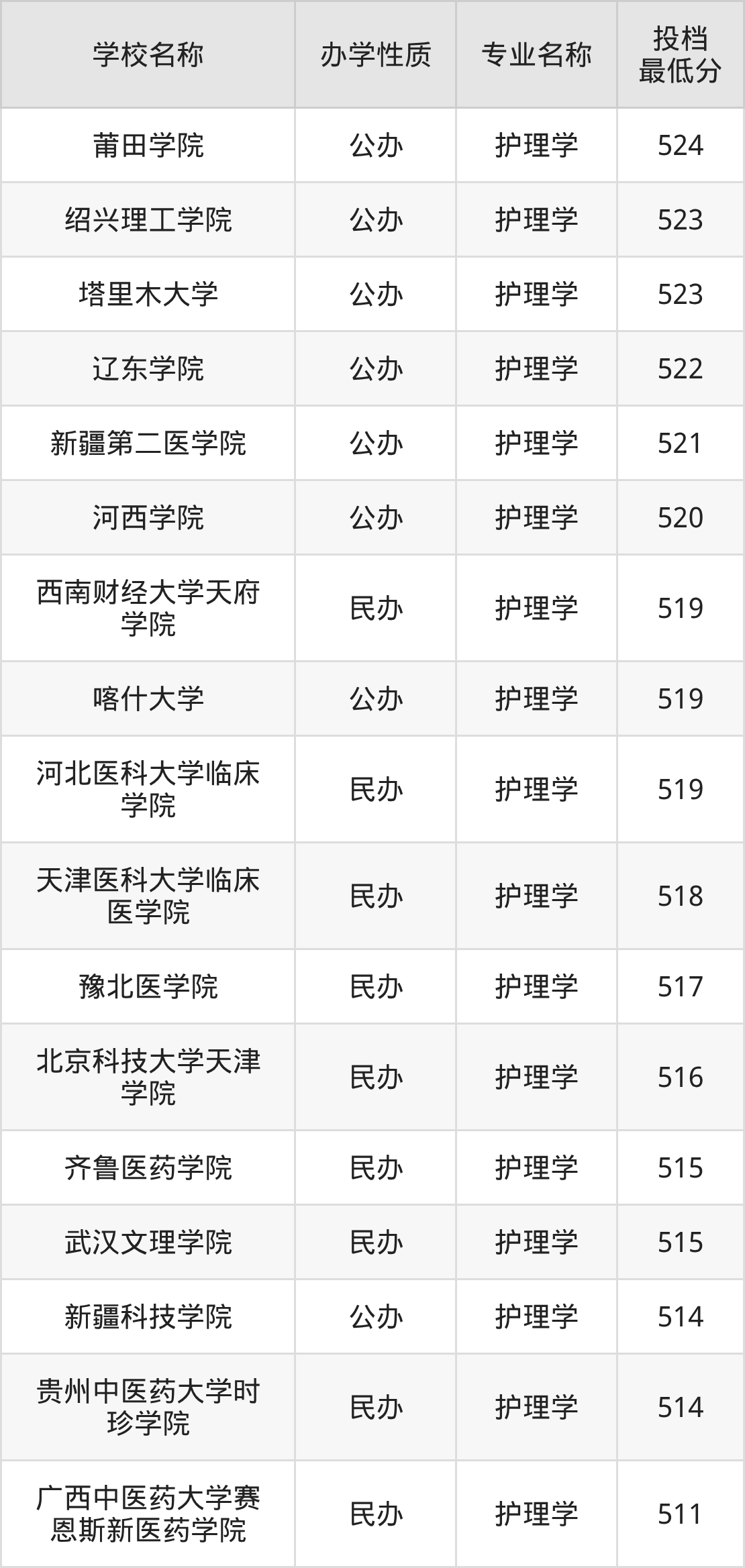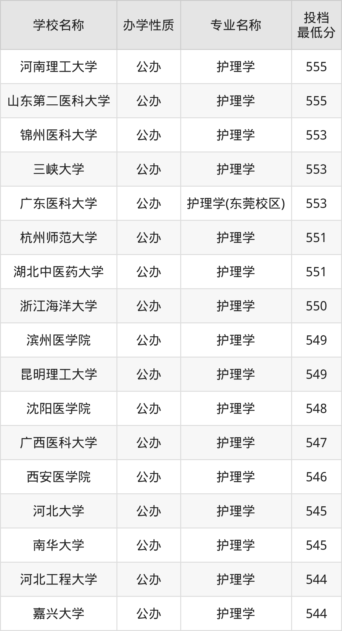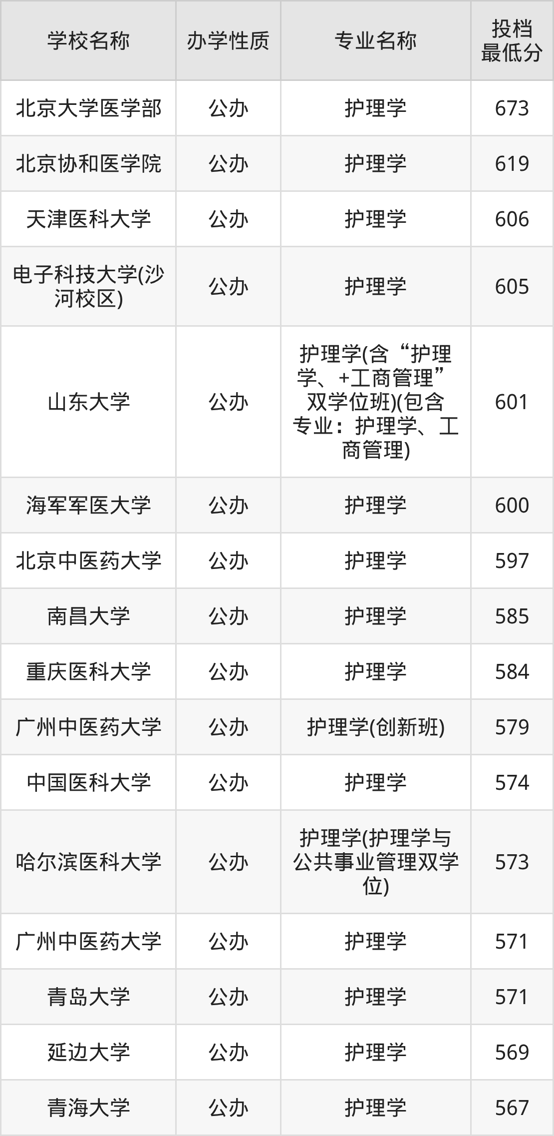 下面是全国各个大学护理学专业最低录取分数线排名一览表,考生可根据自己的分数情况选择合适的学校报考。