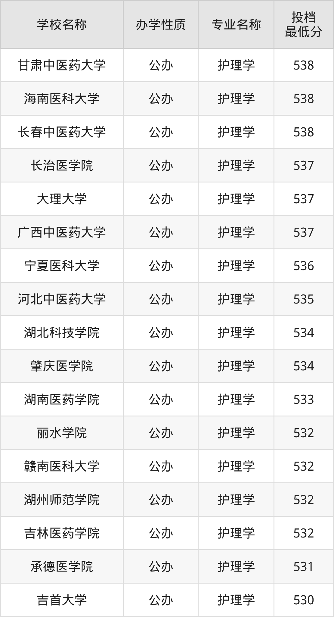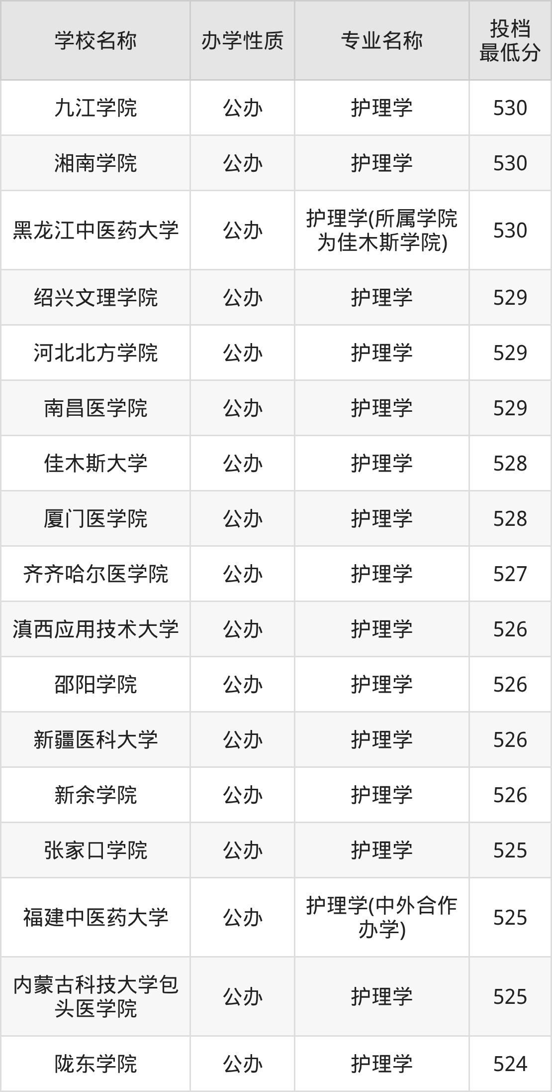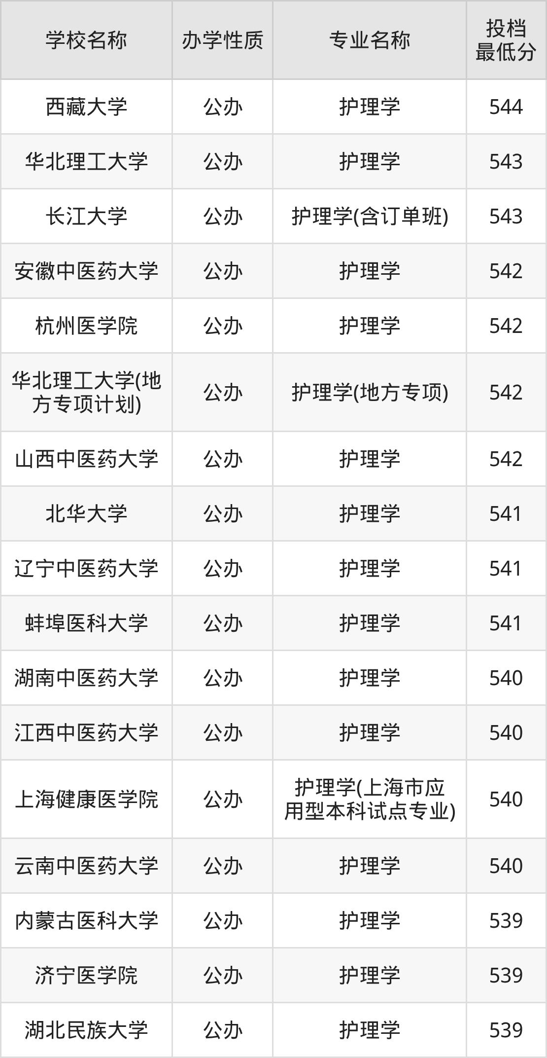 下面是全国各个大学护理学专业最低录取分数线排名一览表,考生可根据自己的分数情况选择合适的学校报考。