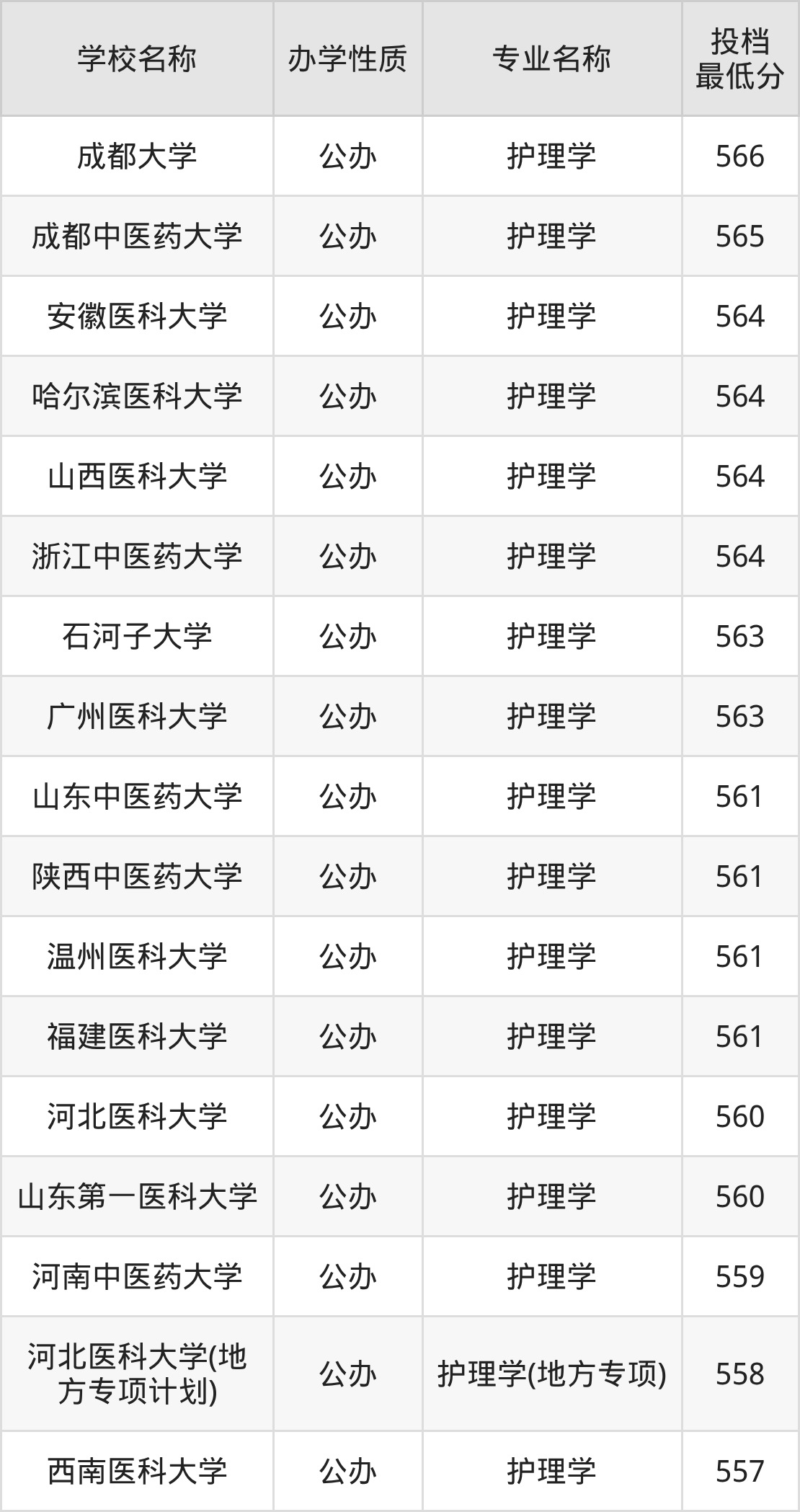 550分左右的护理学大学有:延边大学569分、青海大学567分、成都大学566分、成都中医药大学565分、安徽医科大学564分。