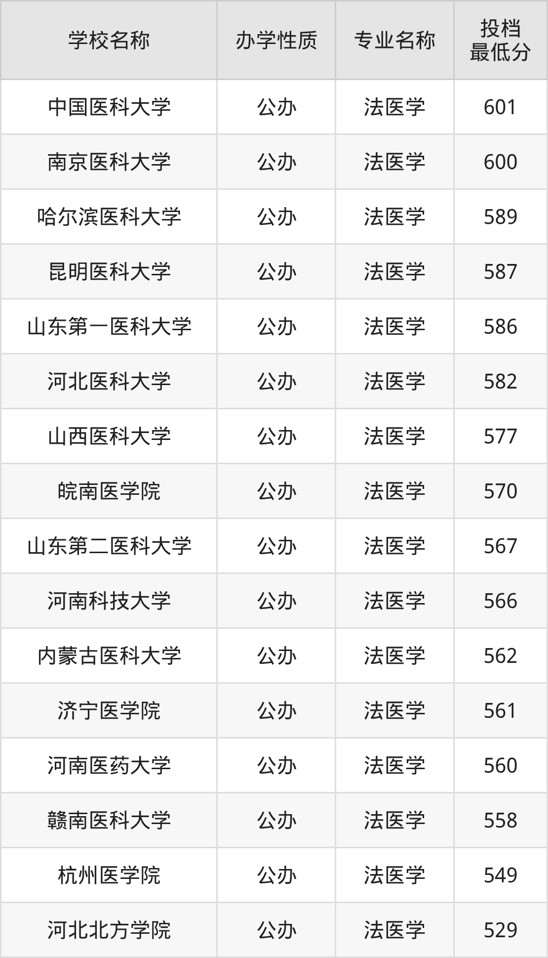 下面是2025年全国所有大学法医学专业录取分数线一览表(按照分数线从高到低排名):
