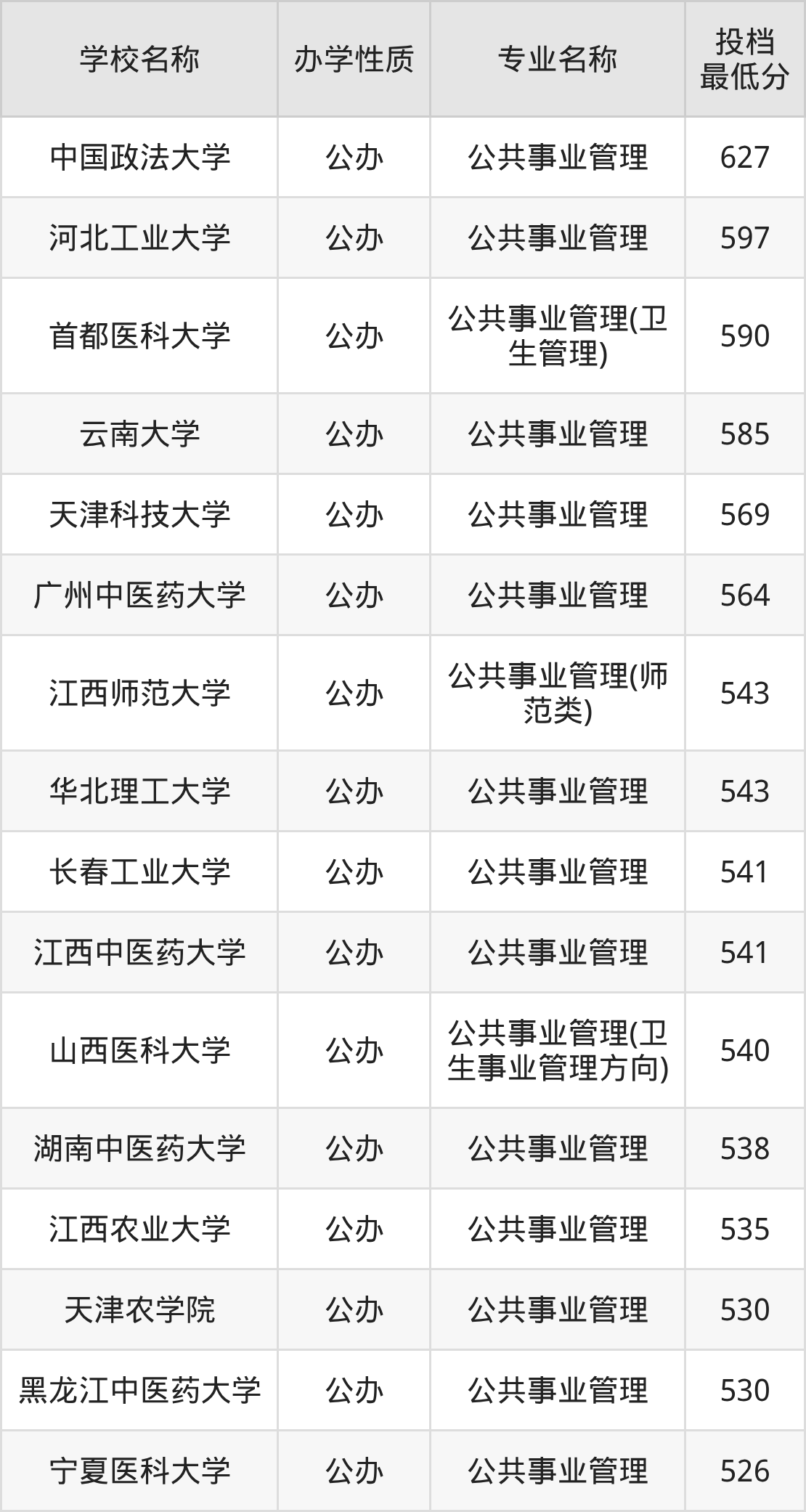 下面是全国各个大学公共事业管理专业最低录取分数线排名一览表,考生可根据自己的分数情况选择合适的学校报考。