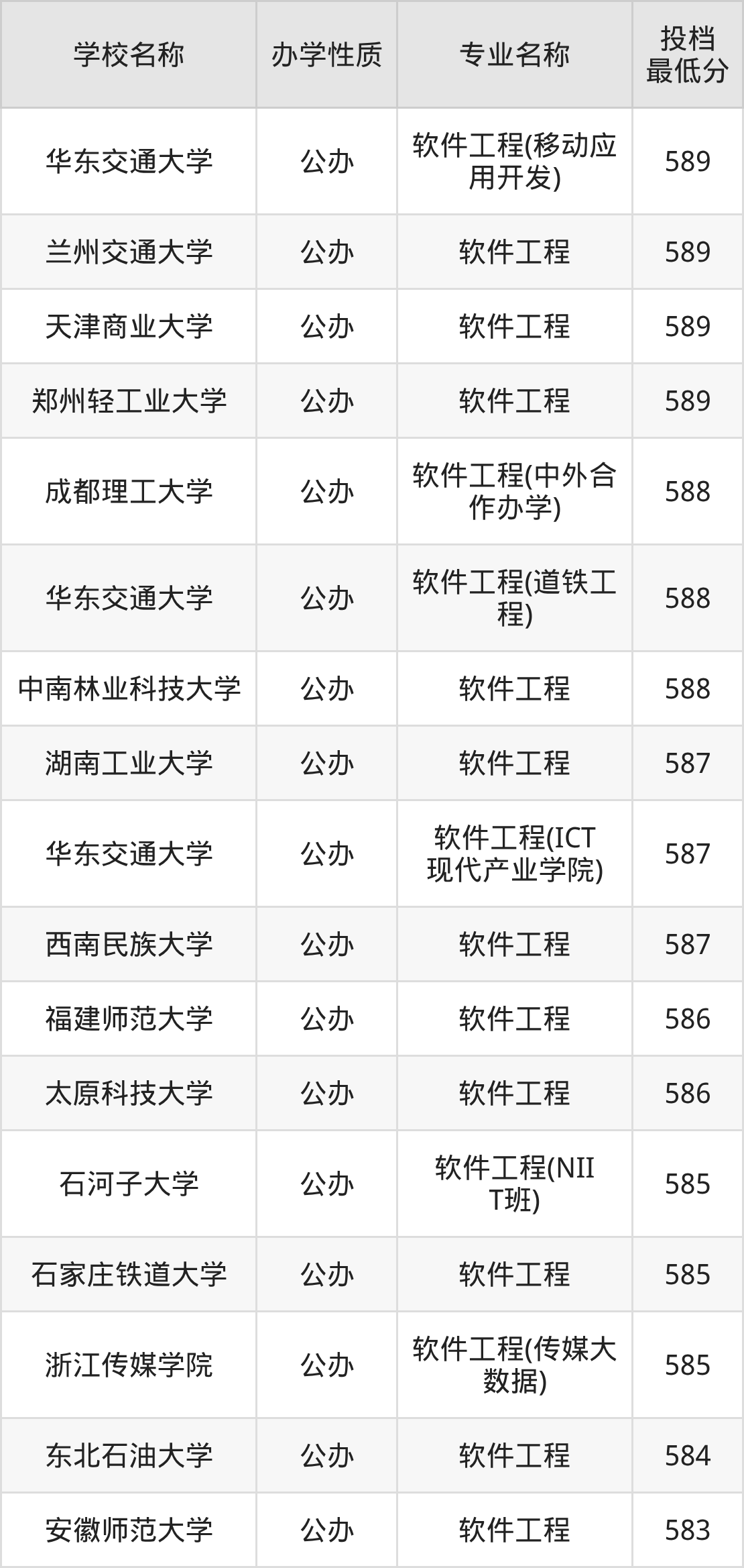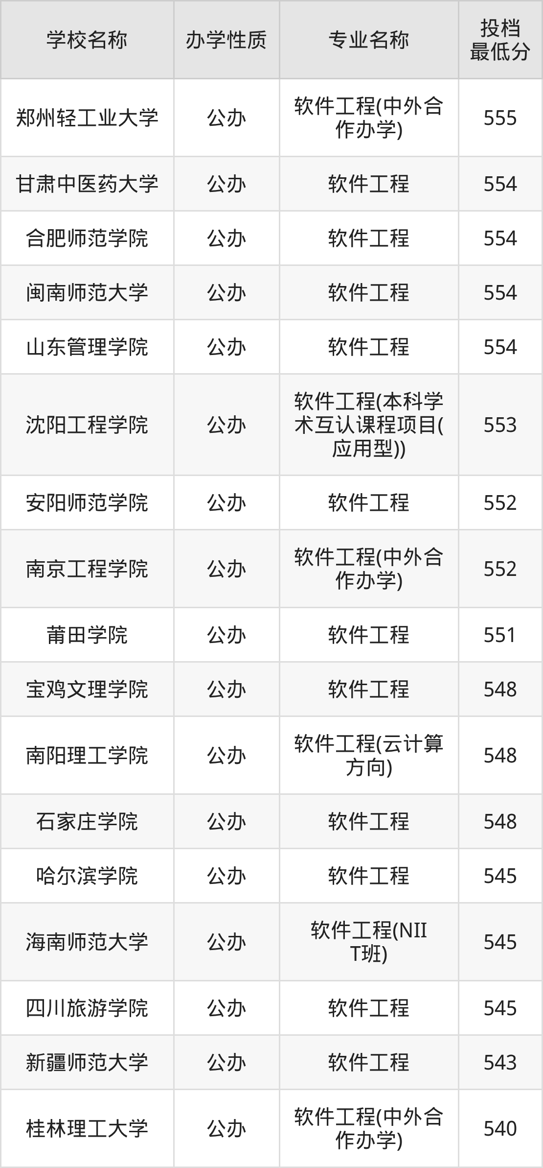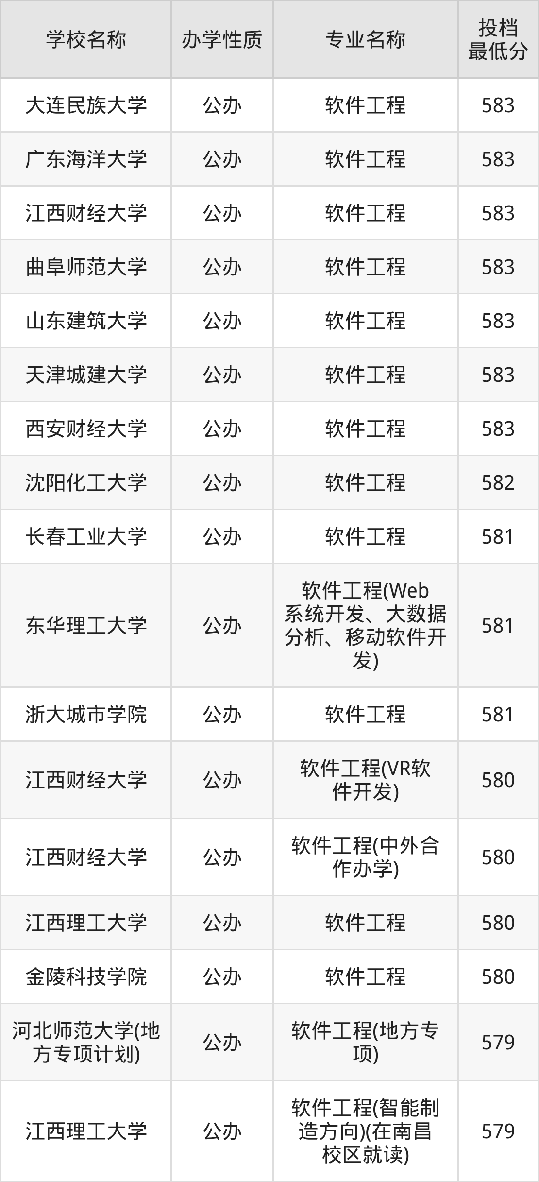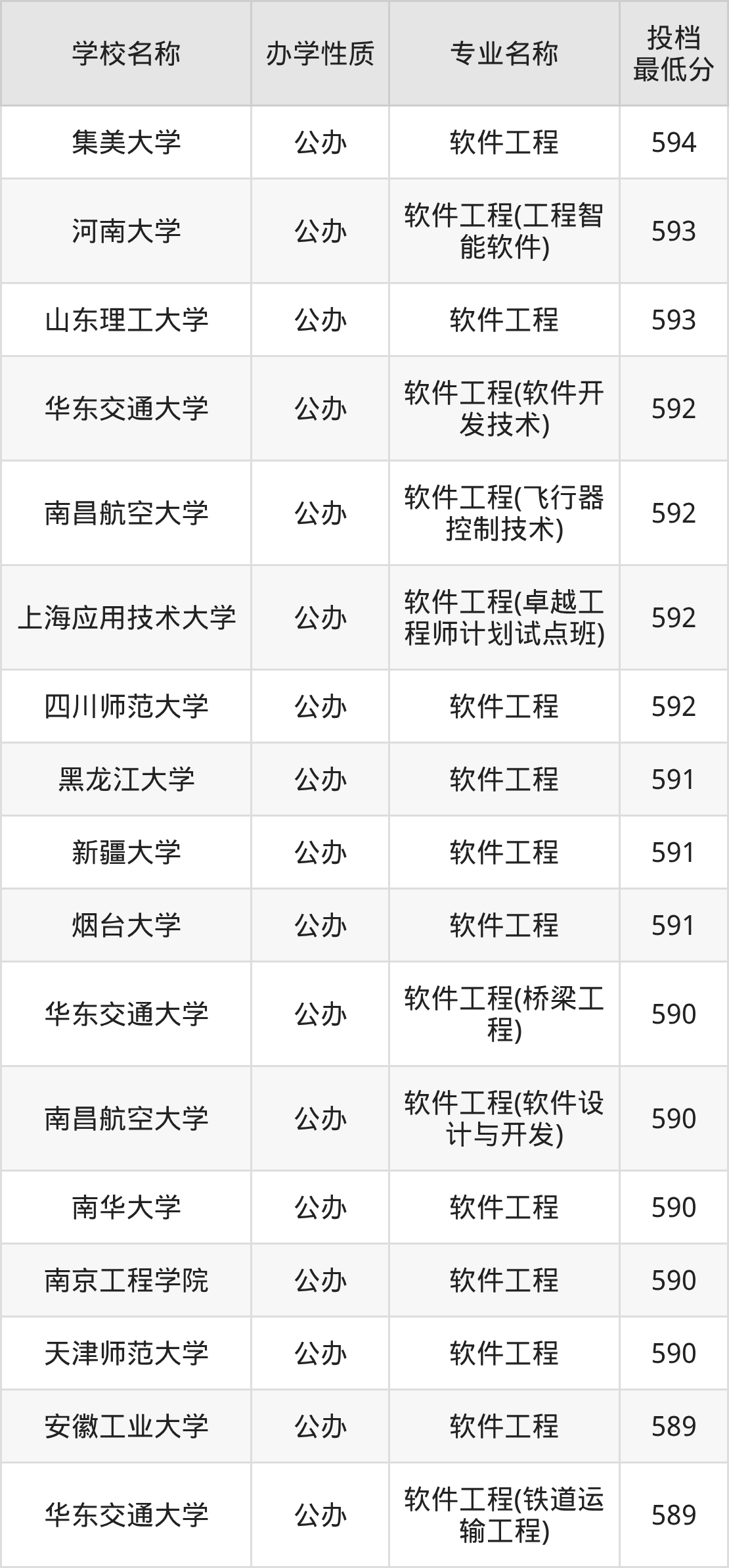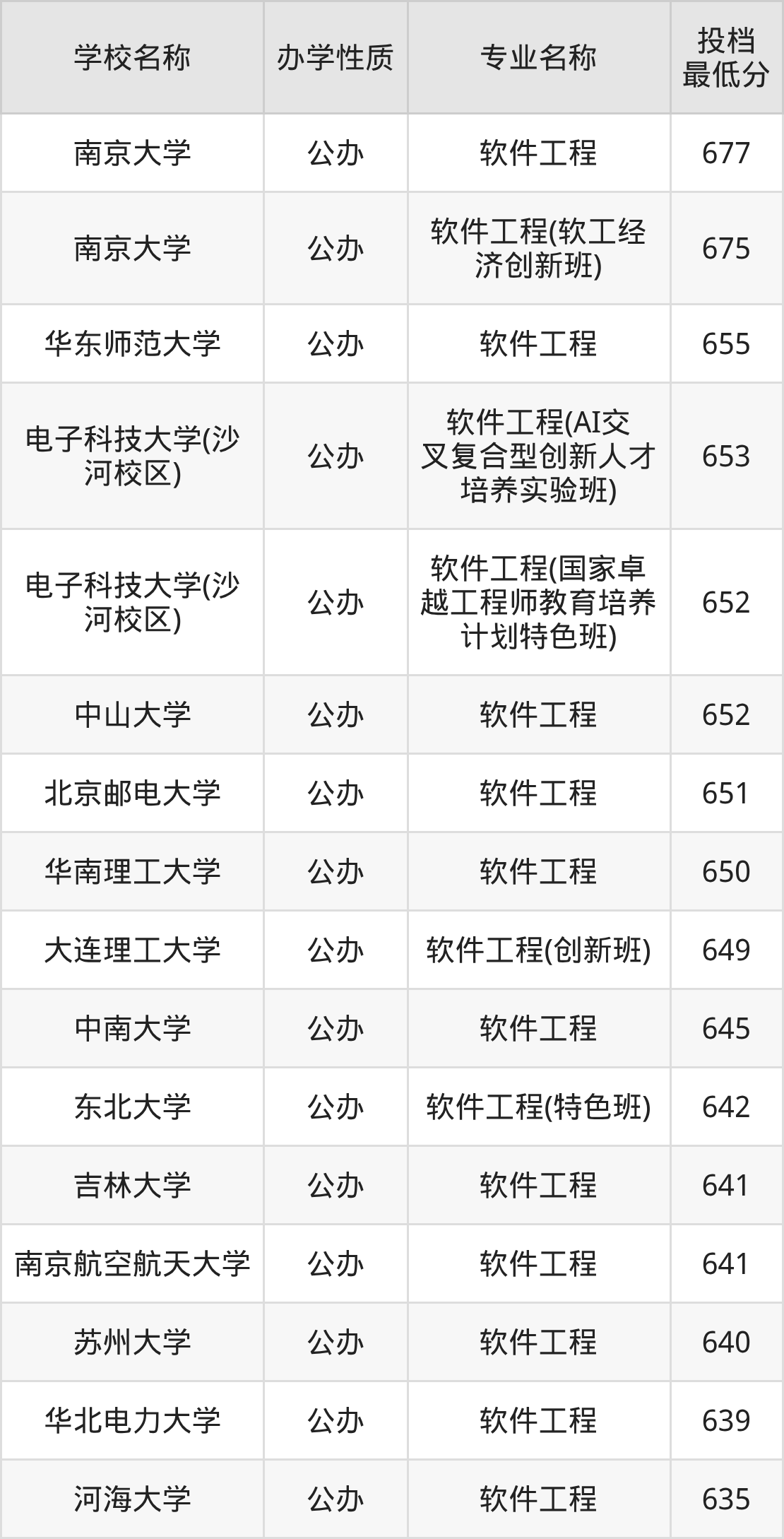 一、2025软件工程专业录取分数线多少
