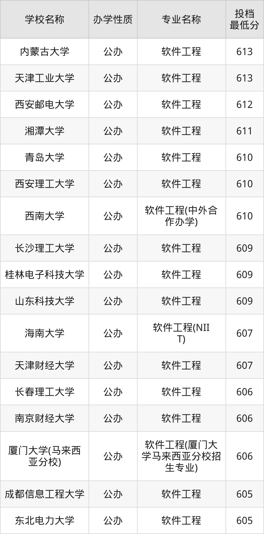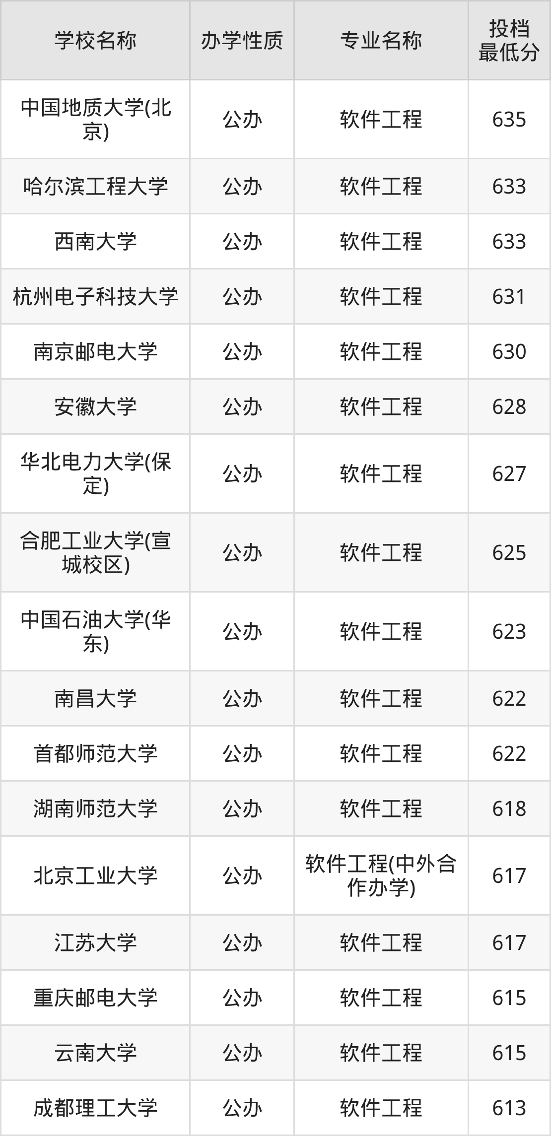 软件工程专业最好的50所大学名单如表中所示,考生可以结合上文整理的分数线,然后根据自己的成绩选择合适的学校报考。