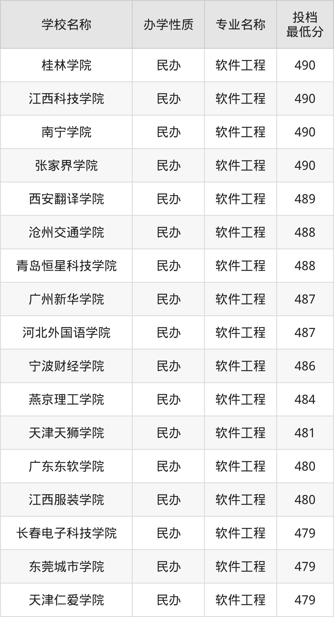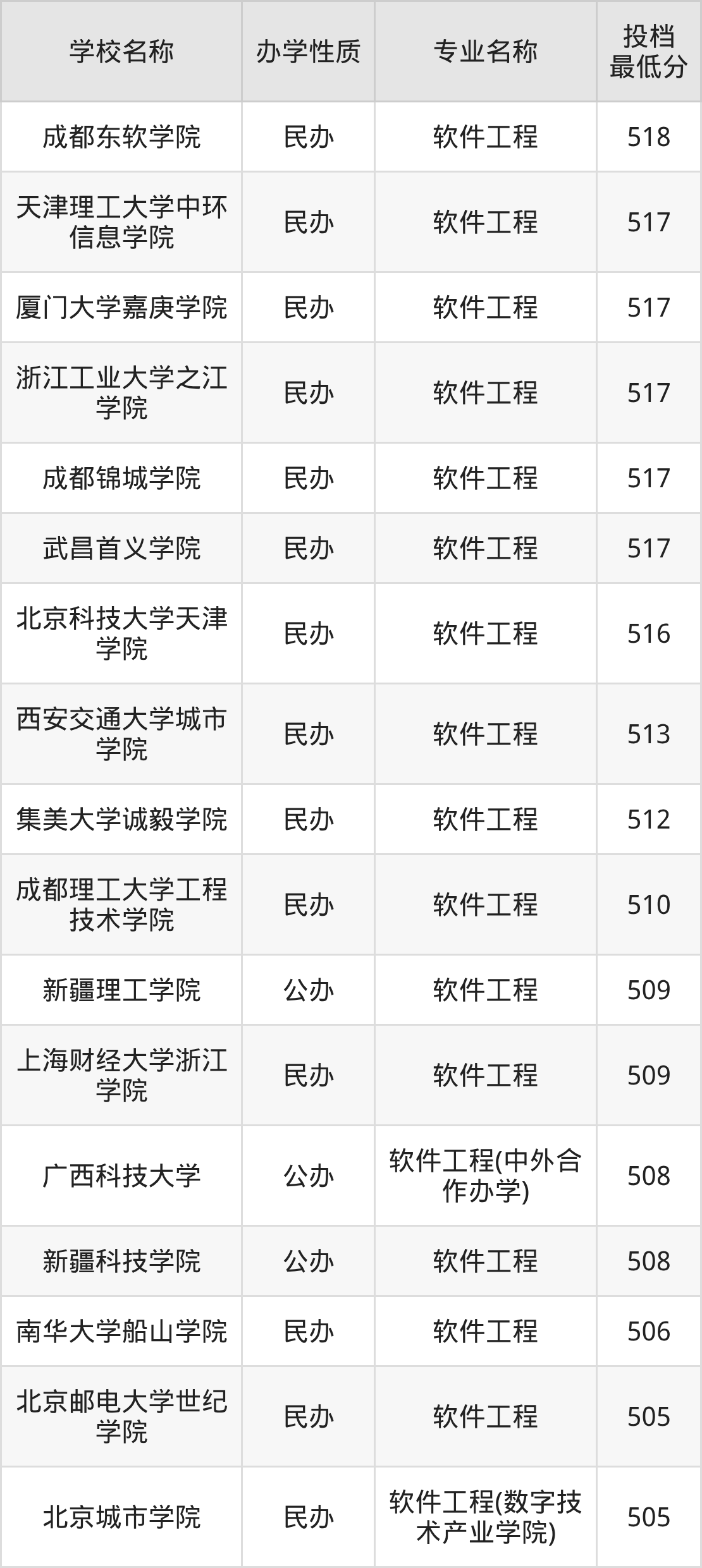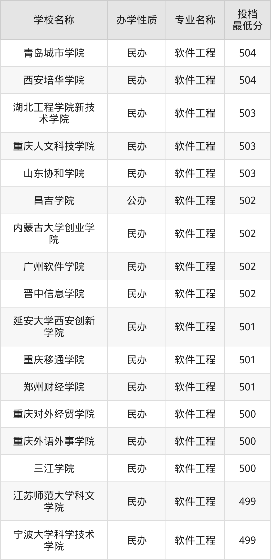500分左右的软件工程大学:郑州财经学院501分、重庆移通学院501分、延安大学西安创新学院501分、晋中信息学院502分、广州软件学院502分等;