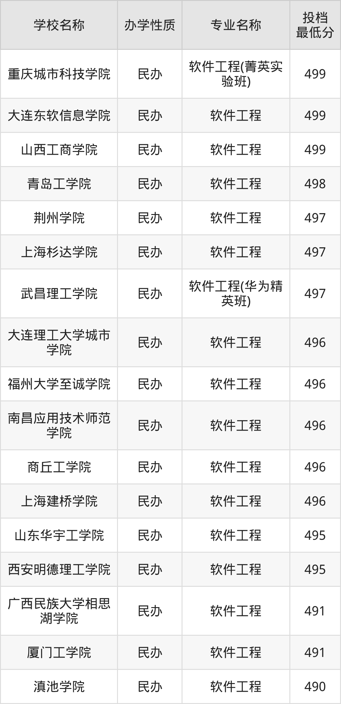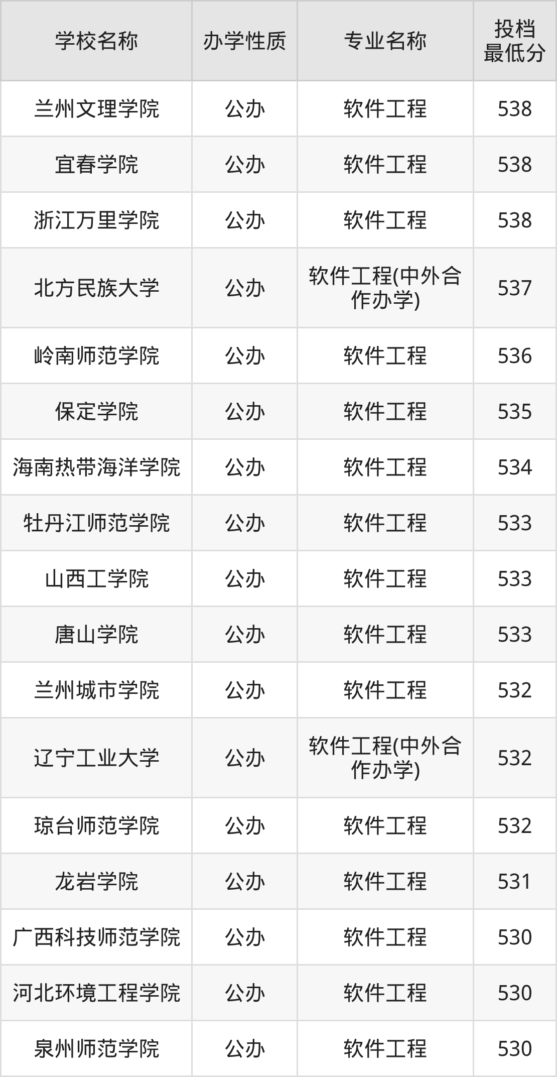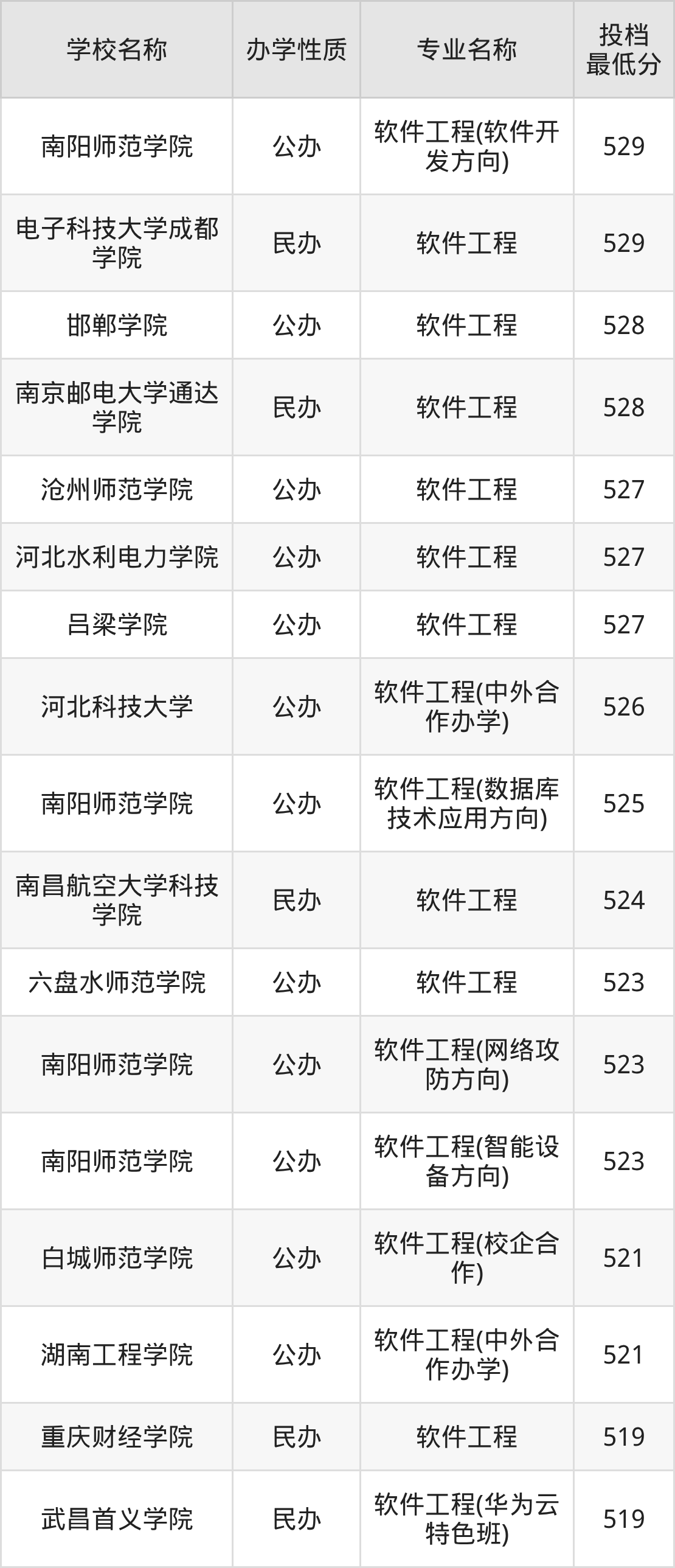 500分左右的软件工程大学:郑州财经学院501分、重庆移通学院501分、延安大学西安创新学院501分、晋中信息学院502分、广州软件学院502分等;