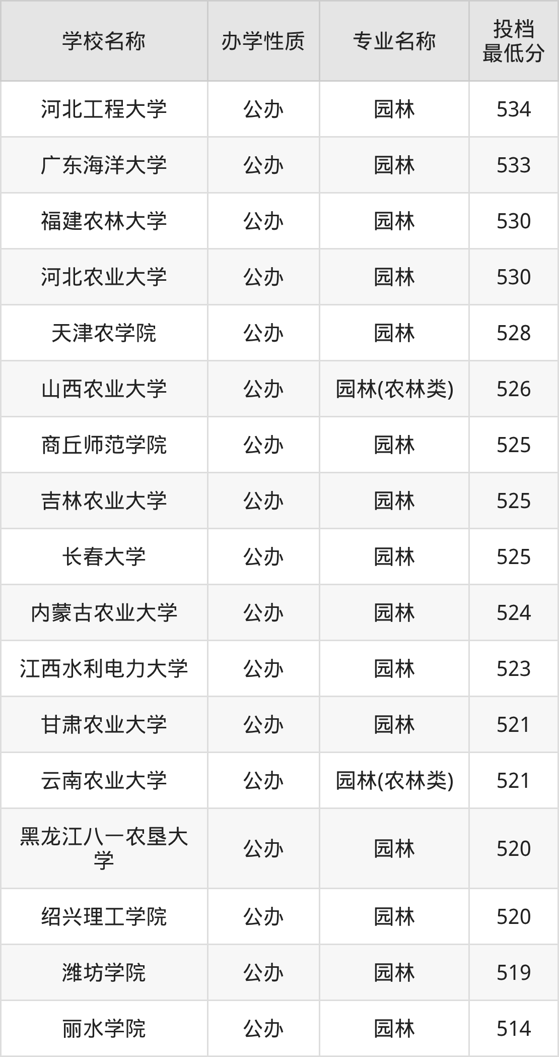 下面是2025年全国所有大学园林专业录取分数线一览表(按照分数线从高到低排名):