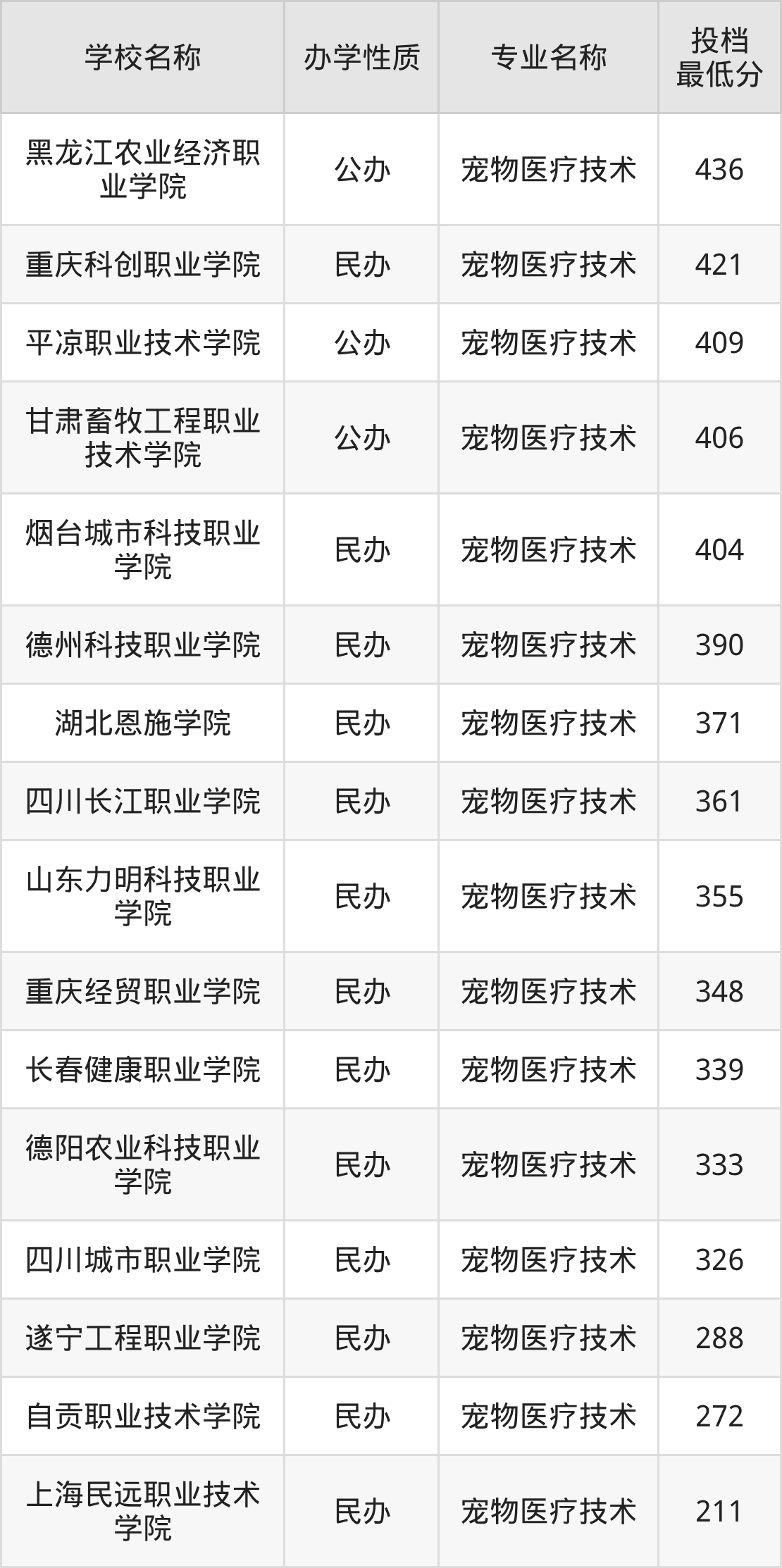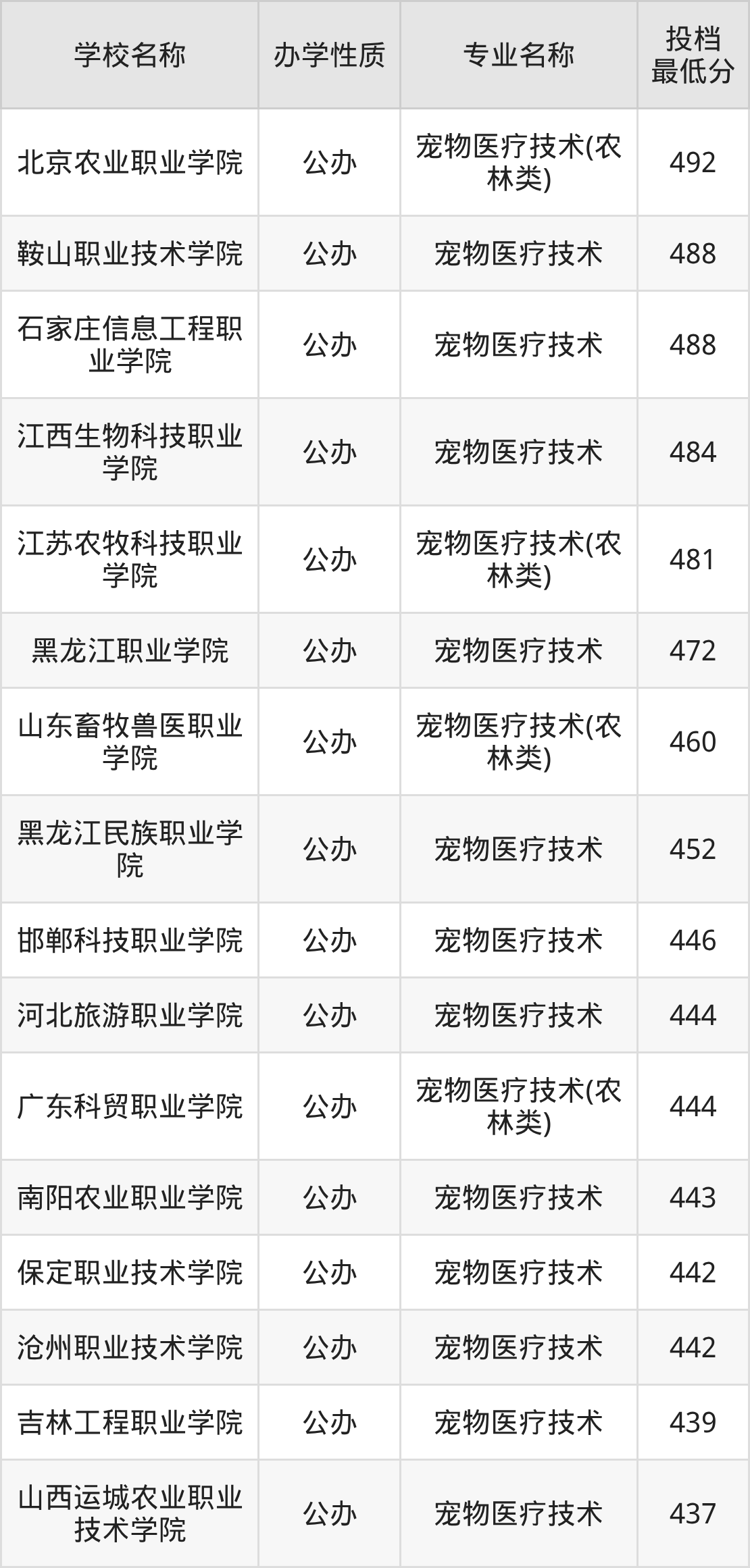 下面是2025年全国所有大学宠物医疗技术专业录取分数线一览表(按照分数线从高到低排名):