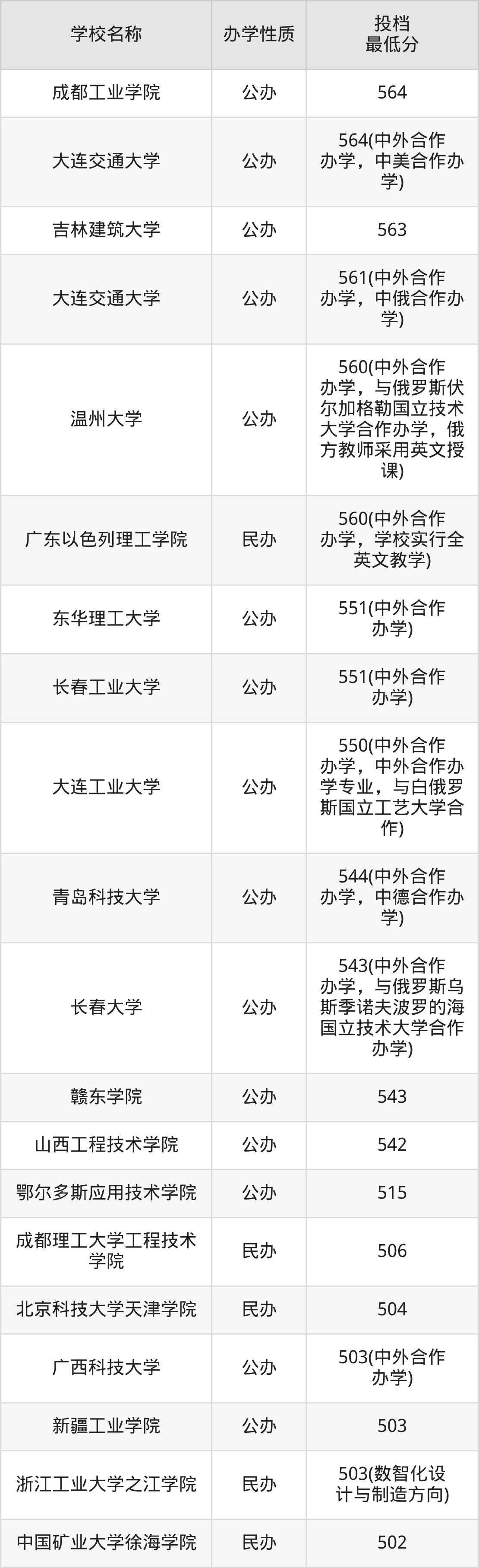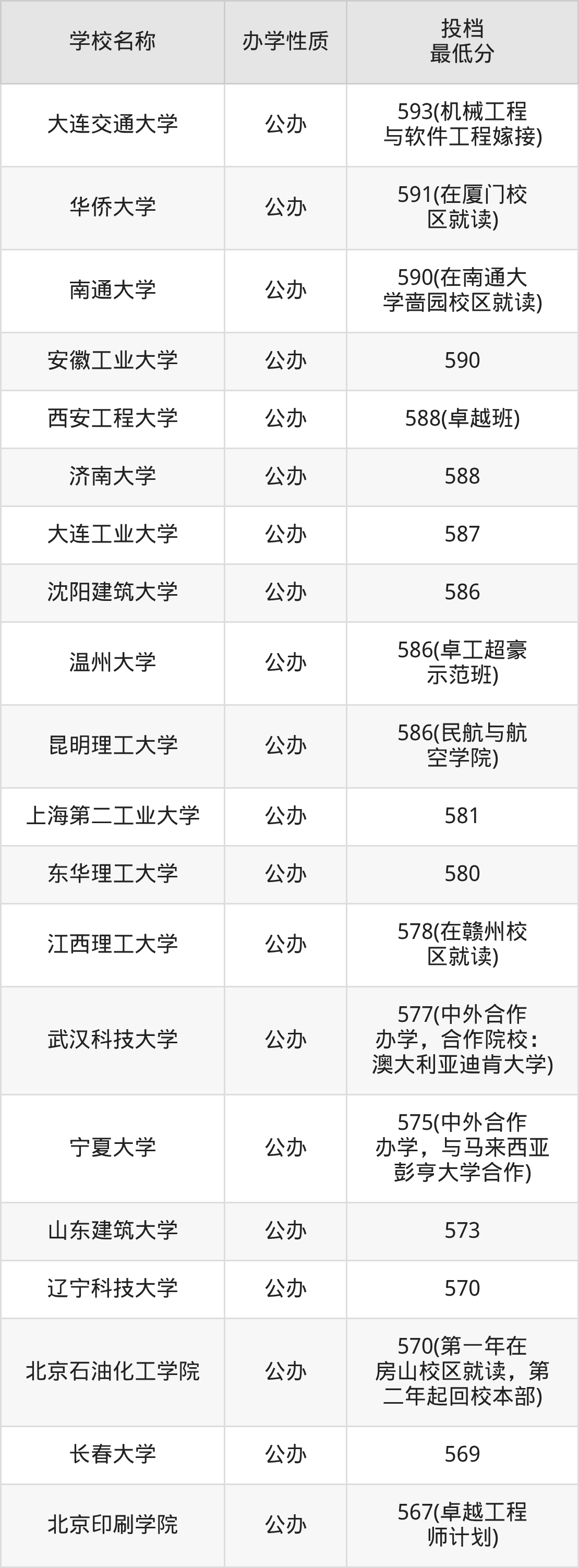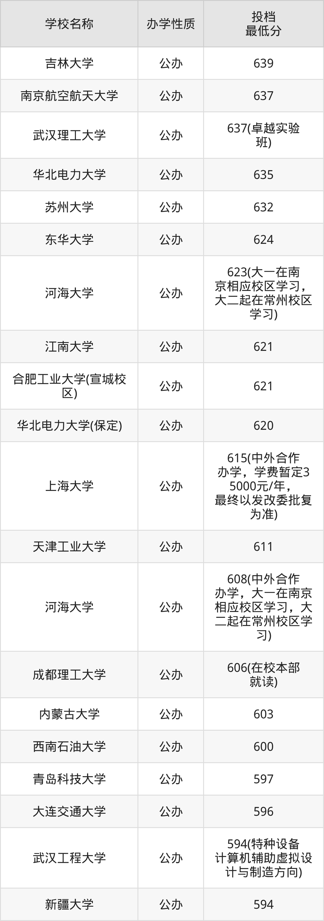 二、全国机械工程录取分数线排名表