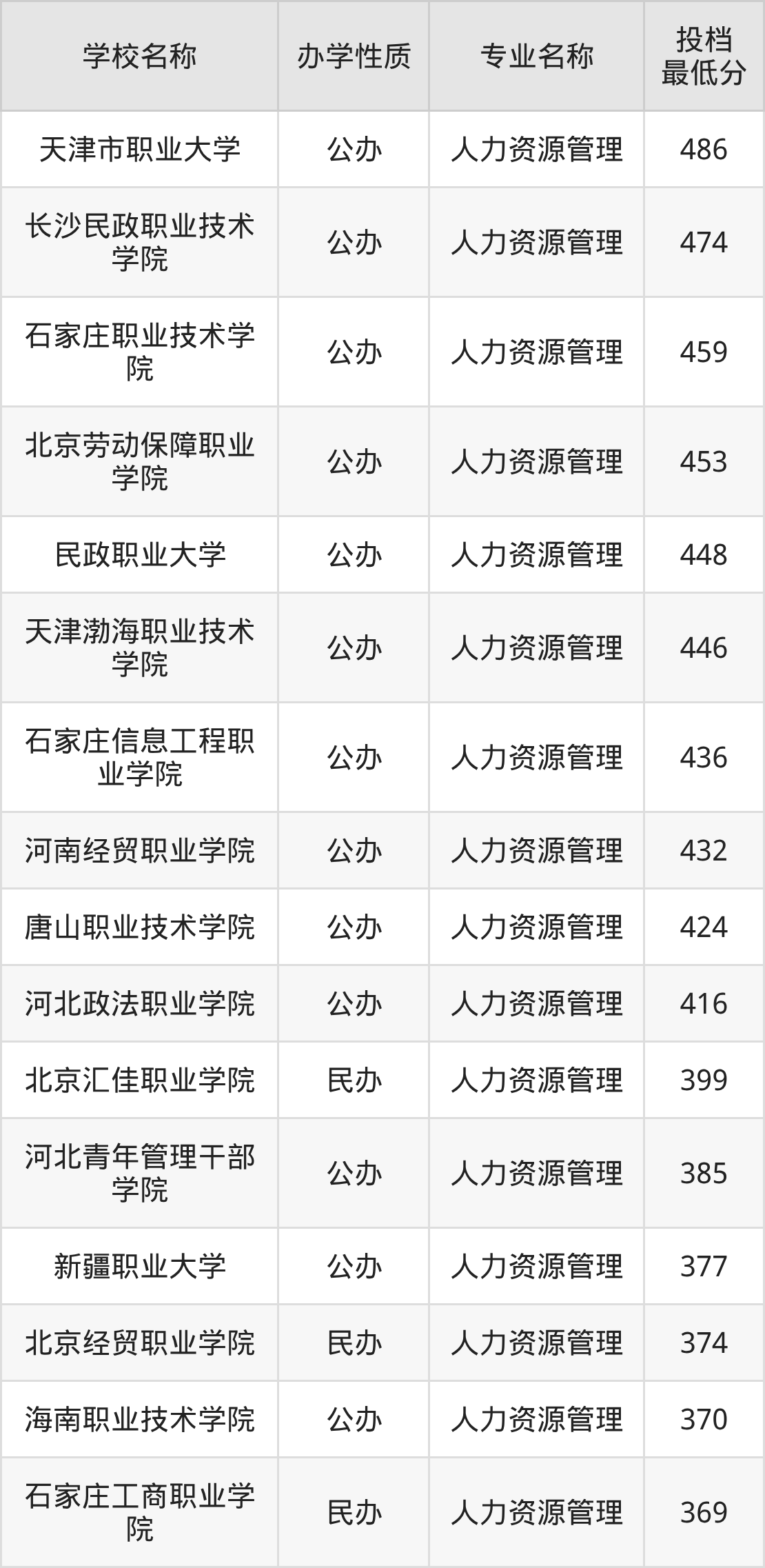 500分左右的人力资源管理大学有:天津市职业大学486分。