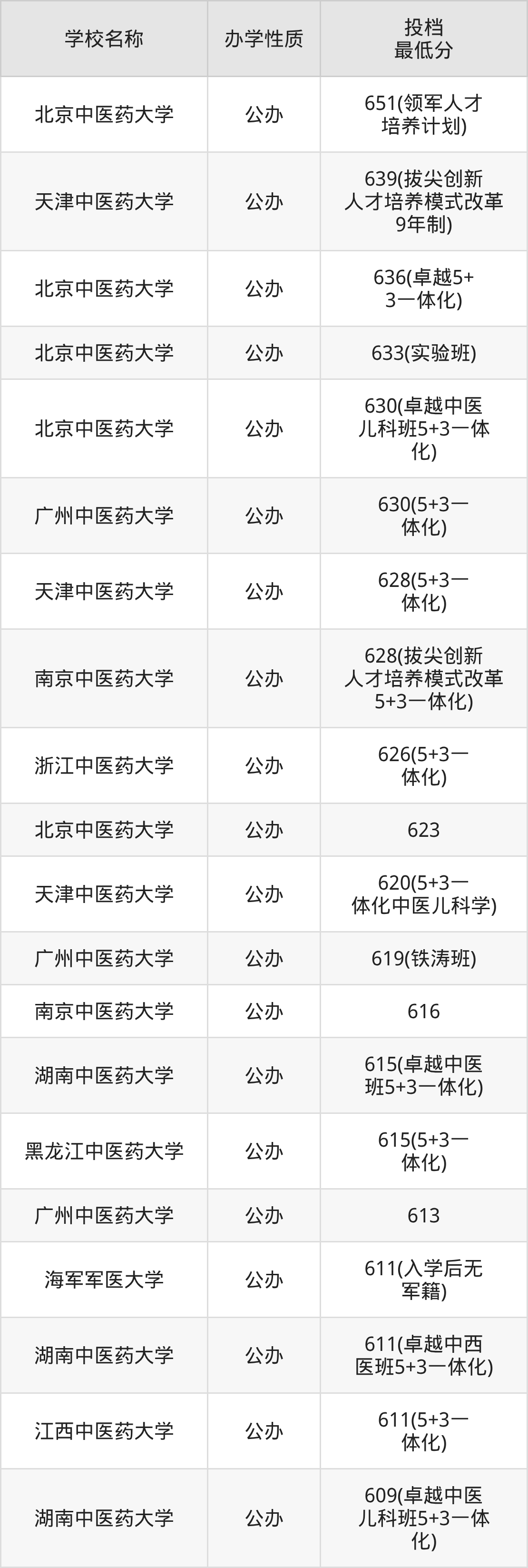 下面是2025年全国所有大学中医学专业录取分数线一览表(按照分数线从高到低排名):