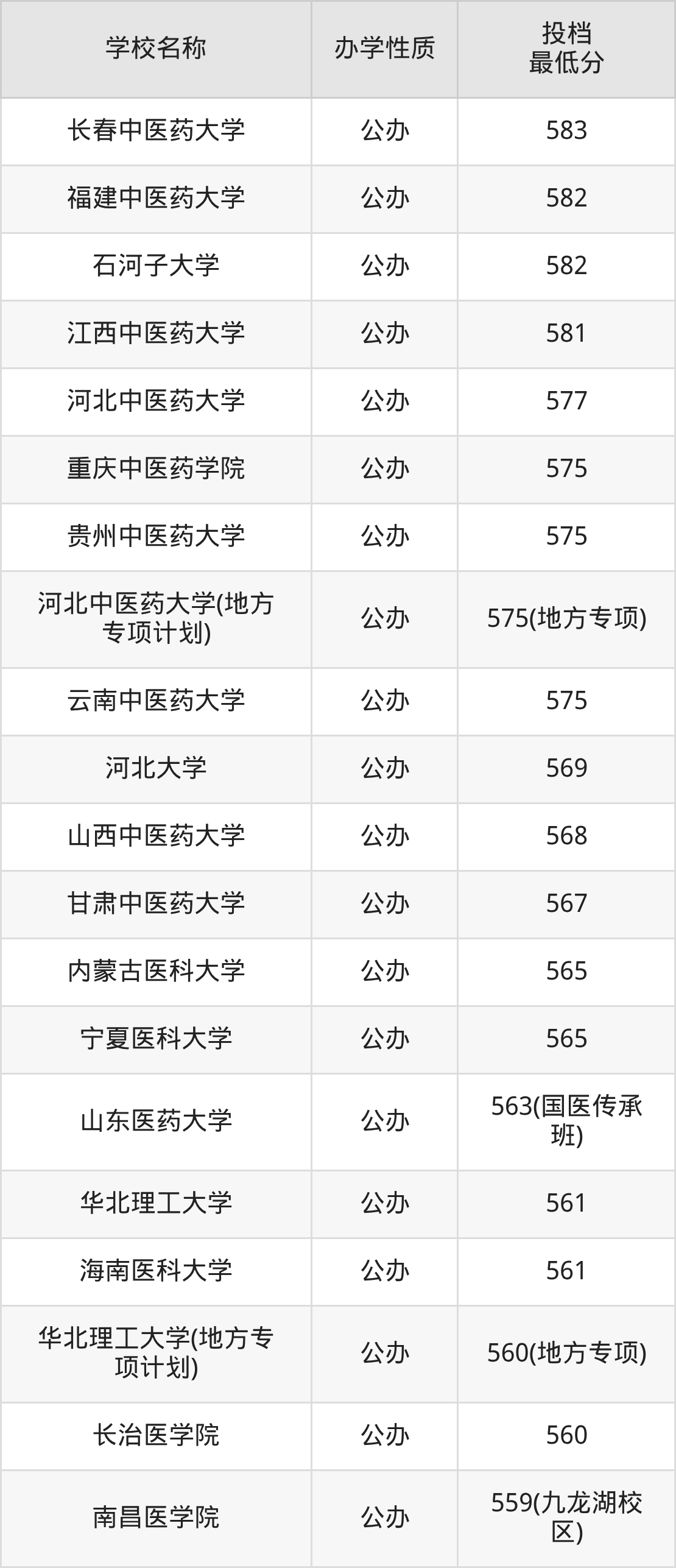 一、2025中医学专业录取分数线多少