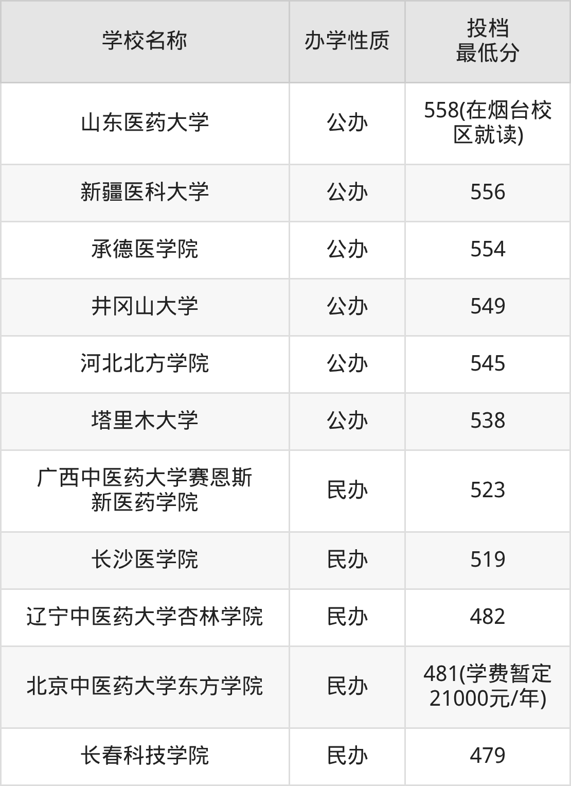 中医学专业收分最低的公办大学是塔里木大学,2025年最低分538分,超本科线112分。可见中医学专业的招生门槛是非常高的,如果想要上一所公办本科大学的中医学专业,至少需要过本科线112分及以上。