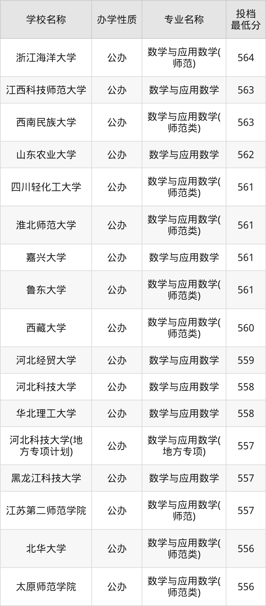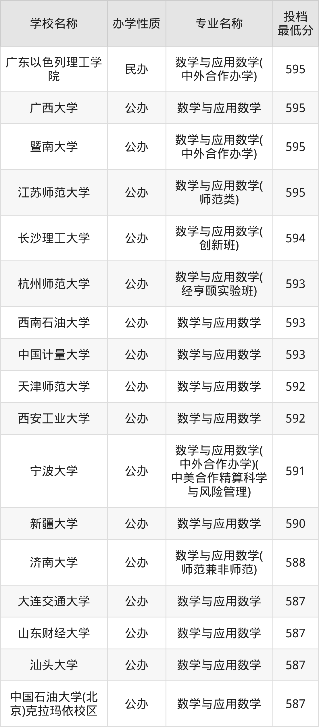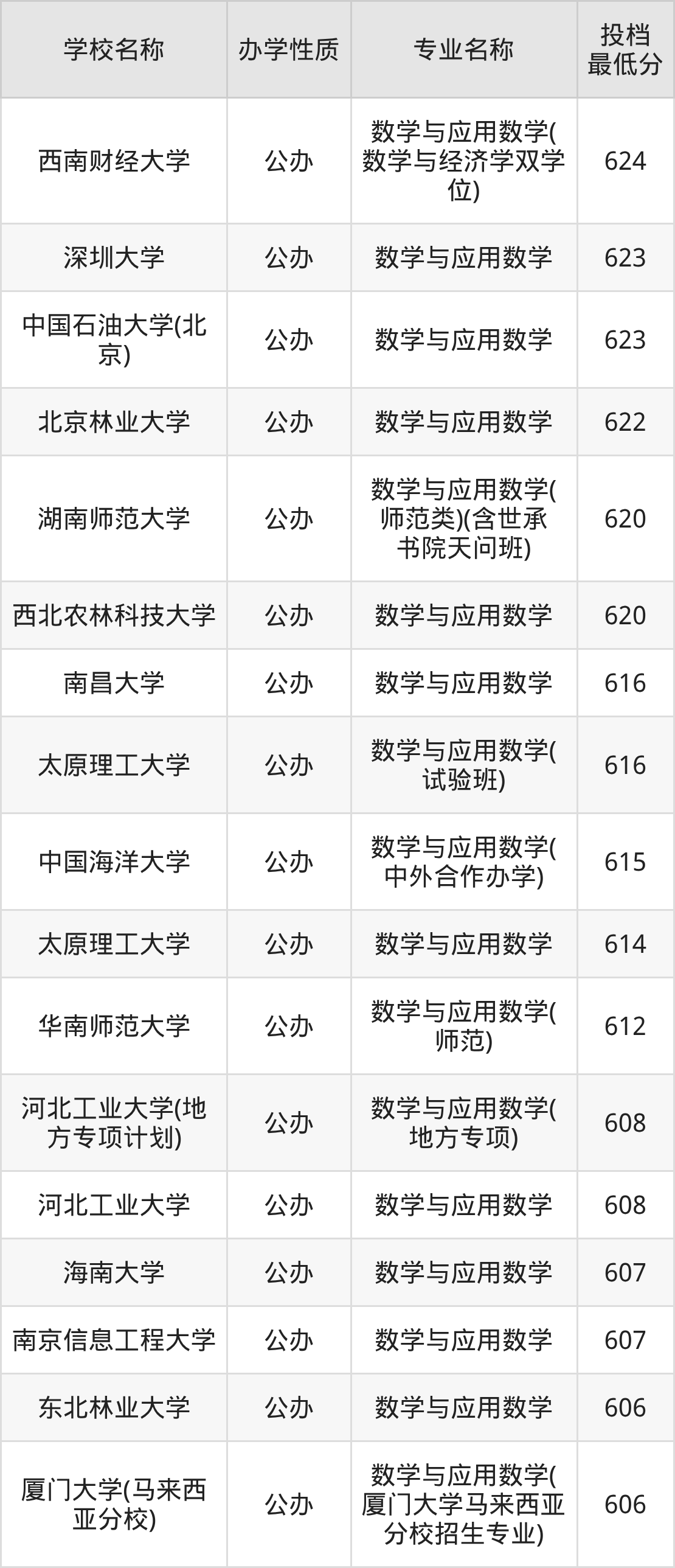 下面是全国各个大学数学与应用数学专业最低录取分数线排名一览表,考生可根据自己的分数情况选择合适的学校报考。