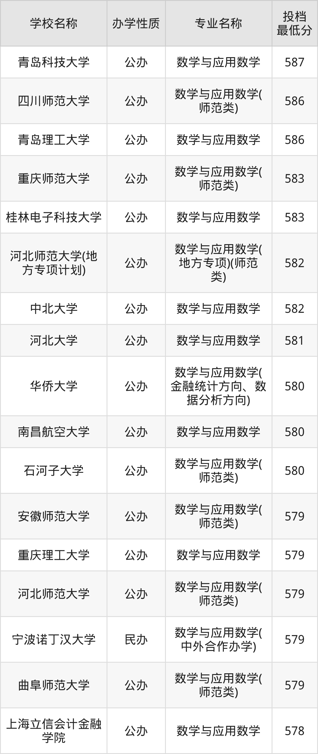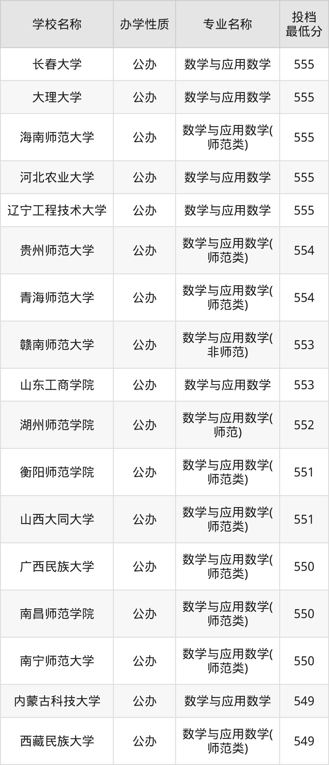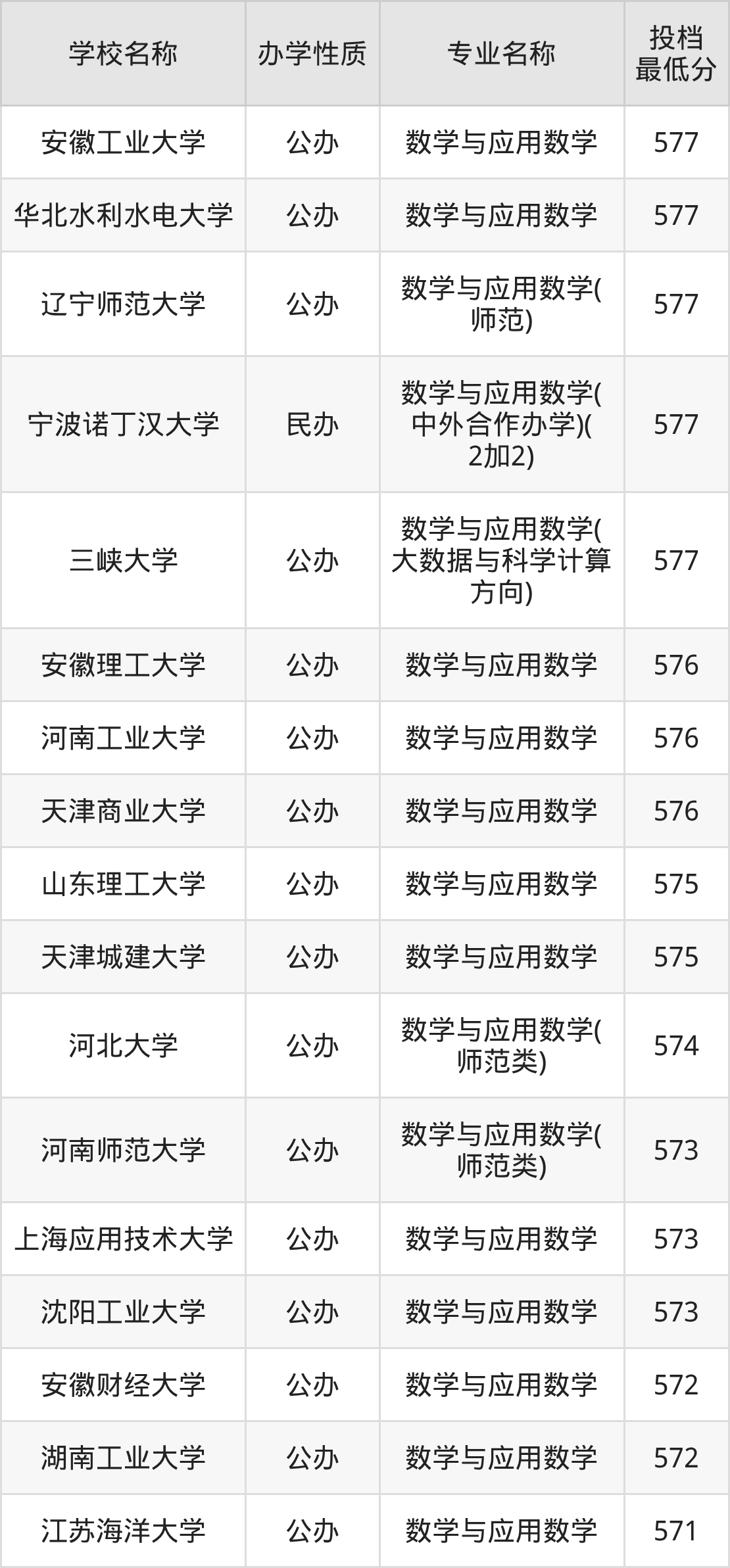 下面是全国各个大学数学与应用数学专业最低录取分数线排名一览表,考生可根据自己的分数情况选择合适的学校报考。