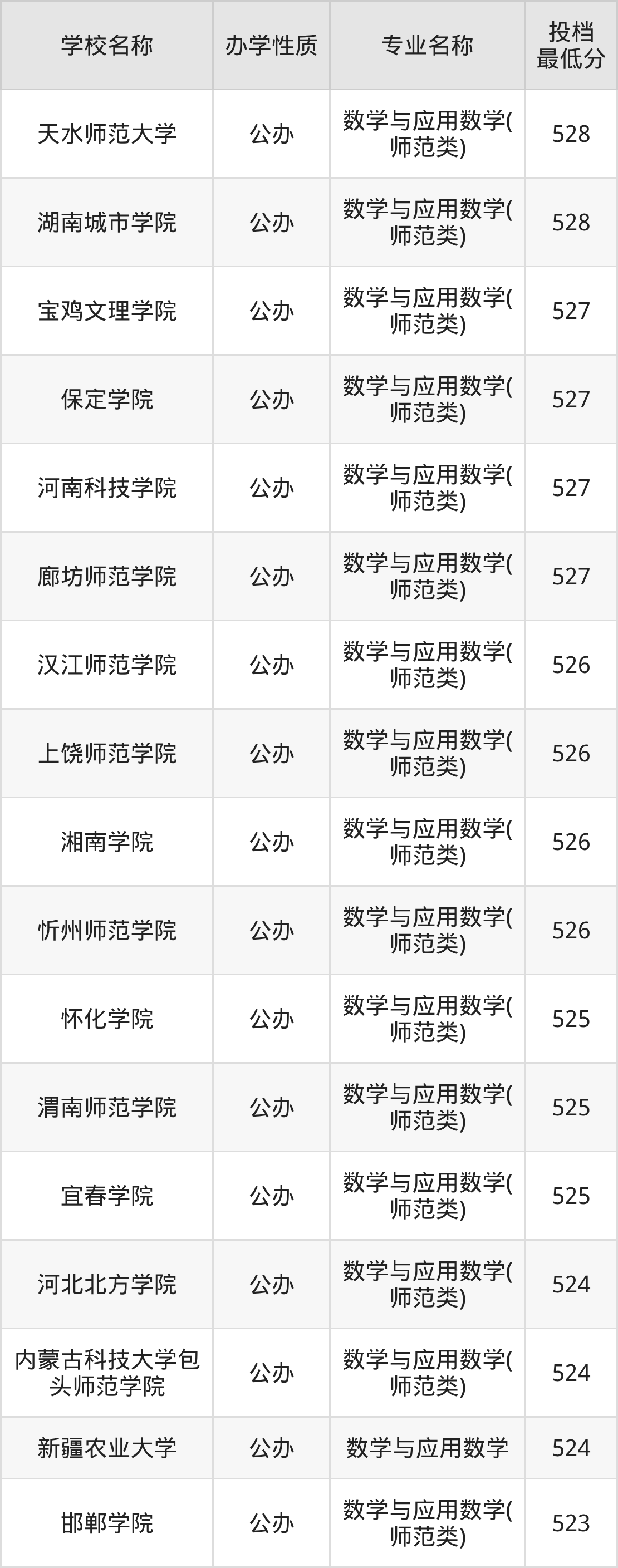 一般来说,数学与应用数学都需要470分以上才能被录取,当然分数线因省份、科类而不同。从河北省2025年的招录数据来看,2025年数学与应用数学专业最低分是472分,而河北省本科线是459分,意味着考生至少需超过本科线13分才能上。