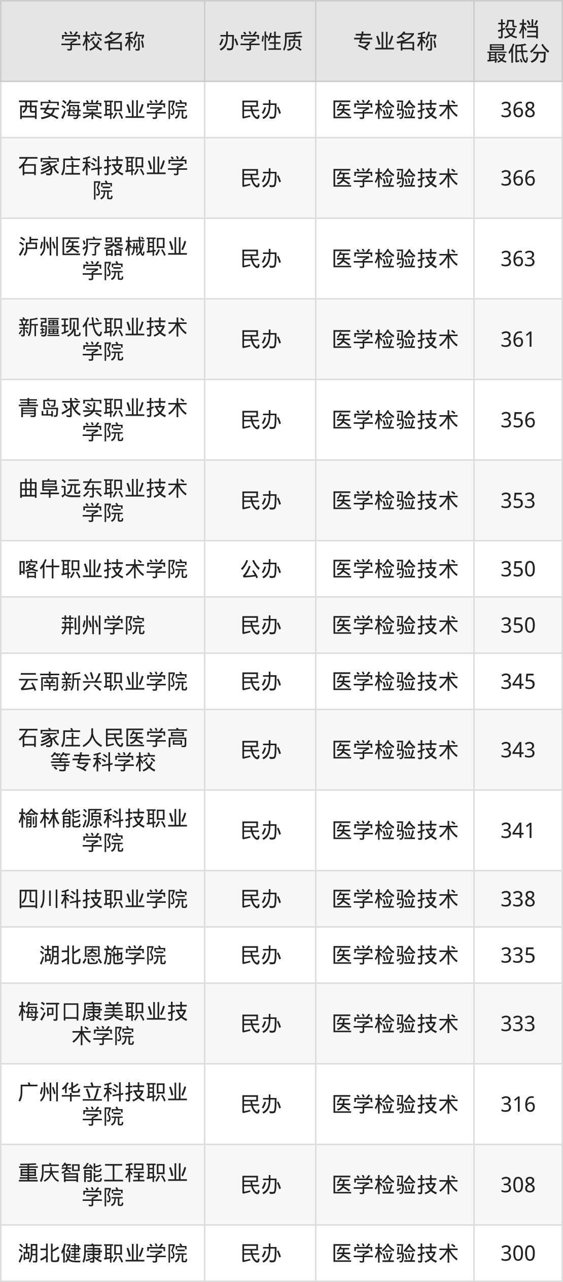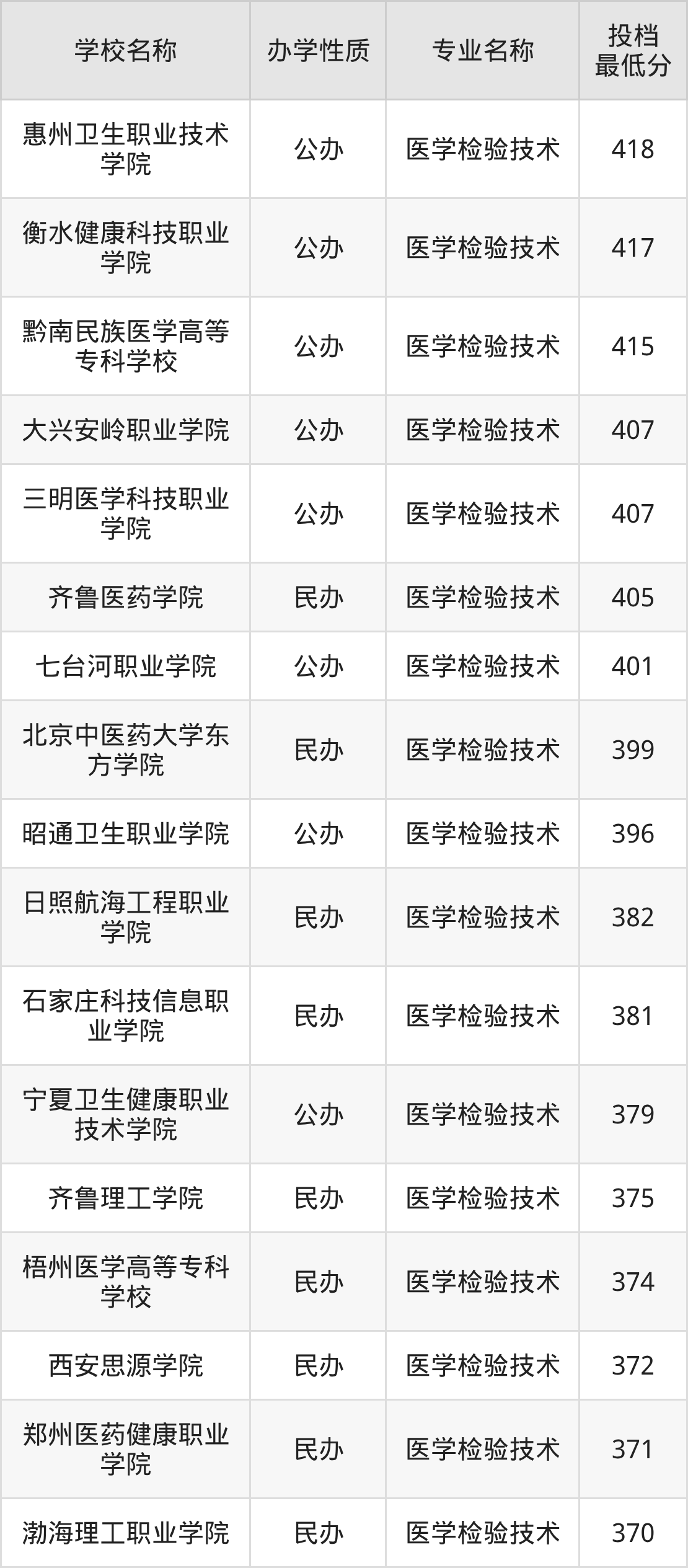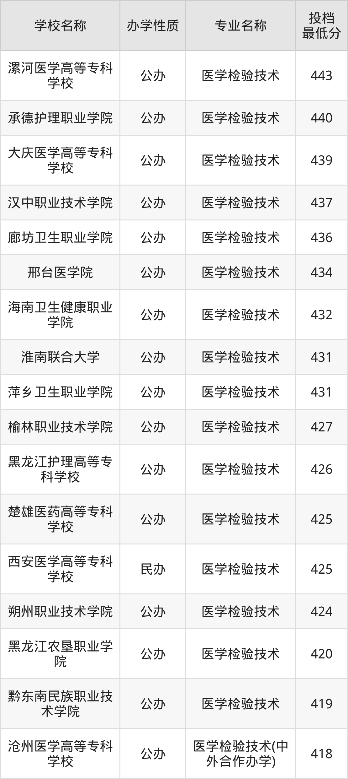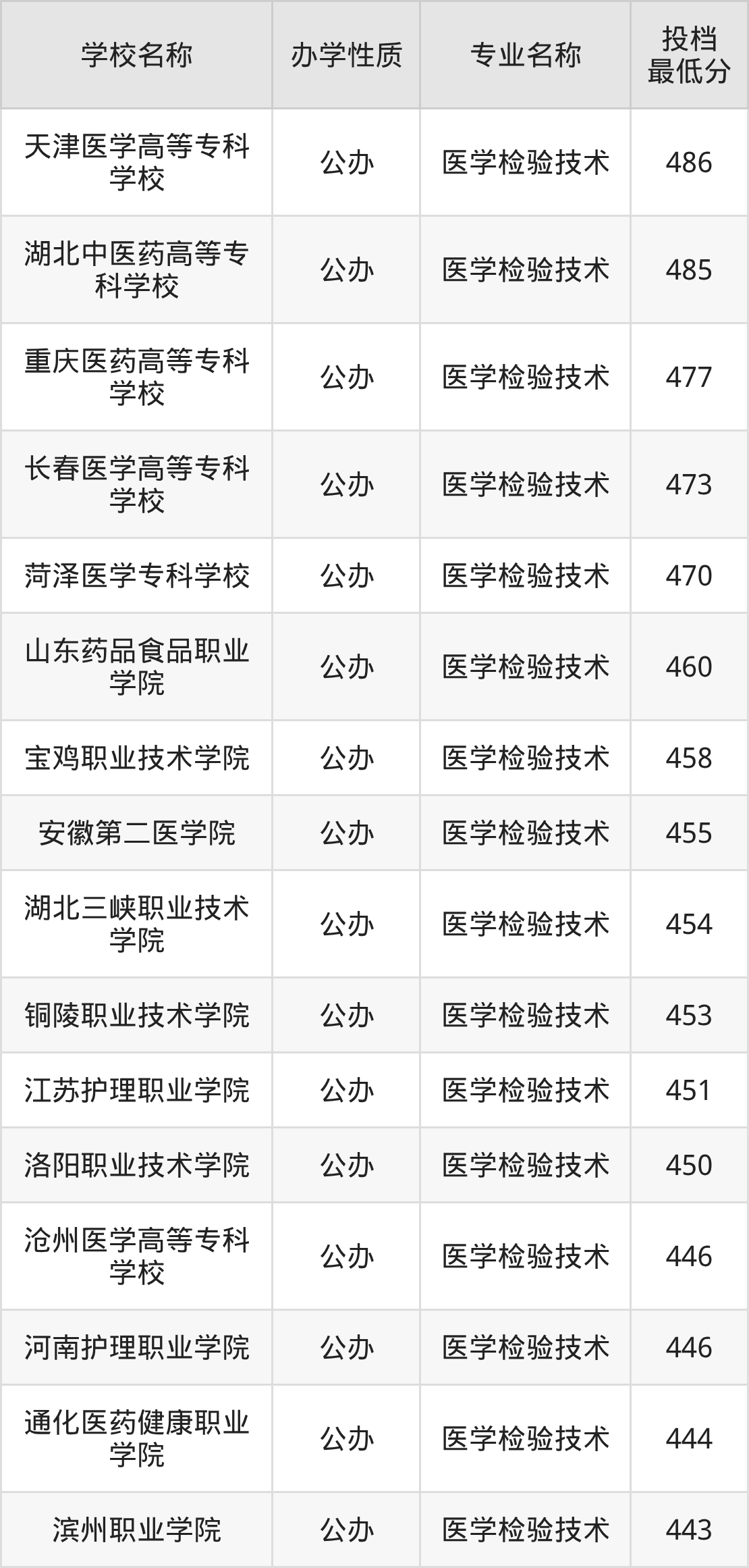 二、全国医学检验技术录取分数线排名表