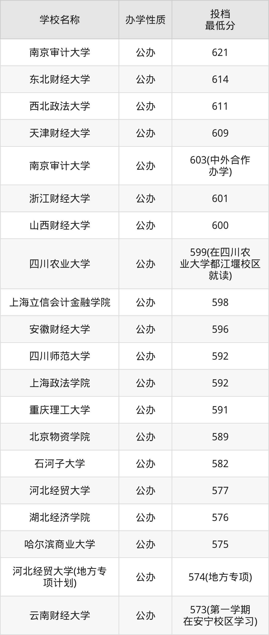 二、全国审计学录取分数线排名表
