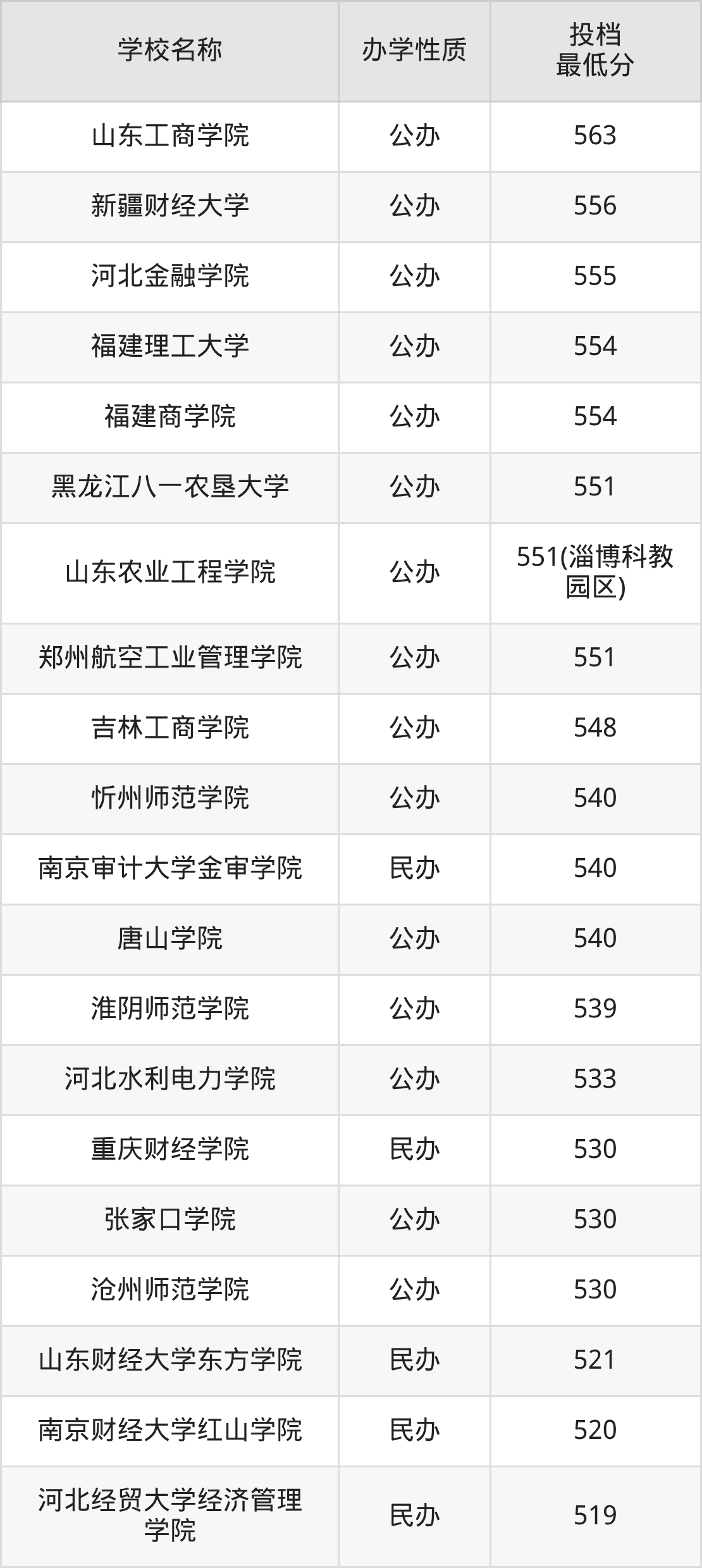 550分左右的审计学大学有:山东工商学院563分、新疆财经大学556分、河北金融学院555分、福建理工大学554分、福建商学院554分。