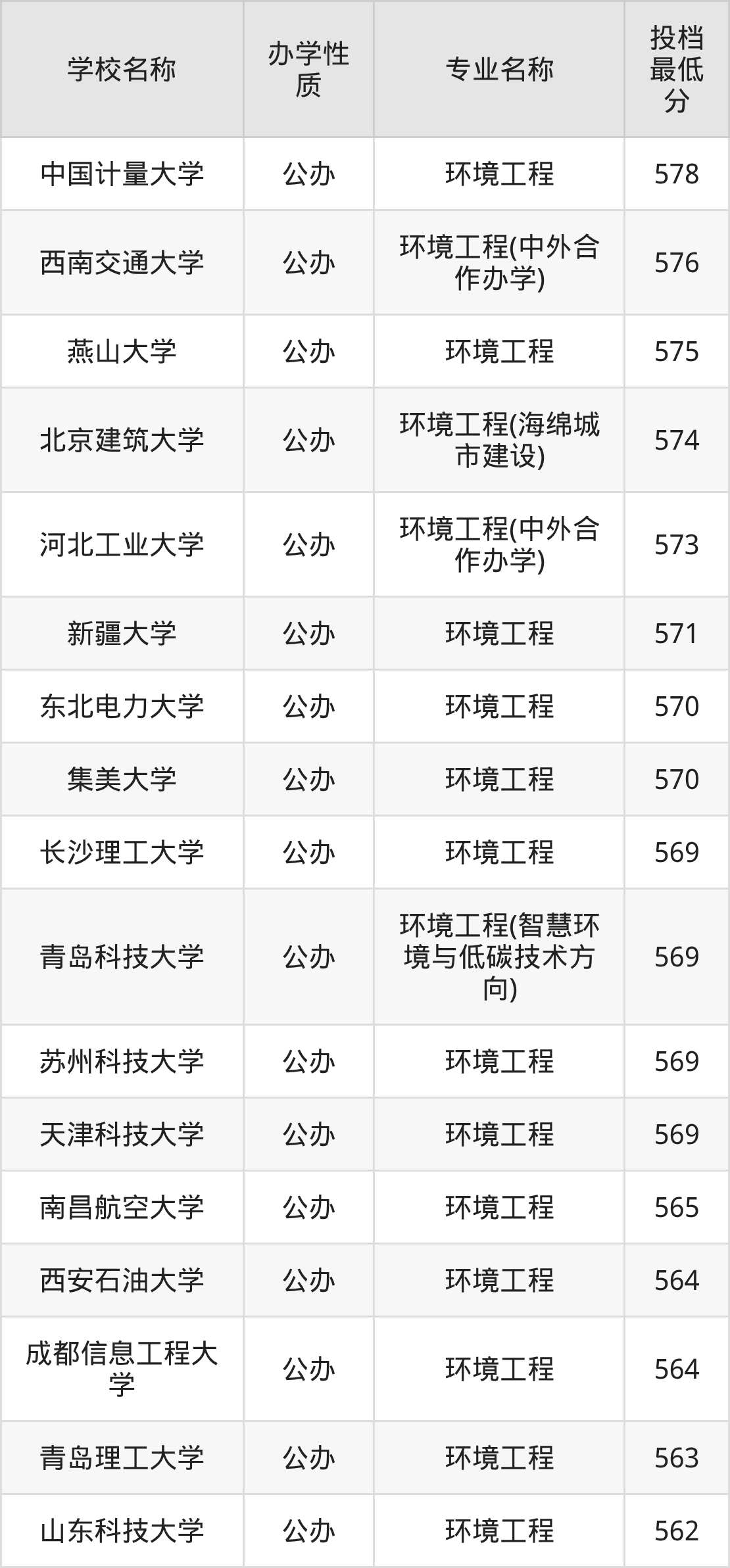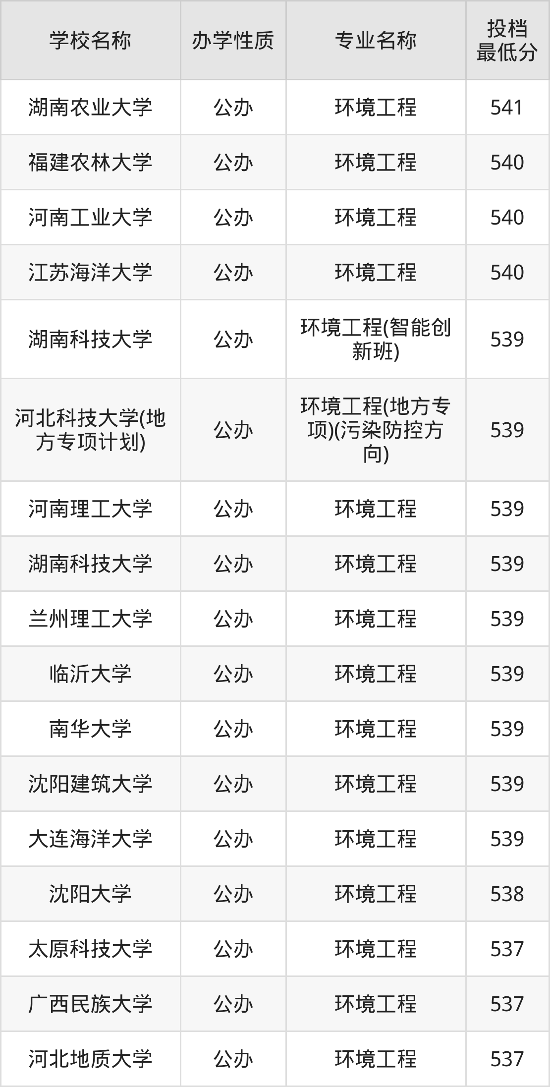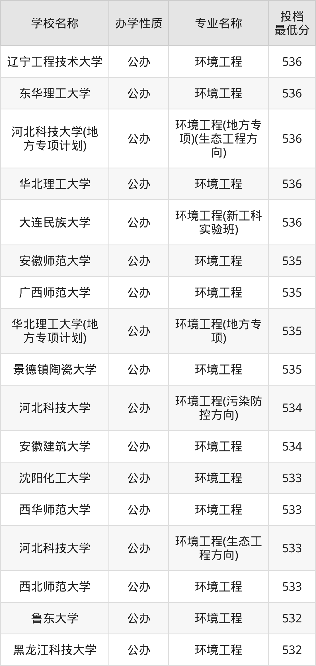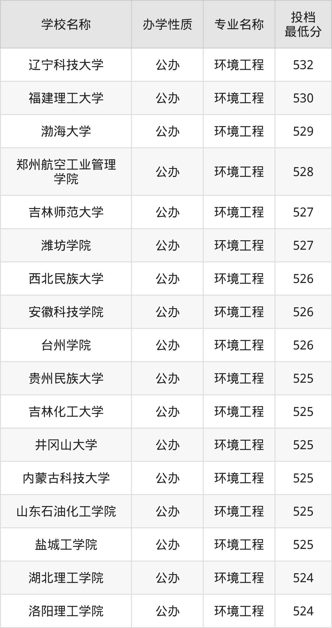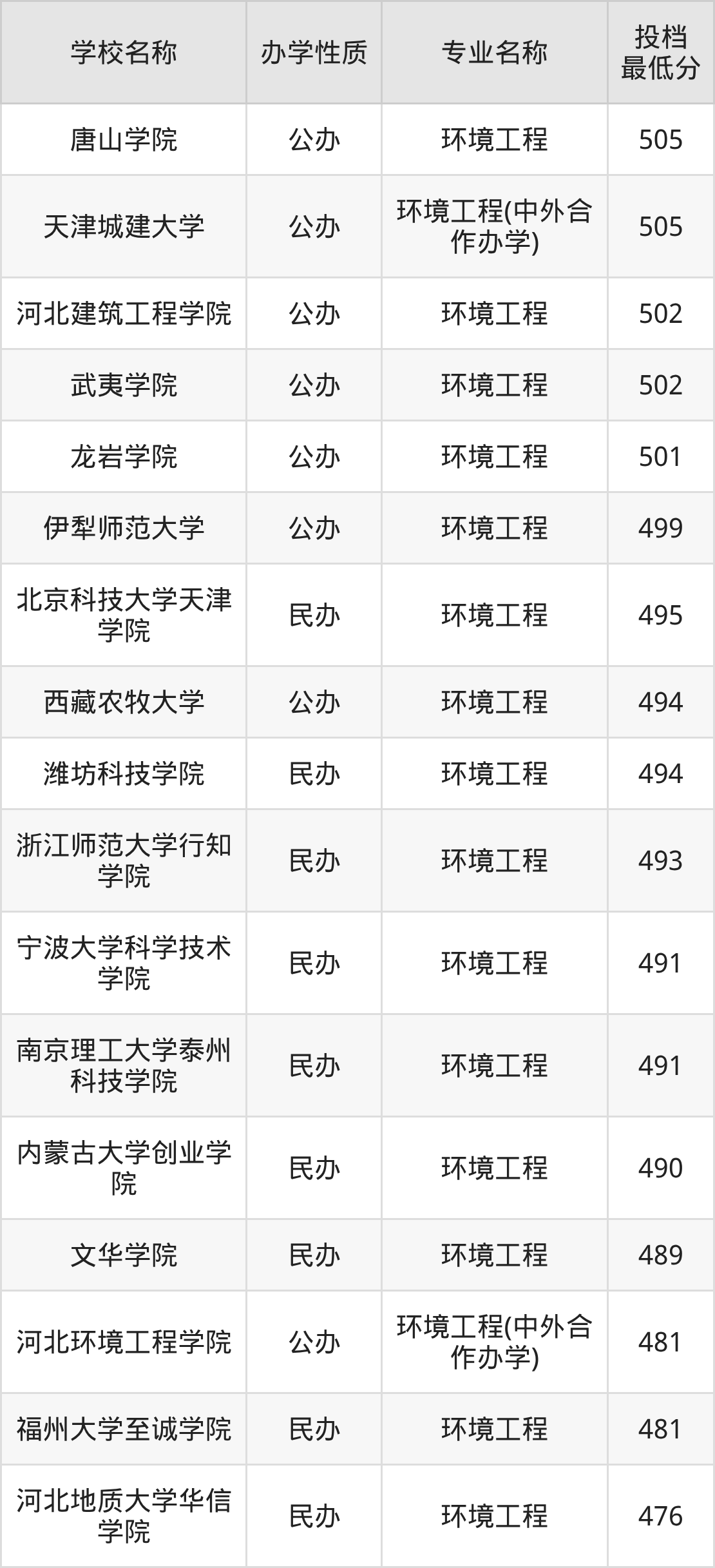 分数线最低、最好考的是宁夏理工学院,学校环境工程最低分是460,超本科线1分,不过这所学校是民办性质。2025公办大学最低分是481,收分最低的学校是河北环境工程学院,超本科线22分能上。
