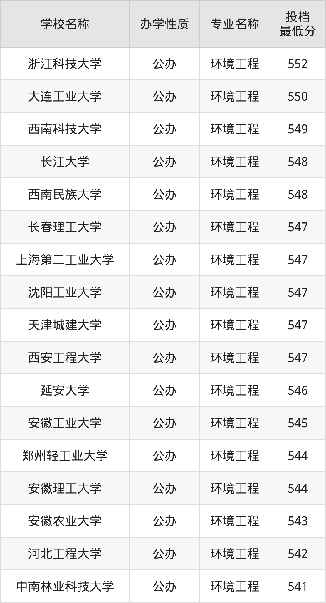 下面是全国各个大学环境工程专业最低录取分数线排名一览表,考生可根据自己的分数情况选择合适的学校报考。