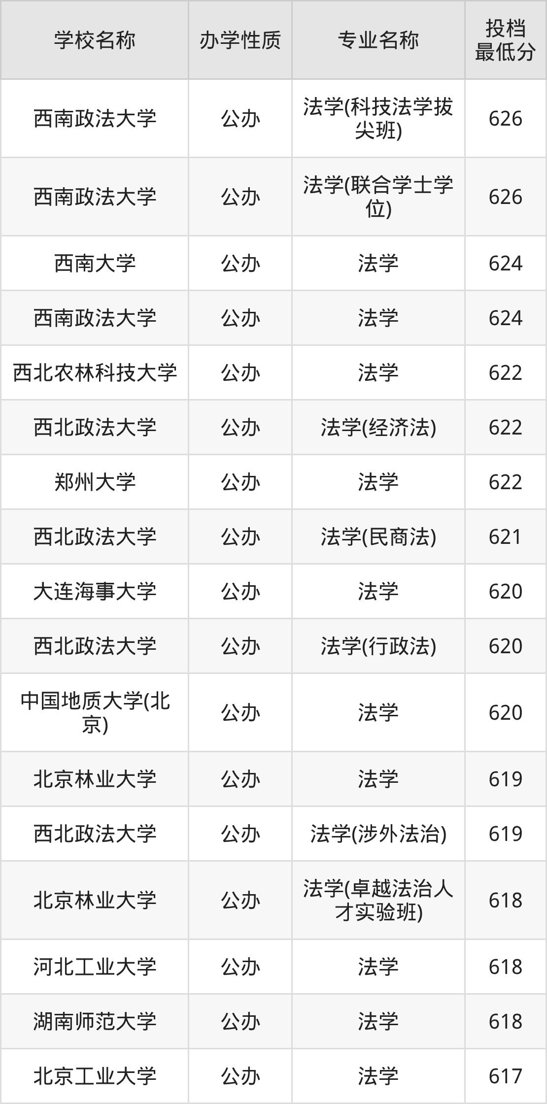 | 西北政法大学 | A | 13 |