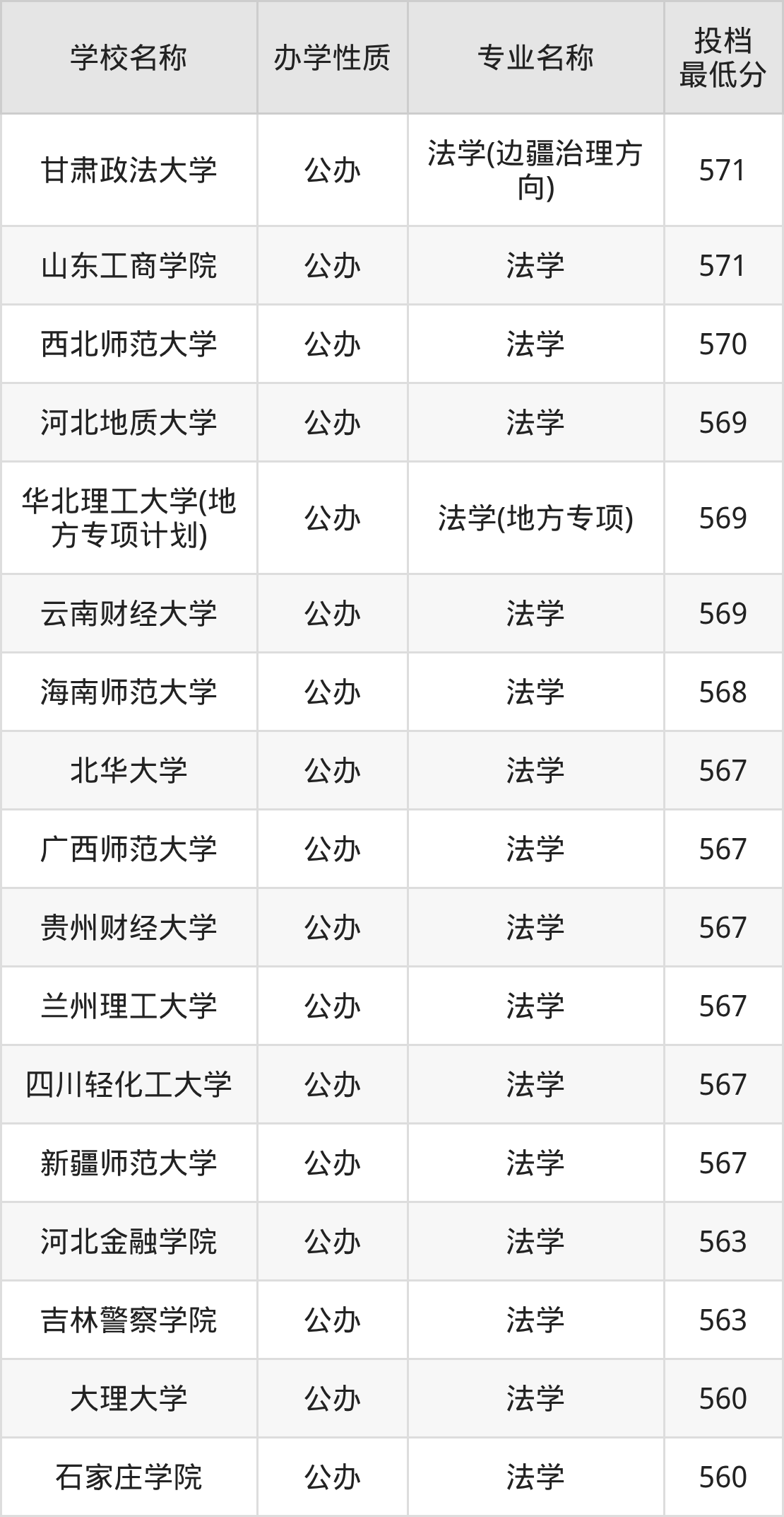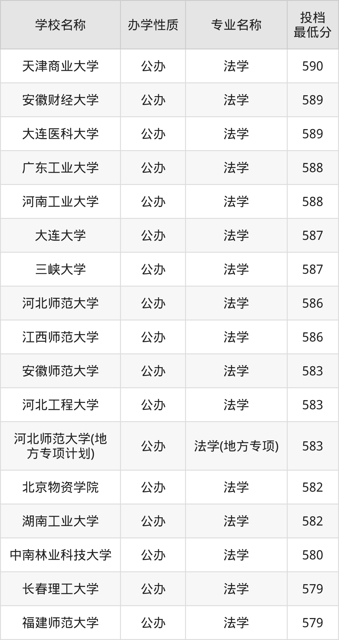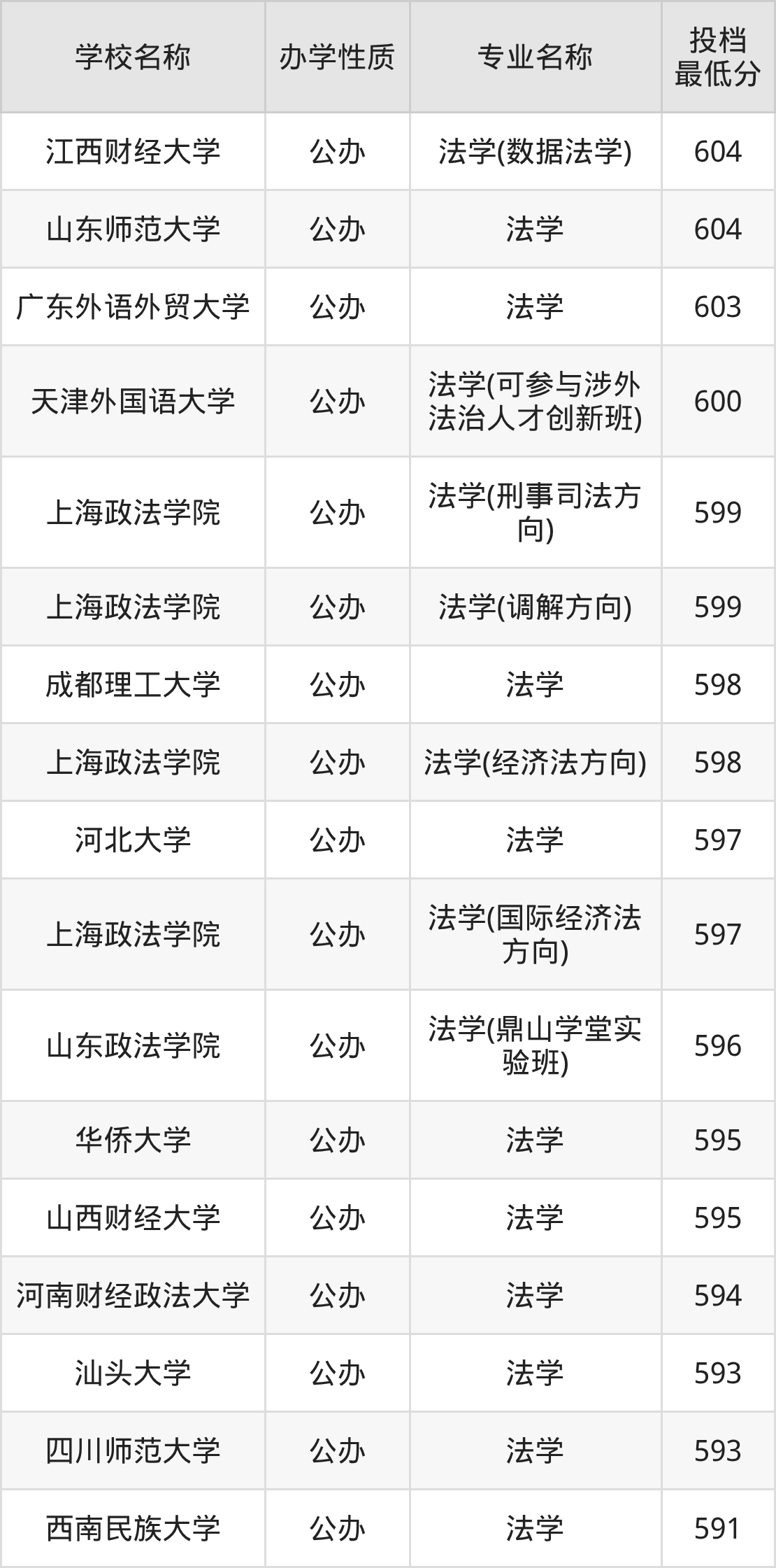 一、2025法学专业录取分数线多少