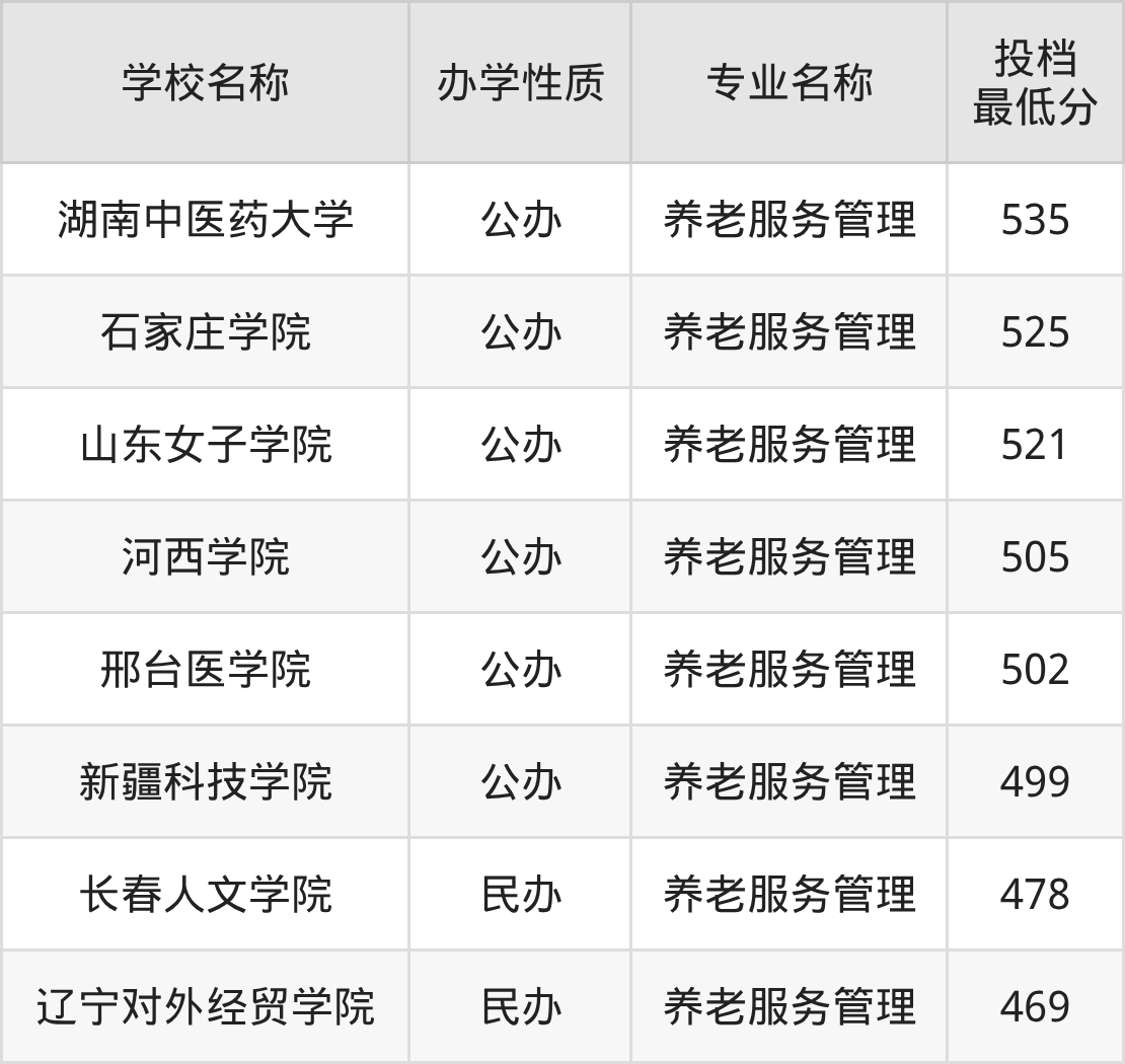 一般来说,养老服务管理都需要470分以上才能被录取,当然分数线因省份、科类而不同。从河北省2025年的招录数据来看,2025年养老服务管理专业最低分是469分,而河北省本科线是459分,意味着考生至少需超过本科线10分才能上。
