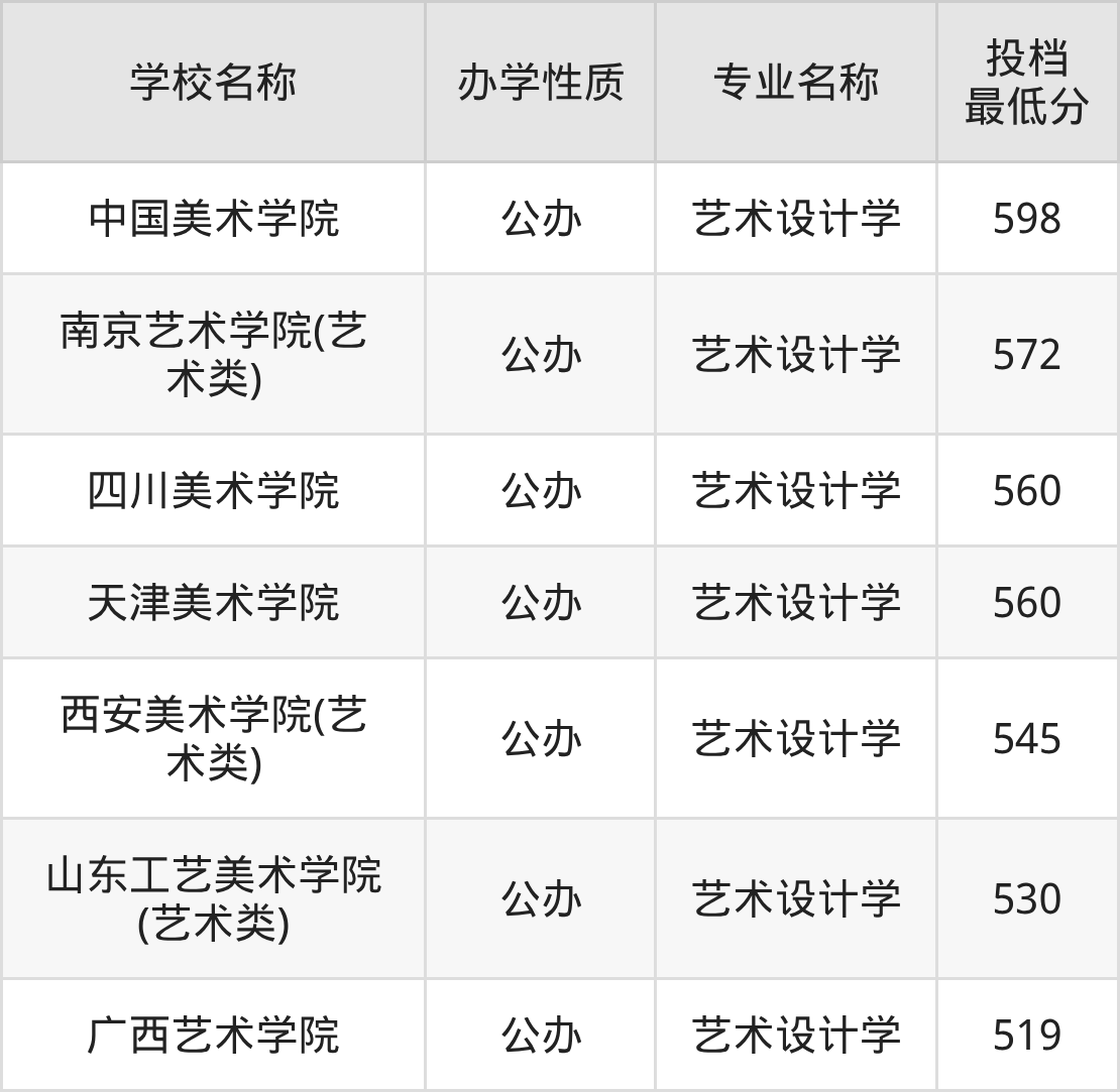 下面是2025年全国所有大学艺术设计学专业录取分数线一览表(按照分数线从高到低排名):