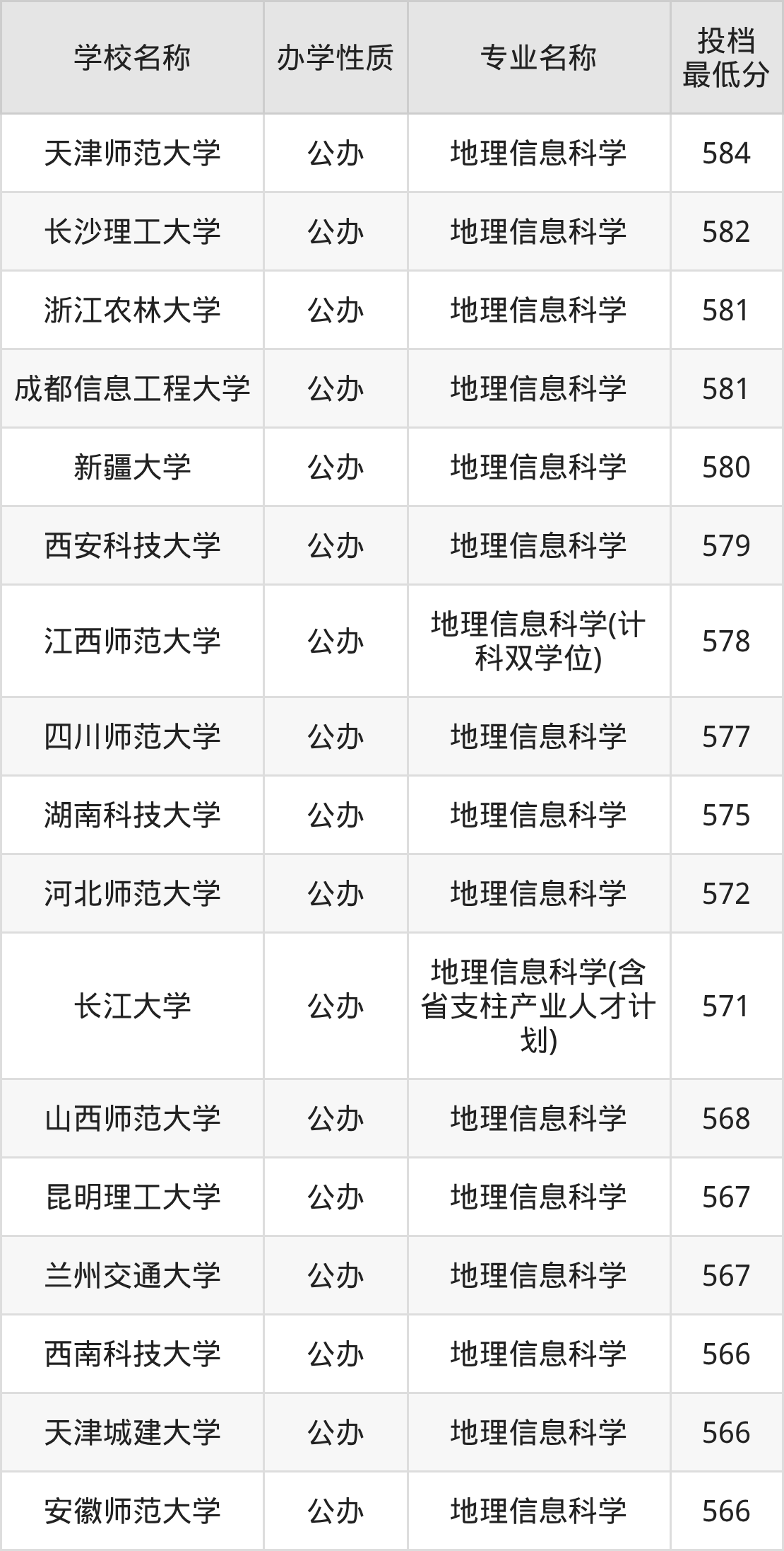 下面是2025年全国所有大学地理信息科学专业录取分数线一览表(按照分数线从高到低排名):