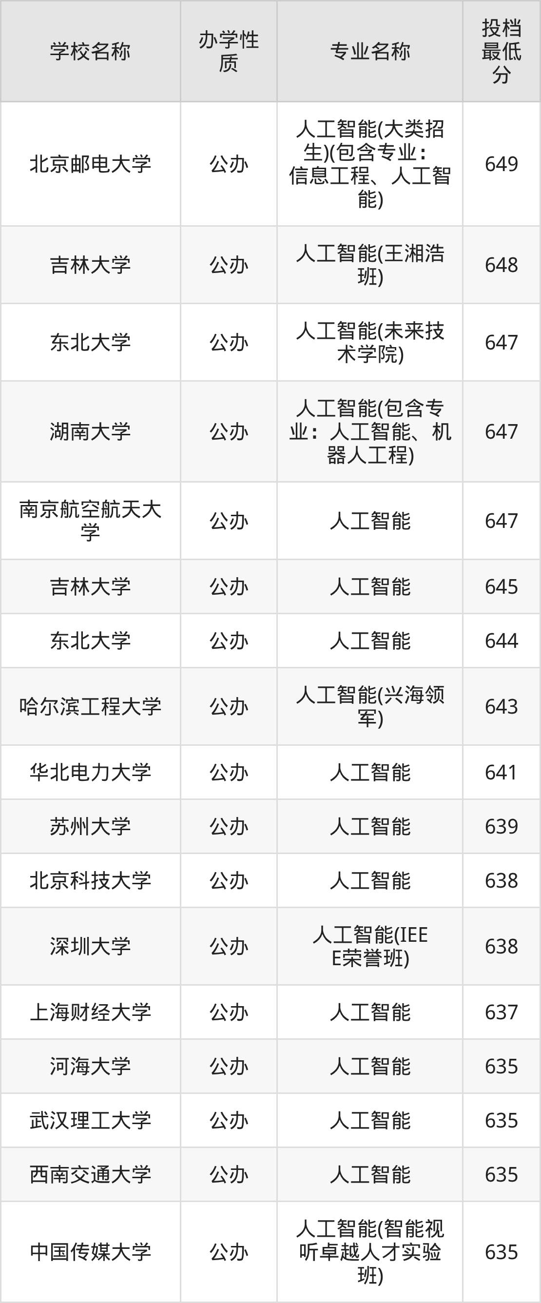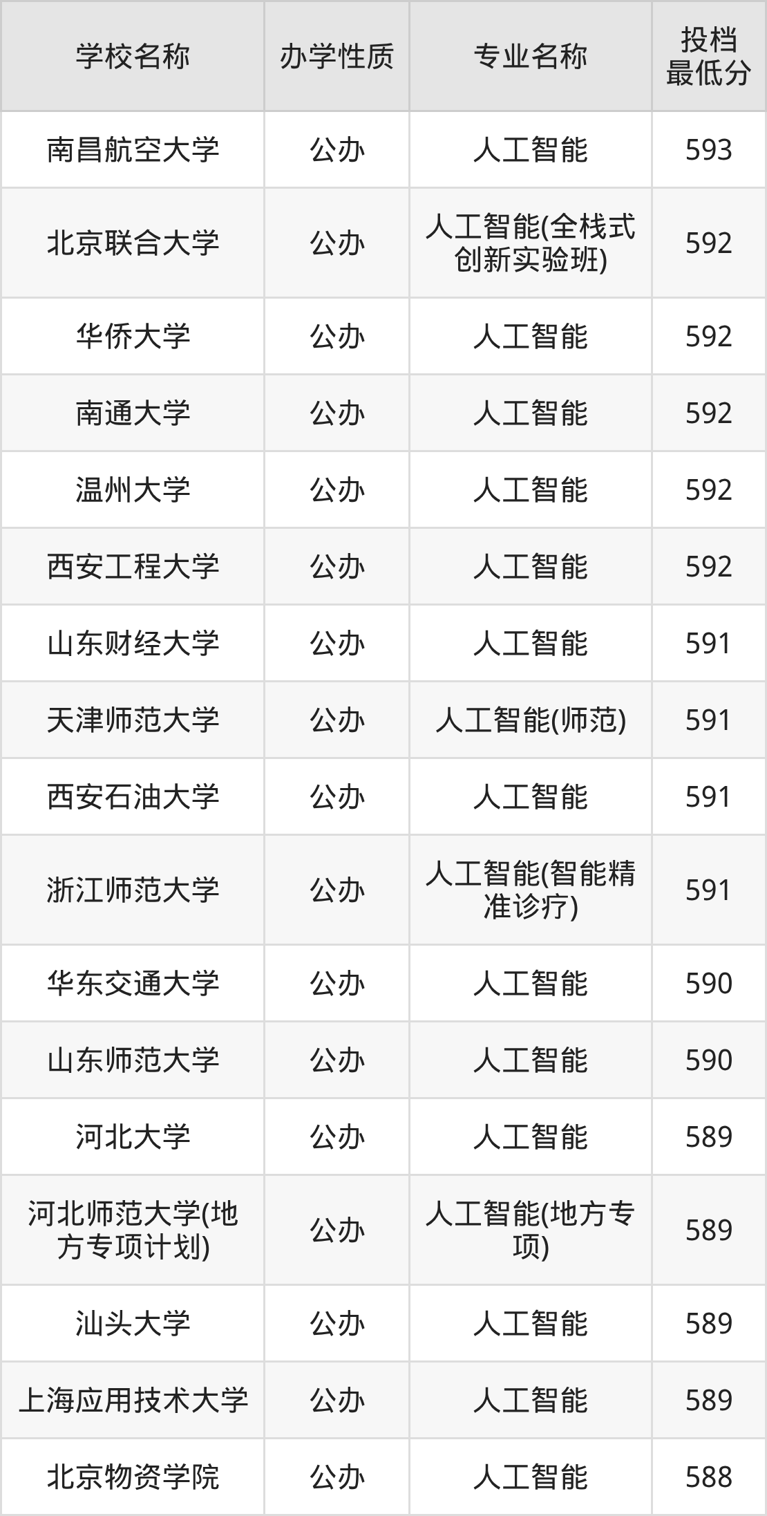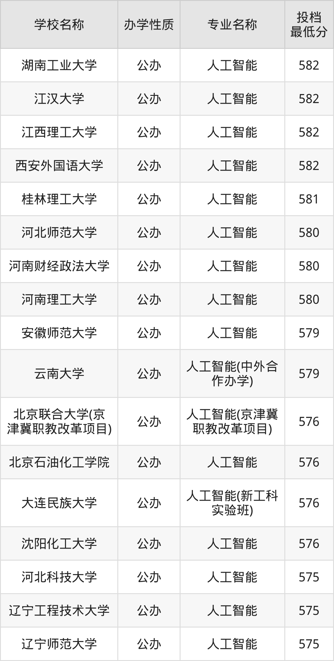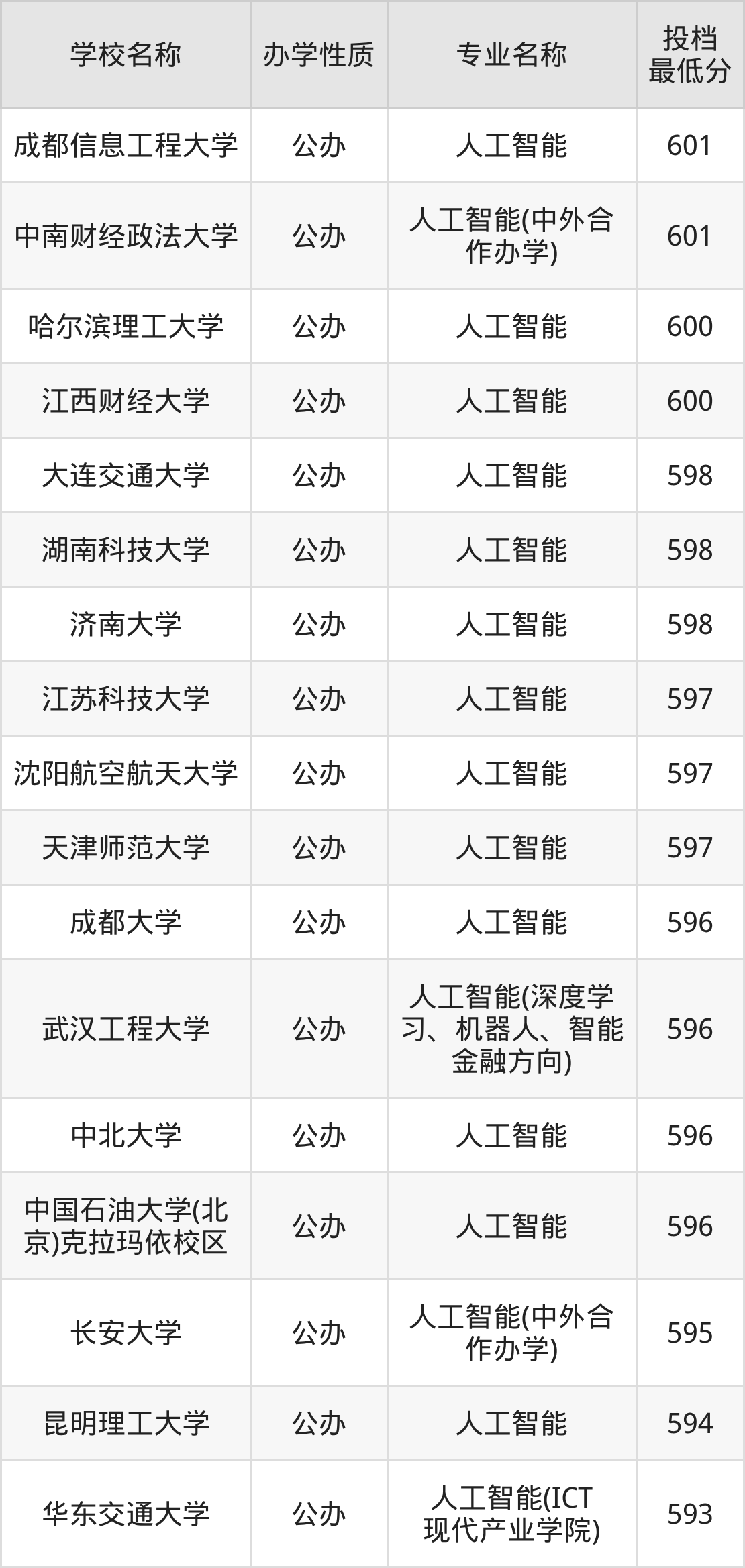 下面是全国各个大学人工智能专业最低录取分数线排名一览表,考生可根据自己的分数情况选择合适的学校报考。