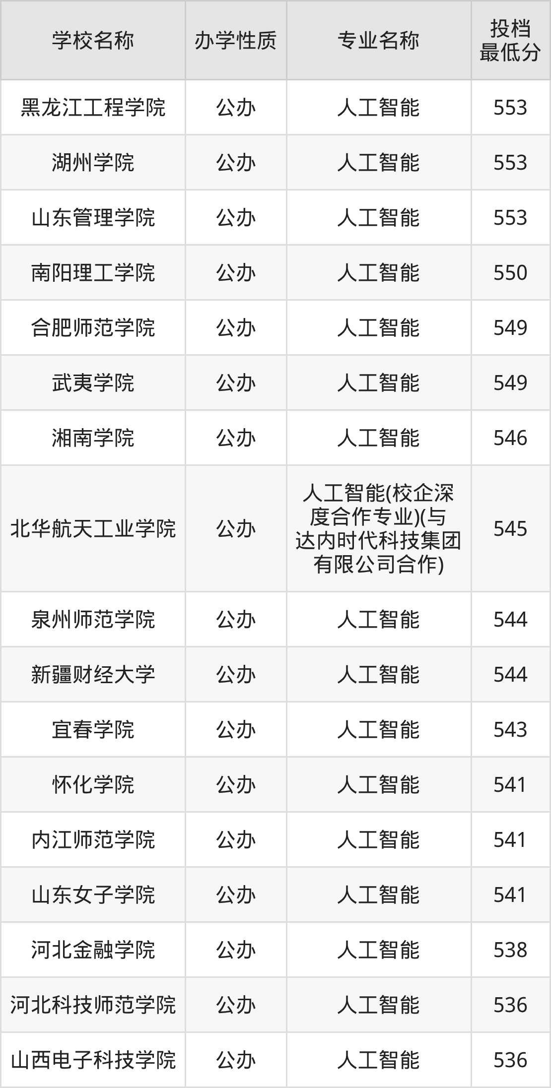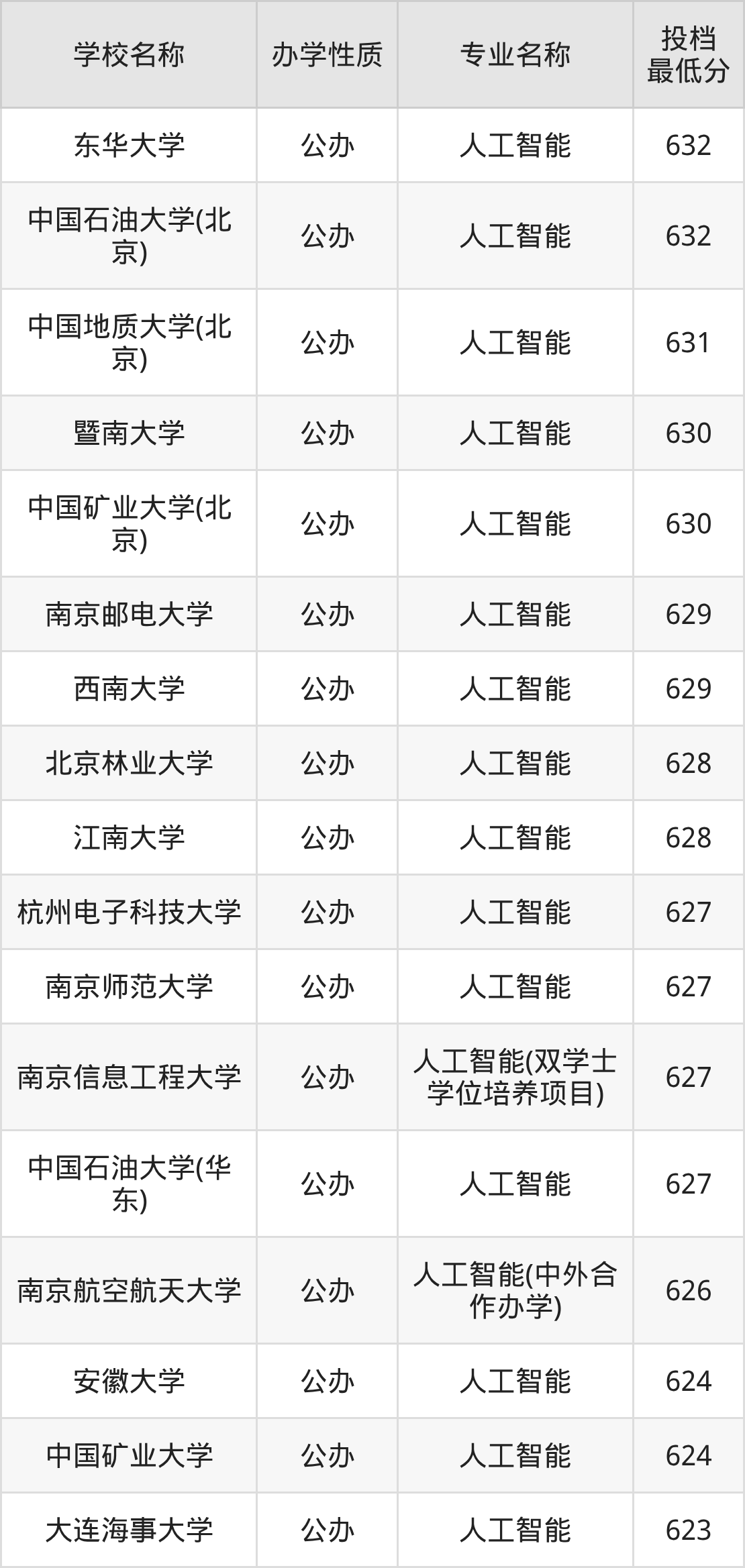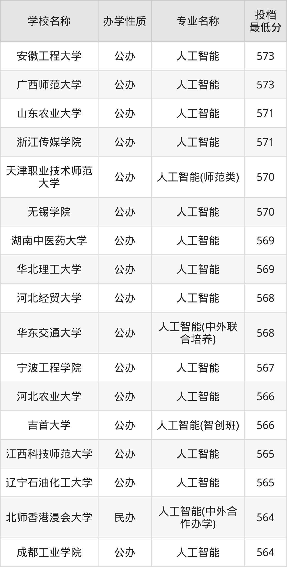 下面是全国各个大学人工智能专业最低录取分数线排名一览表,考生可根据自己的分数情况选择合适的学校报考。