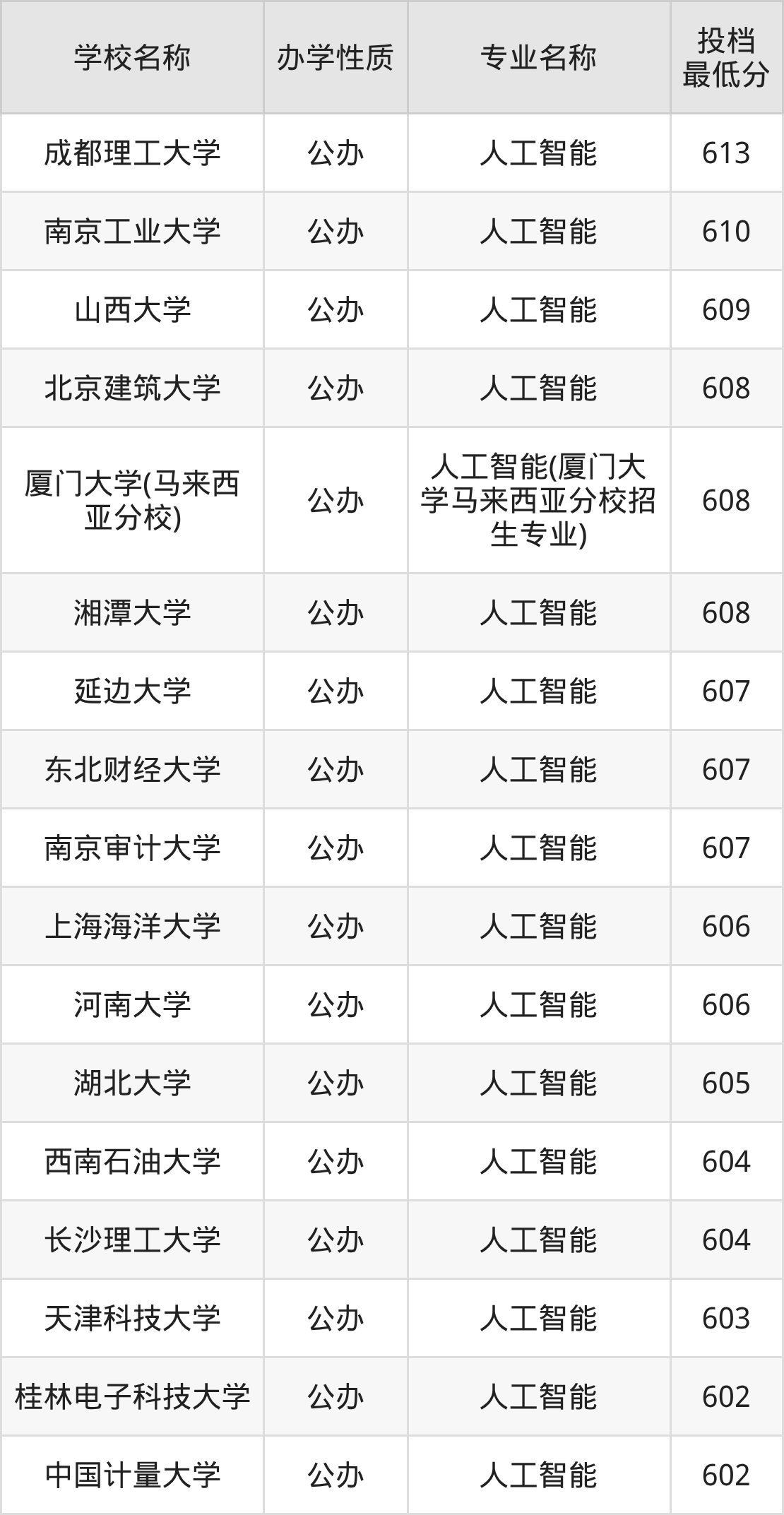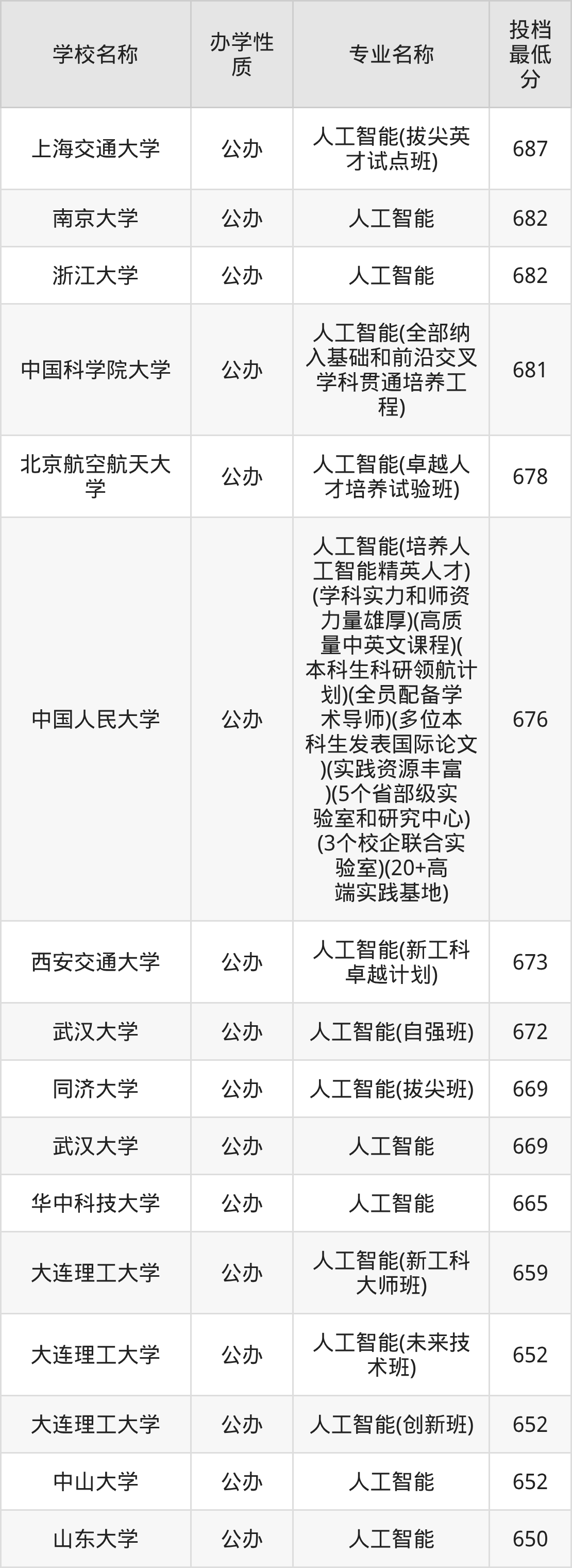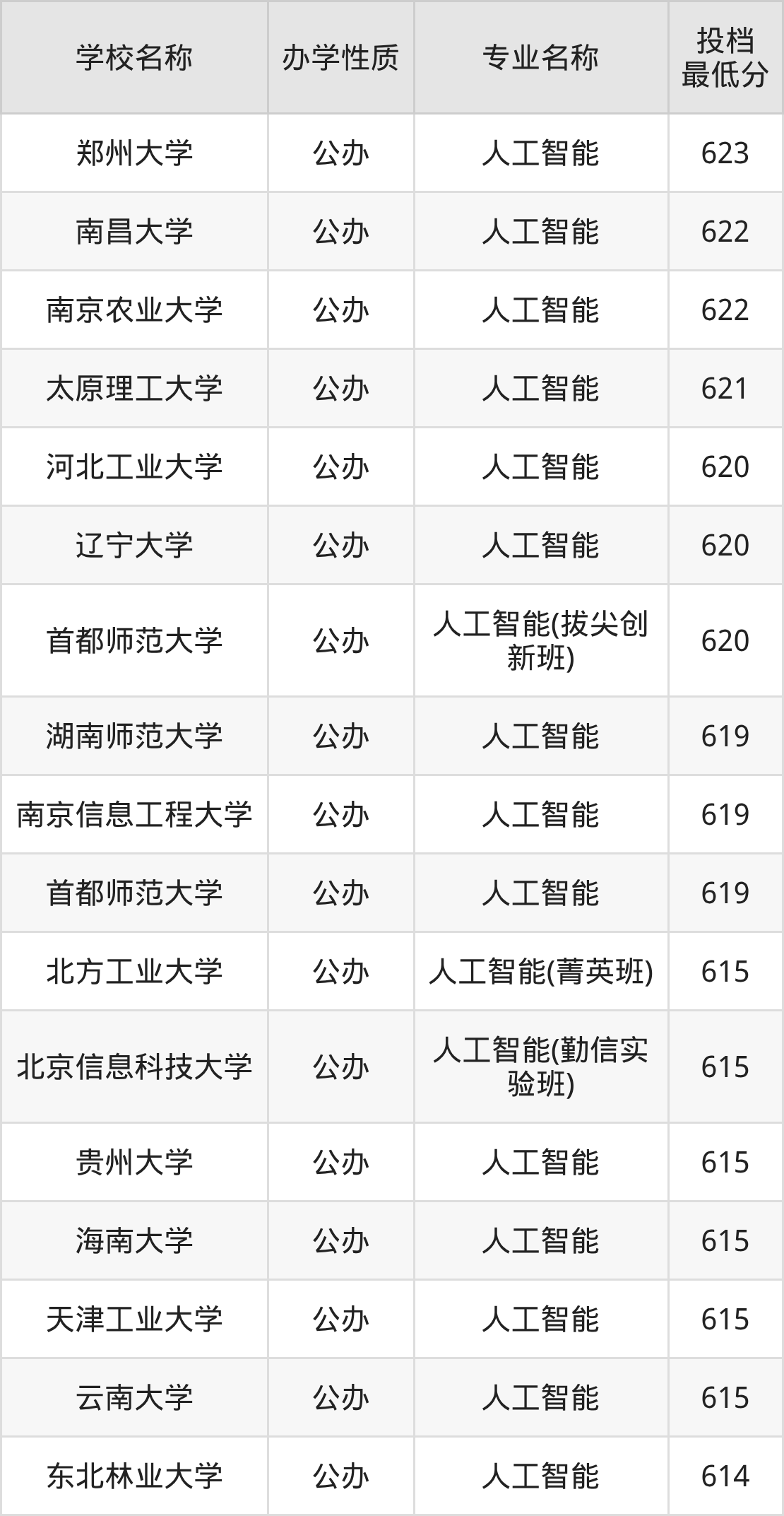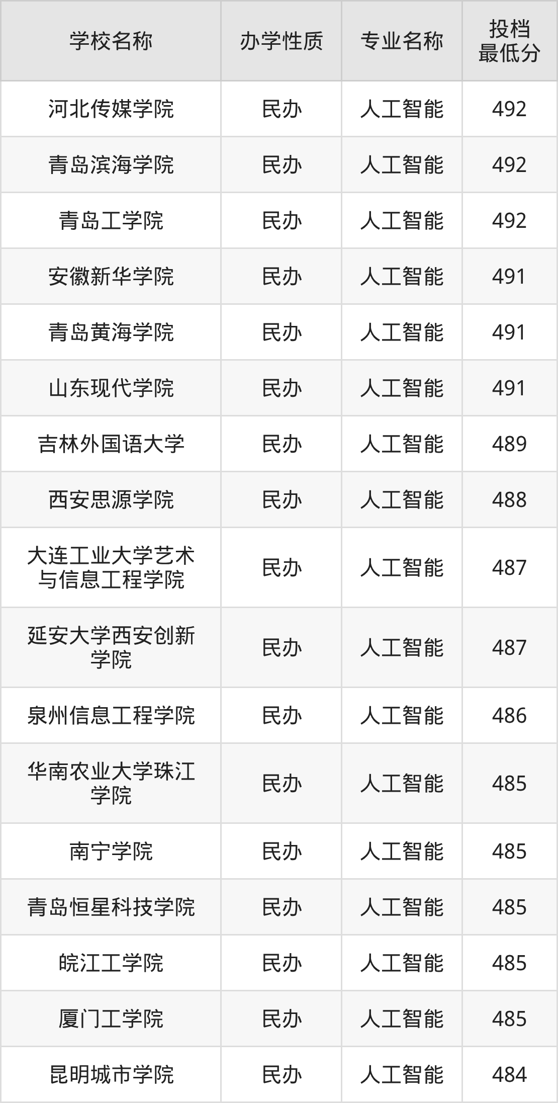 下面是全国各个大学人工智能专业最低录取分数线排名一览表,考生可根据自己的分数情况选择合适的学校报考。