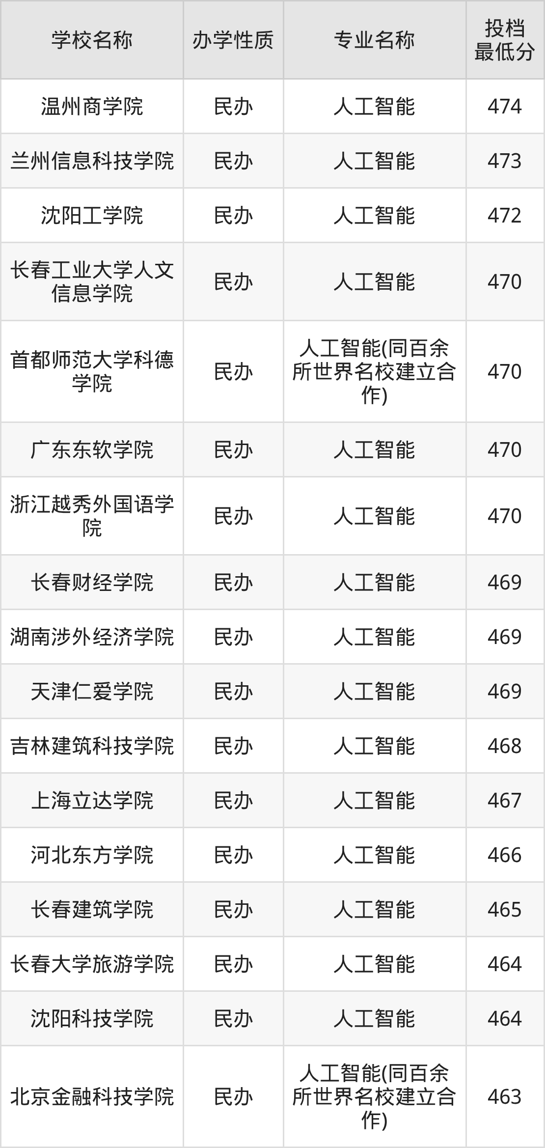 450分左右的人工智能大学有:长春工业大学人文信息学院470分、首都师范大学科德学院470分、广东东软学院470分、浙江越秀外国语学院470分、长春财经学院469分。