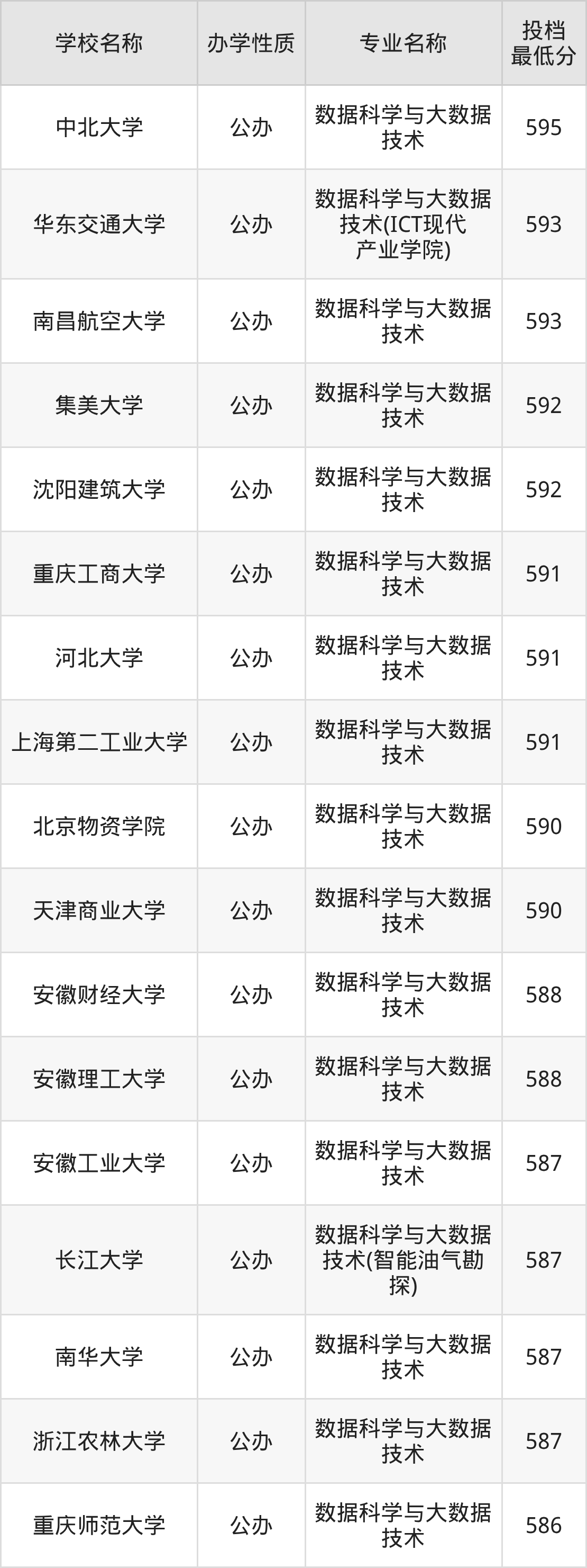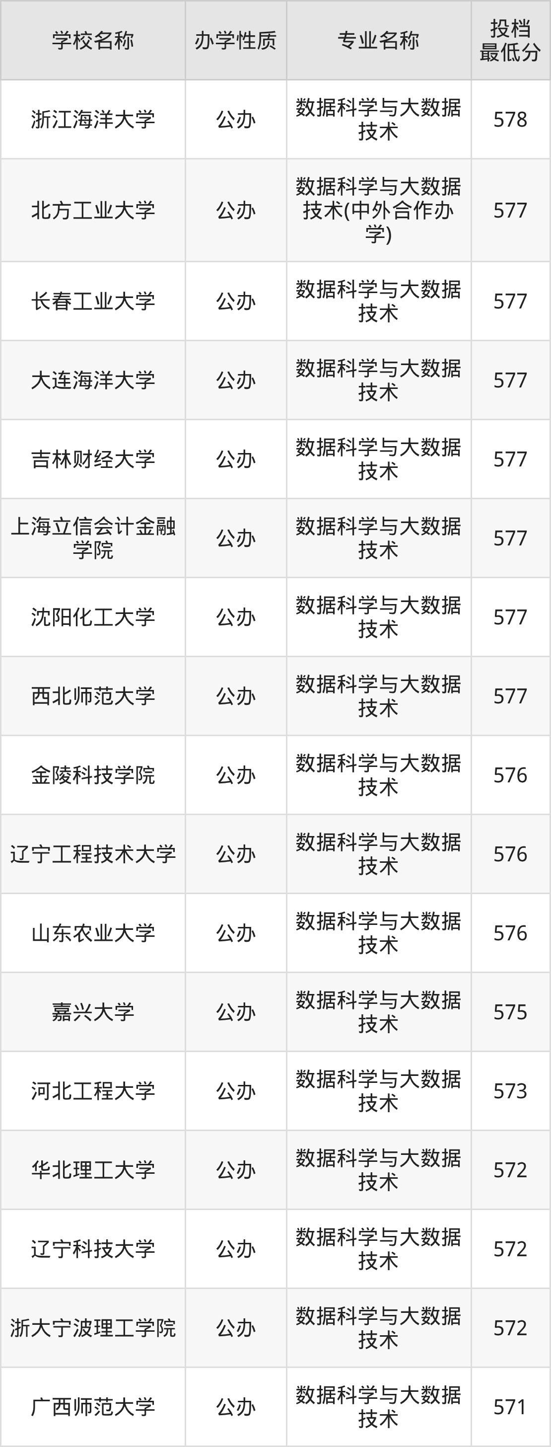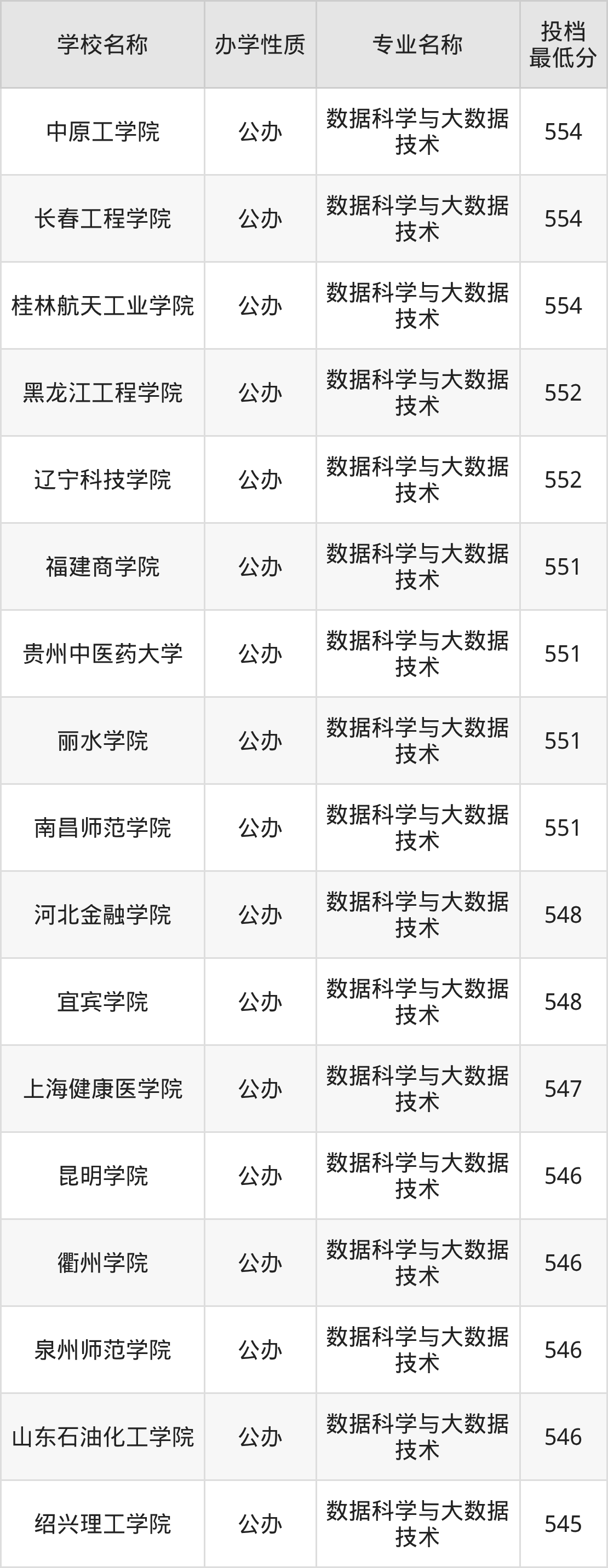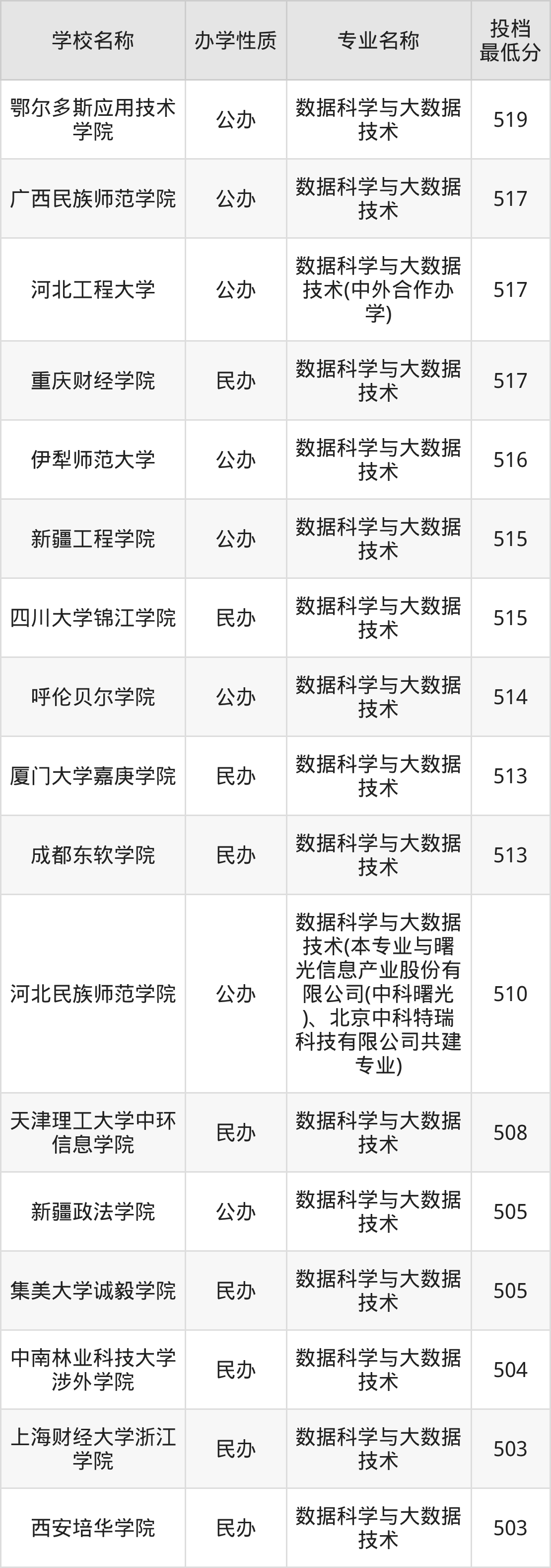 二、全国数据科学与大数据技术录取分数线排名表