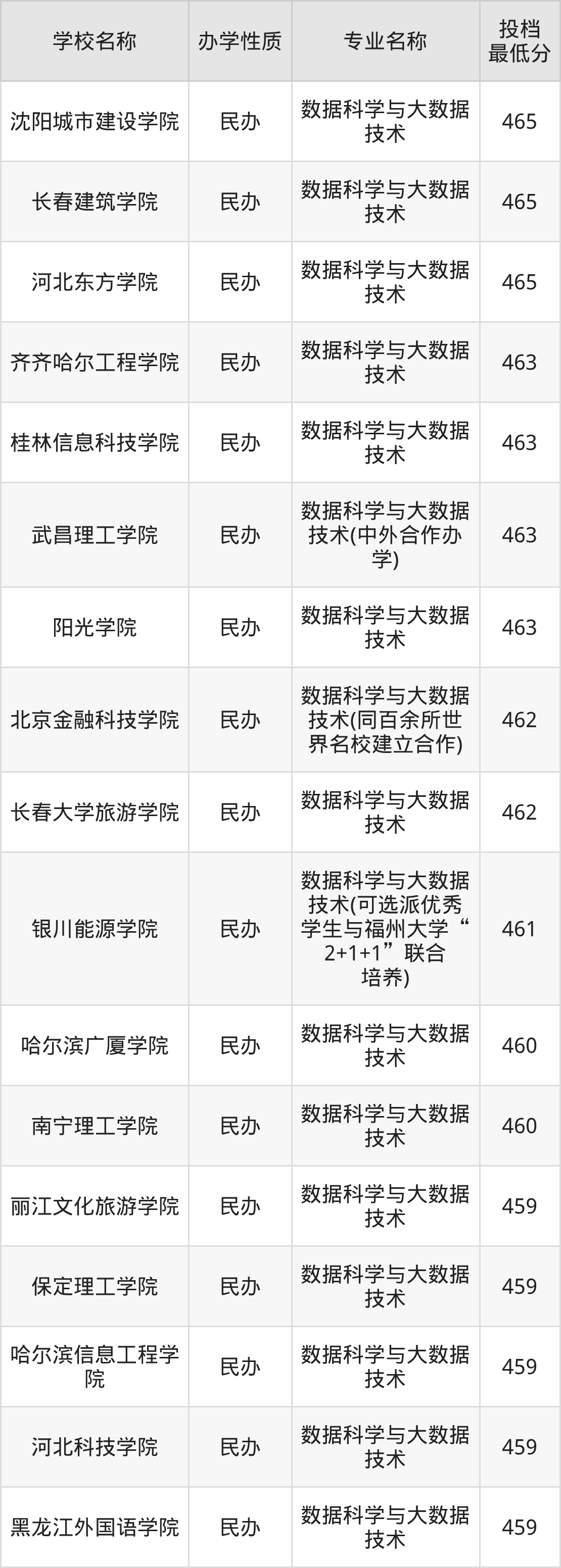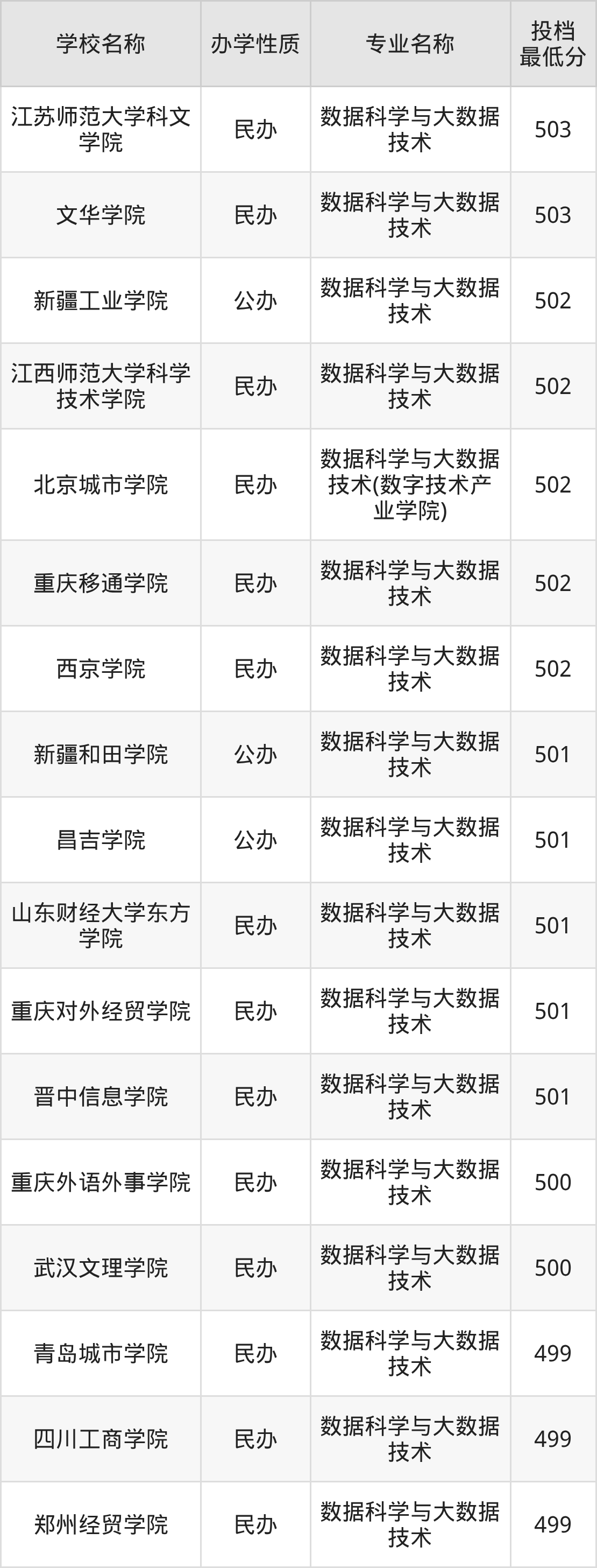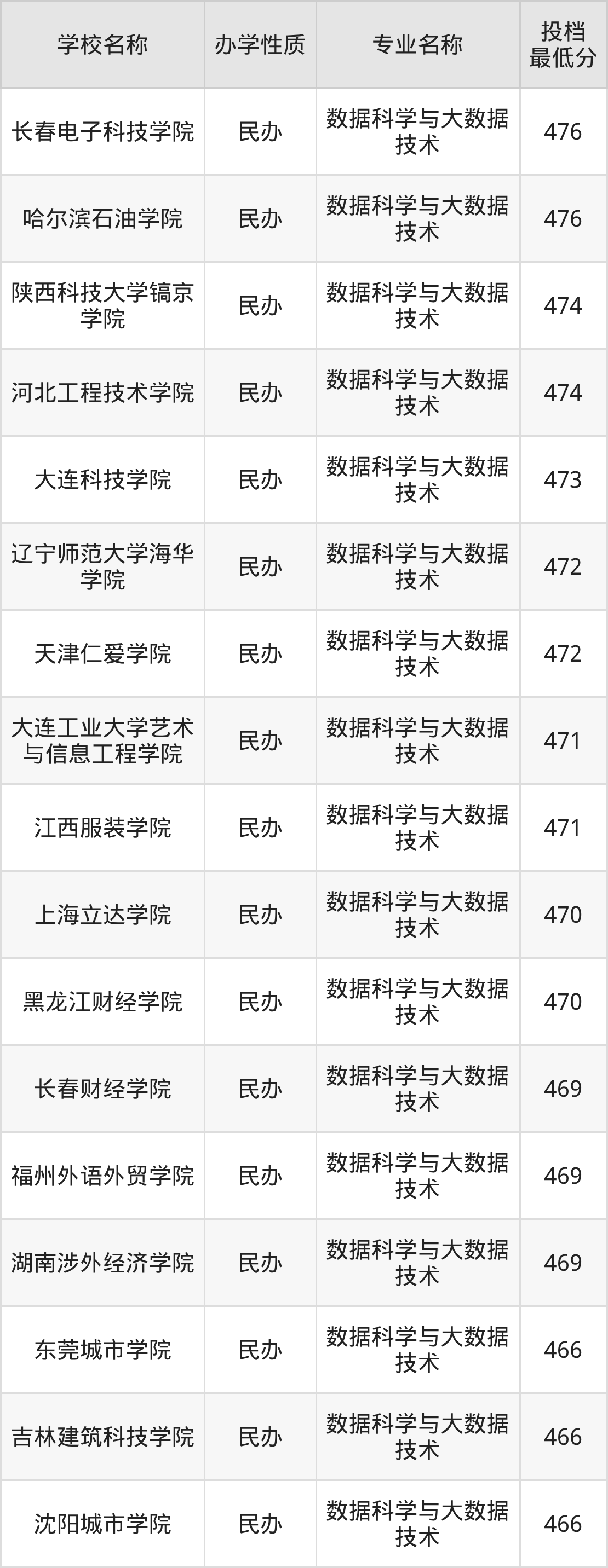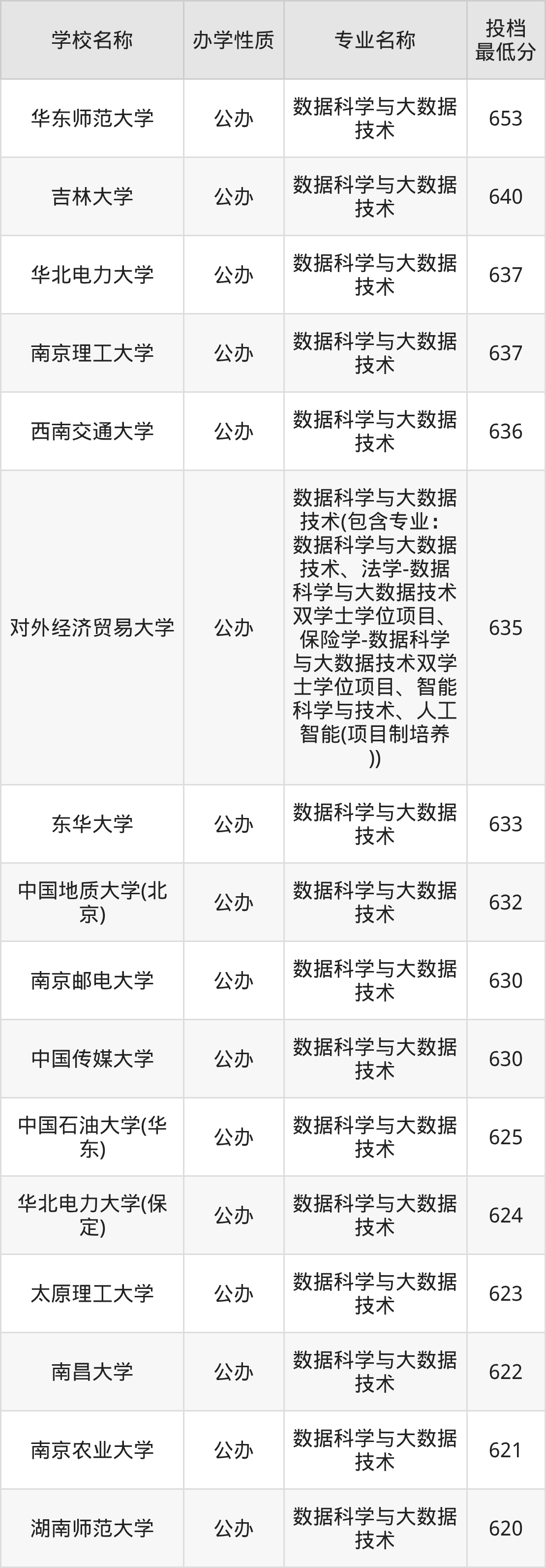二、全国数据科学与大数据技术录取分数线排名表