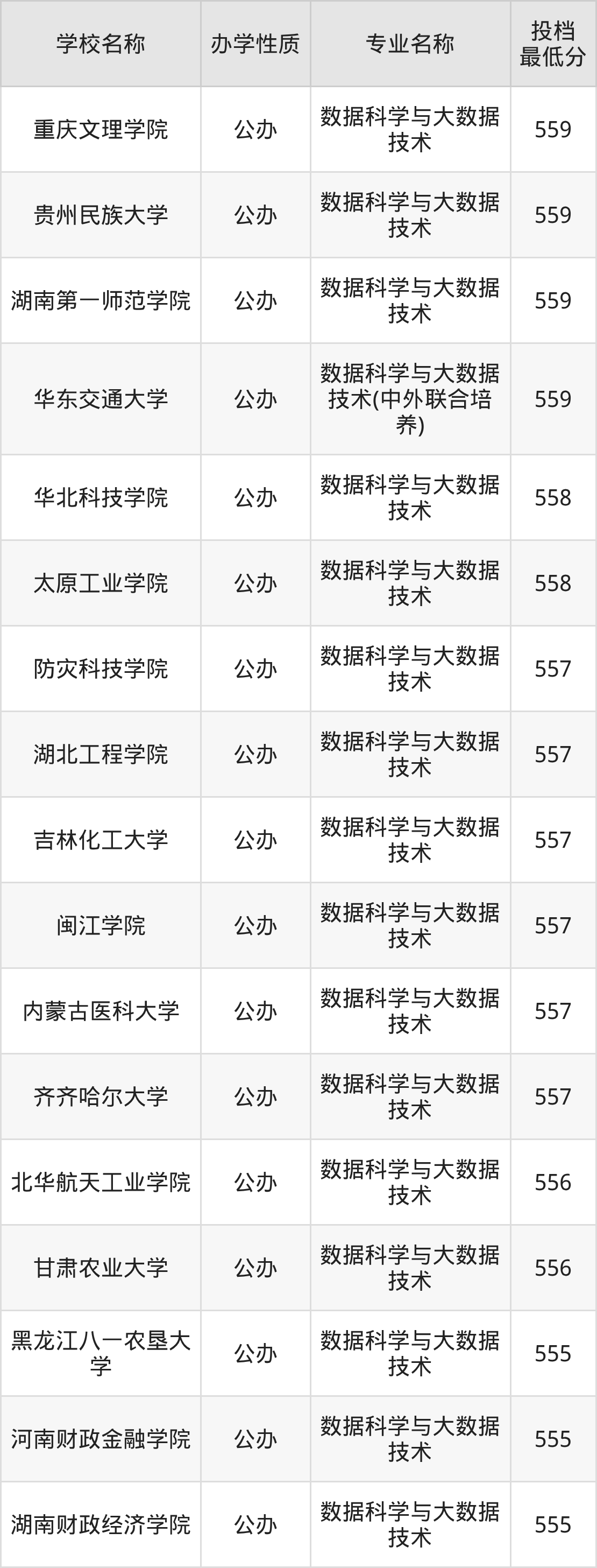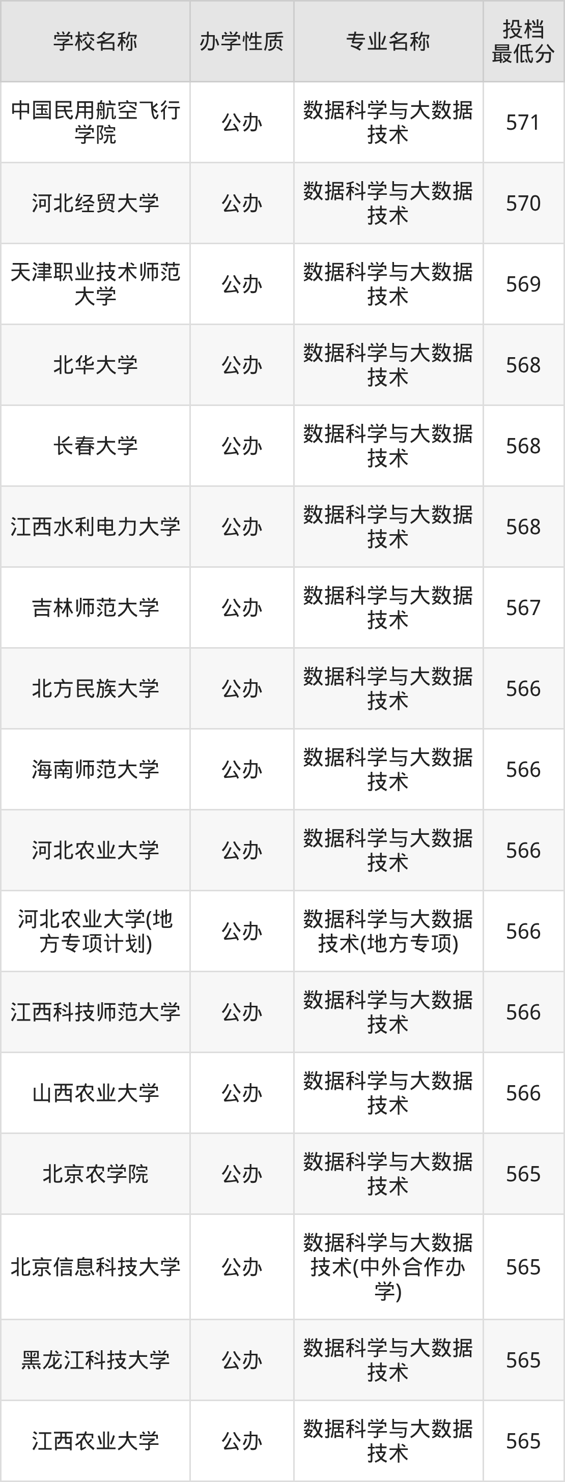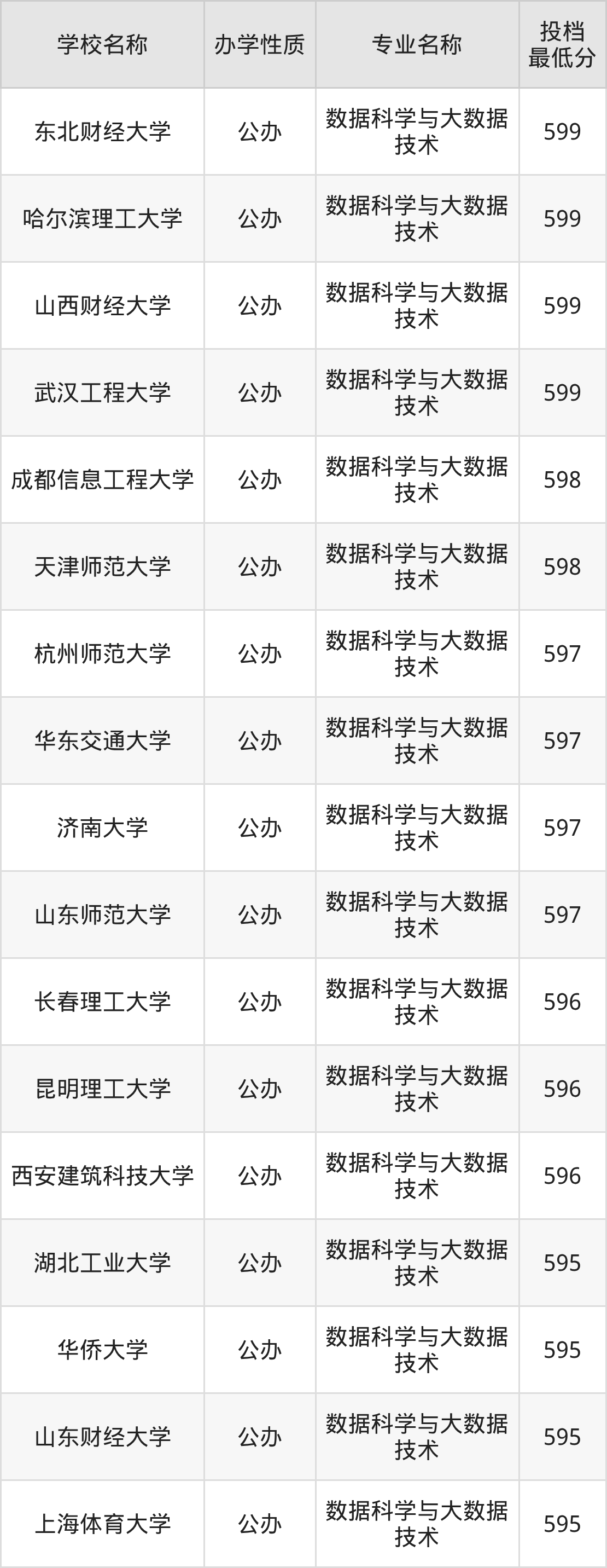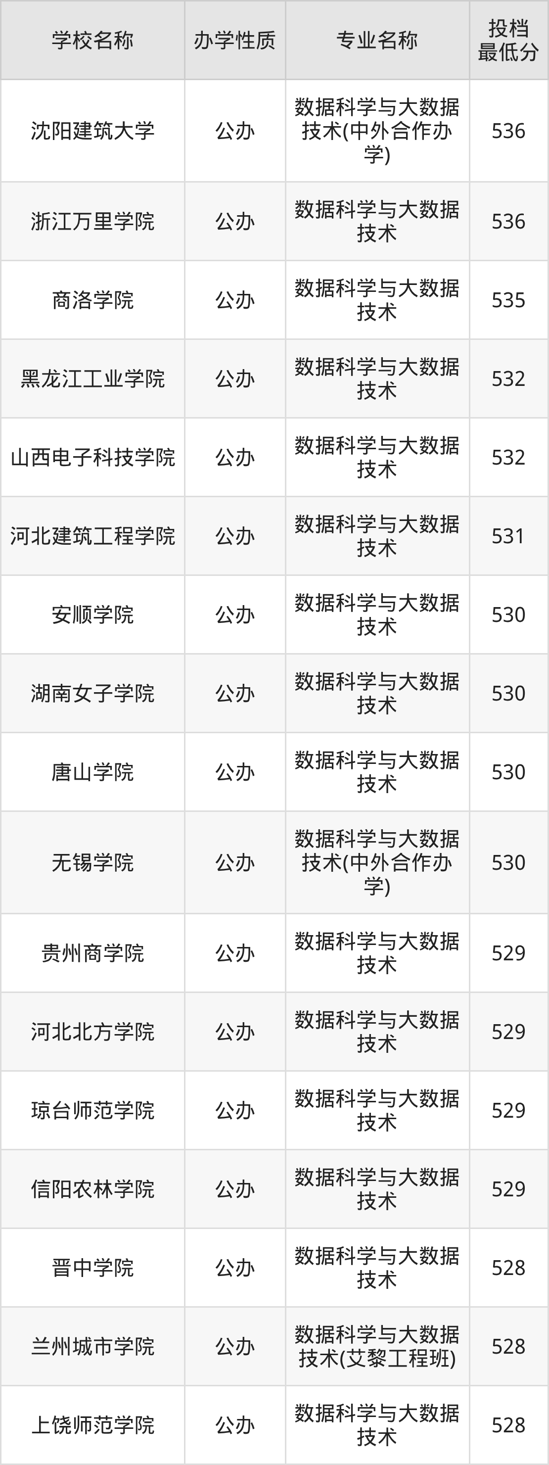 二、全国数据科学与大数据技术录取分数线排名表