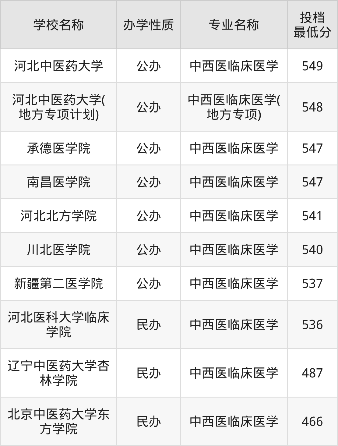 一般来说,中西医临床医学都需要470分以上才能被录取,当然分数线因省份、科类而不同。从河北省2025年的招录数据来看,2025年中西医临床医学专业最低分是466分,而河北省本科线是459分,意味着考生至少需超过本科线7分才能上。